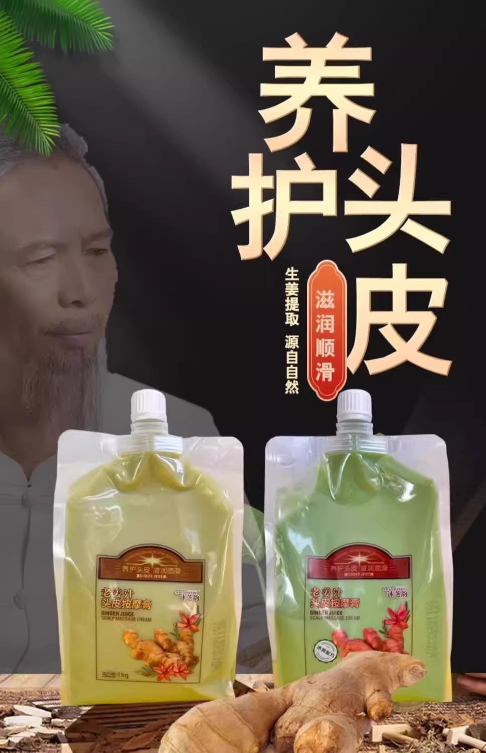 老姜王生姜头皮按摩膏热能姜汁姜泥养发护发膜滋润护理柔顺膏顺滑