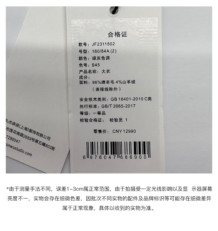 【JASON WU】秋冬新款通勤保暖羊毛混纺双面呢上衣长外套双面大衣女