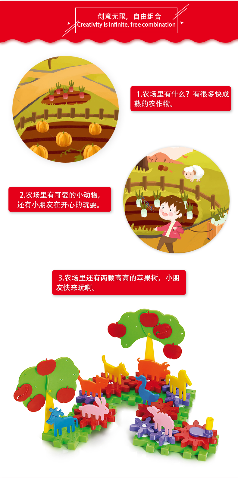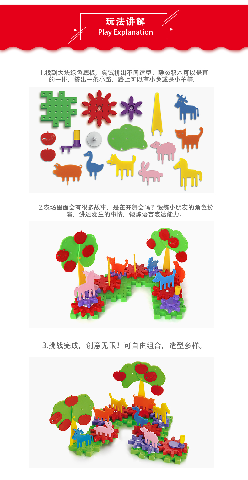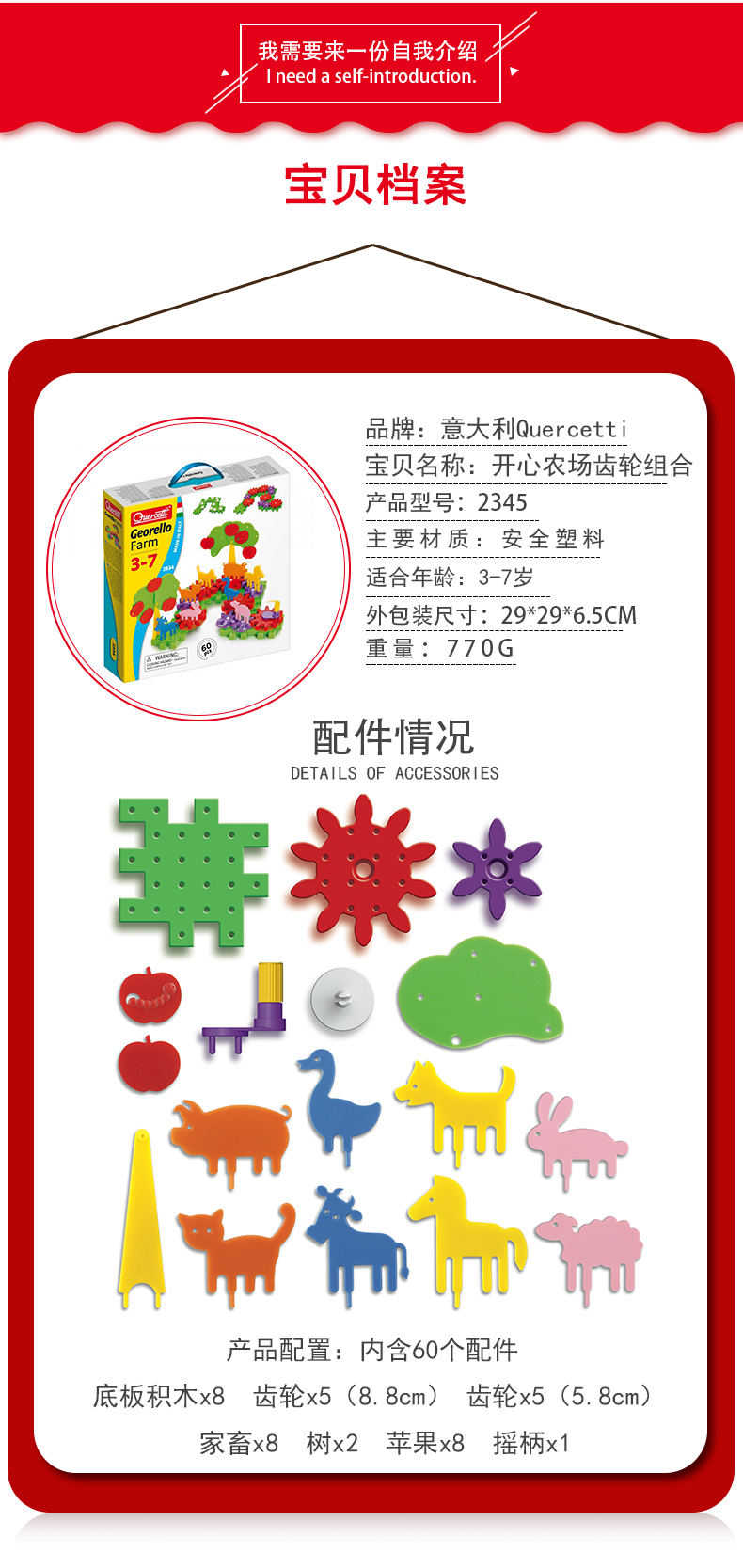 Quercetti启迪 构建系列 开心农场齿轮系列 Q2334 3+岁 意大利