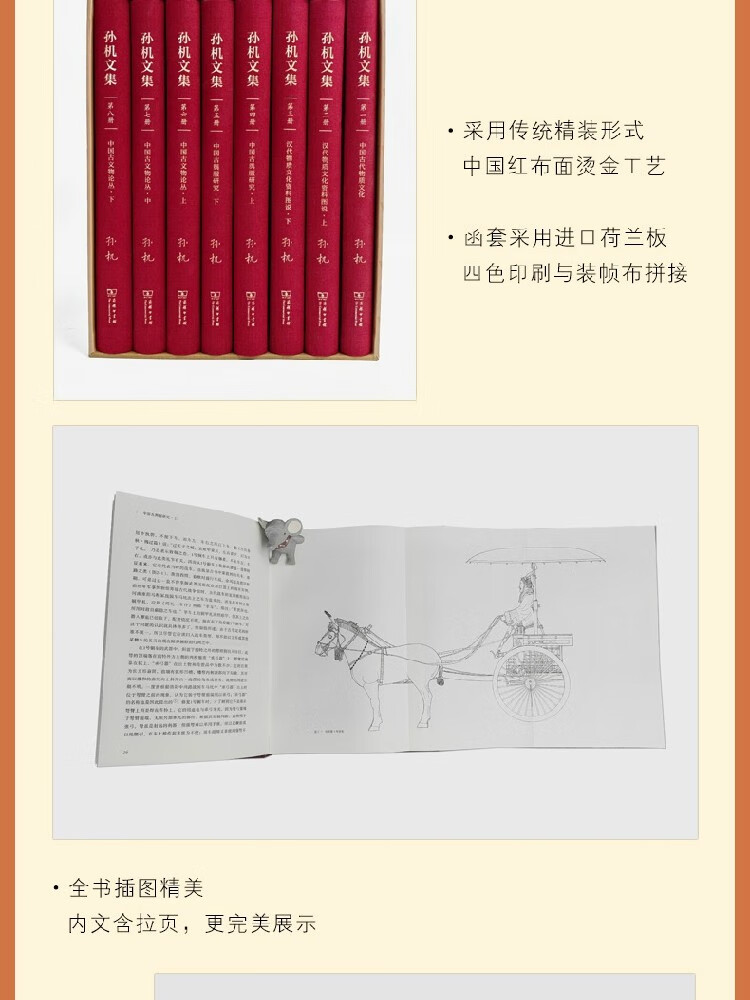 1. 名家、名作。孙机先生在文物学界、考古学界、历史学界均享有较高声誉。出版的《中国古代物质文化》《从历史中醒来》等书均为畅销书、常销书,收入文集的内容均经过认真修订,重新编排,紧跟学术前沿,具有当代价值。《孙机文集》会成为一部有影响力的重要著作。