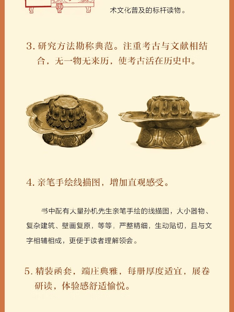 2. 学术论说立得住,普通读者能读懂。涉及中国古文物、古代物质文化的方方面面,学术论证丝丝入扣,是中国古文物研究、古代物质文化研究的重要工具书、案头书。文字表述简洁通俗,也是学术文化普及的标杆读物。