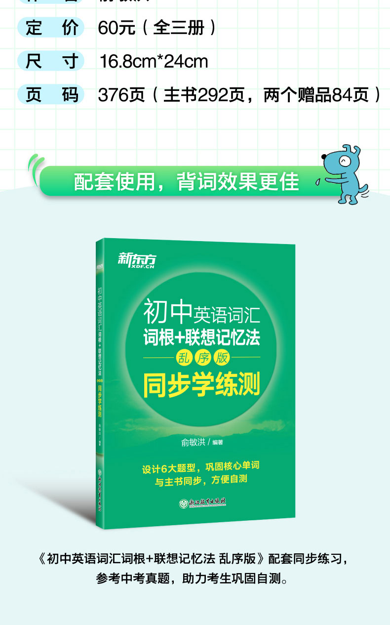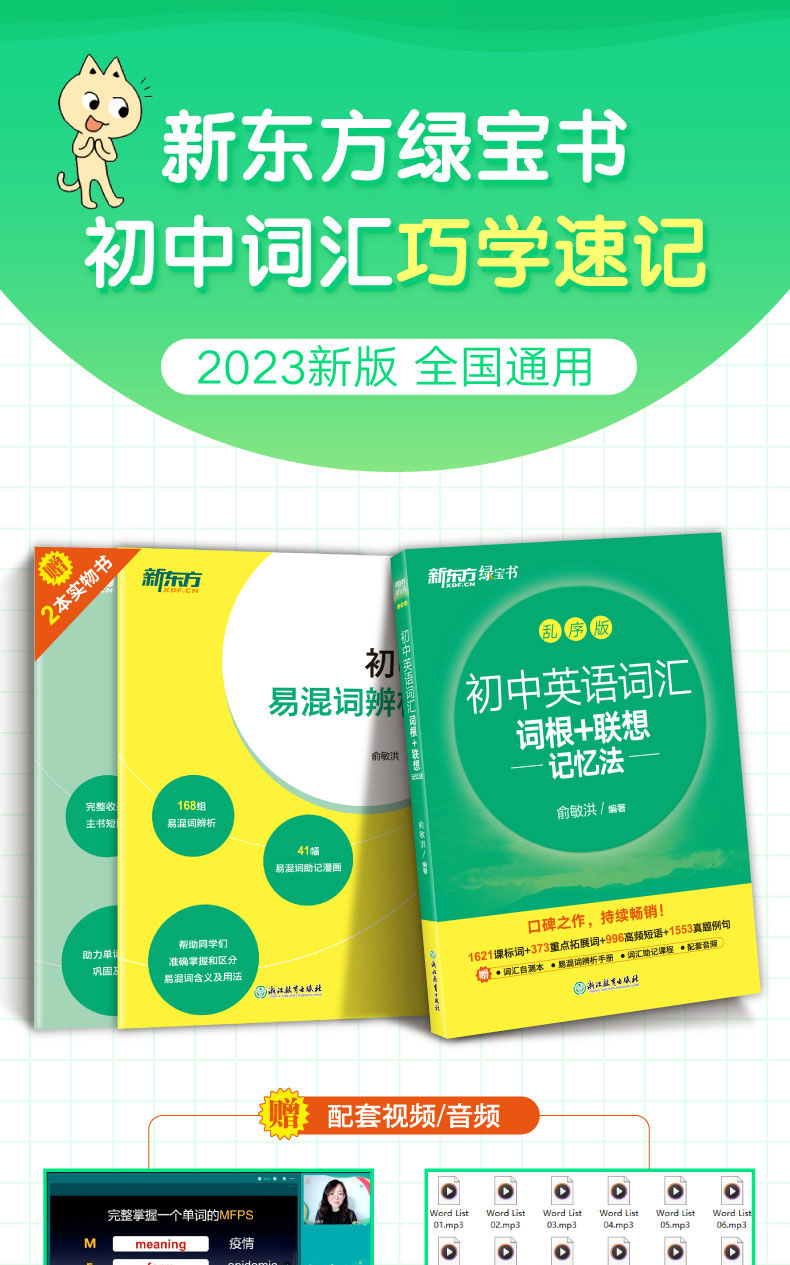 【新东方】初中英语词汇 词根+联想记忆法乱序版新东方俞敏洪 绿宝书 备战2026年中考单词书籍常考高频核心超纲词汇