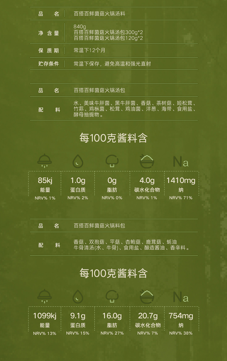 百山祖 百搭百鲜菌菇火锅汤底料包840g