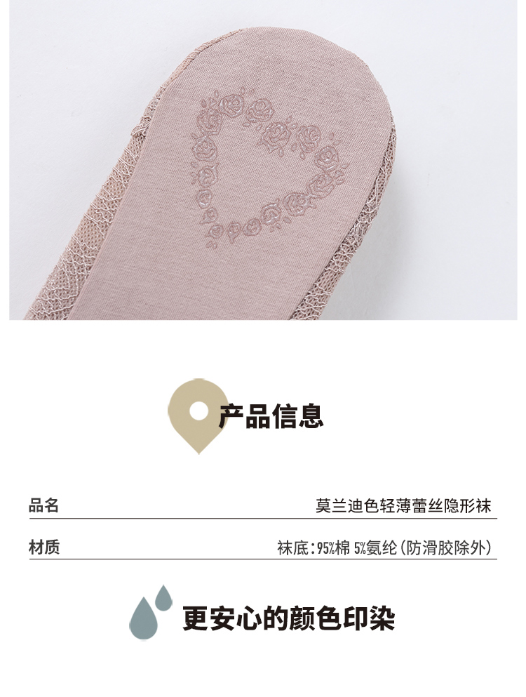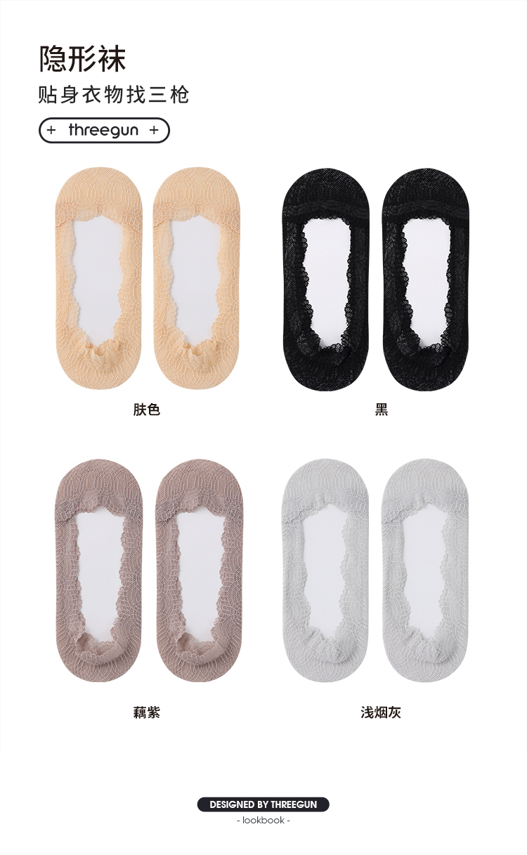 Threegun三枪 莫兰迪色轻薄蕾丝隐形袜(1双装)-91260Z031