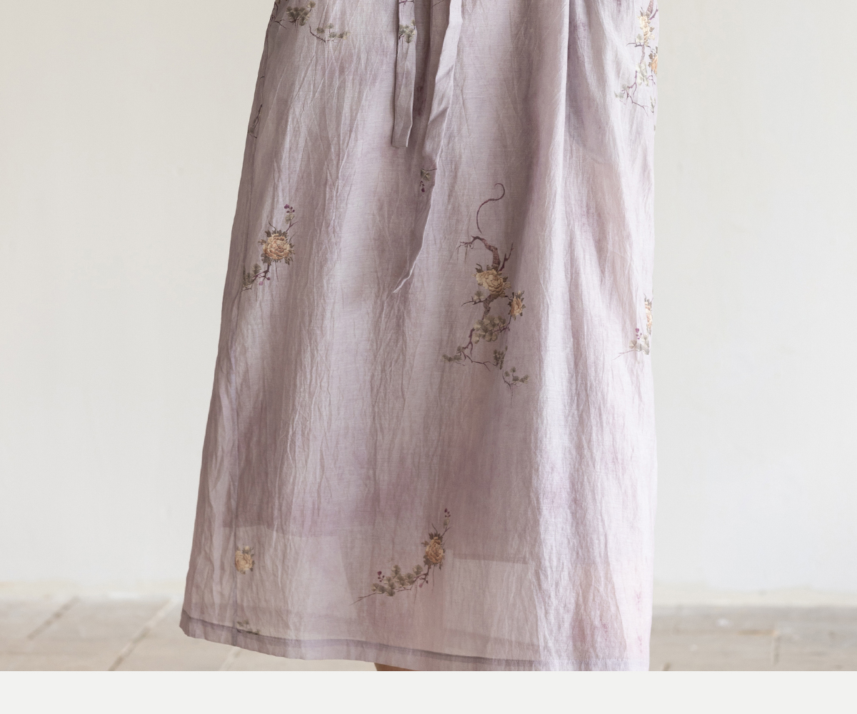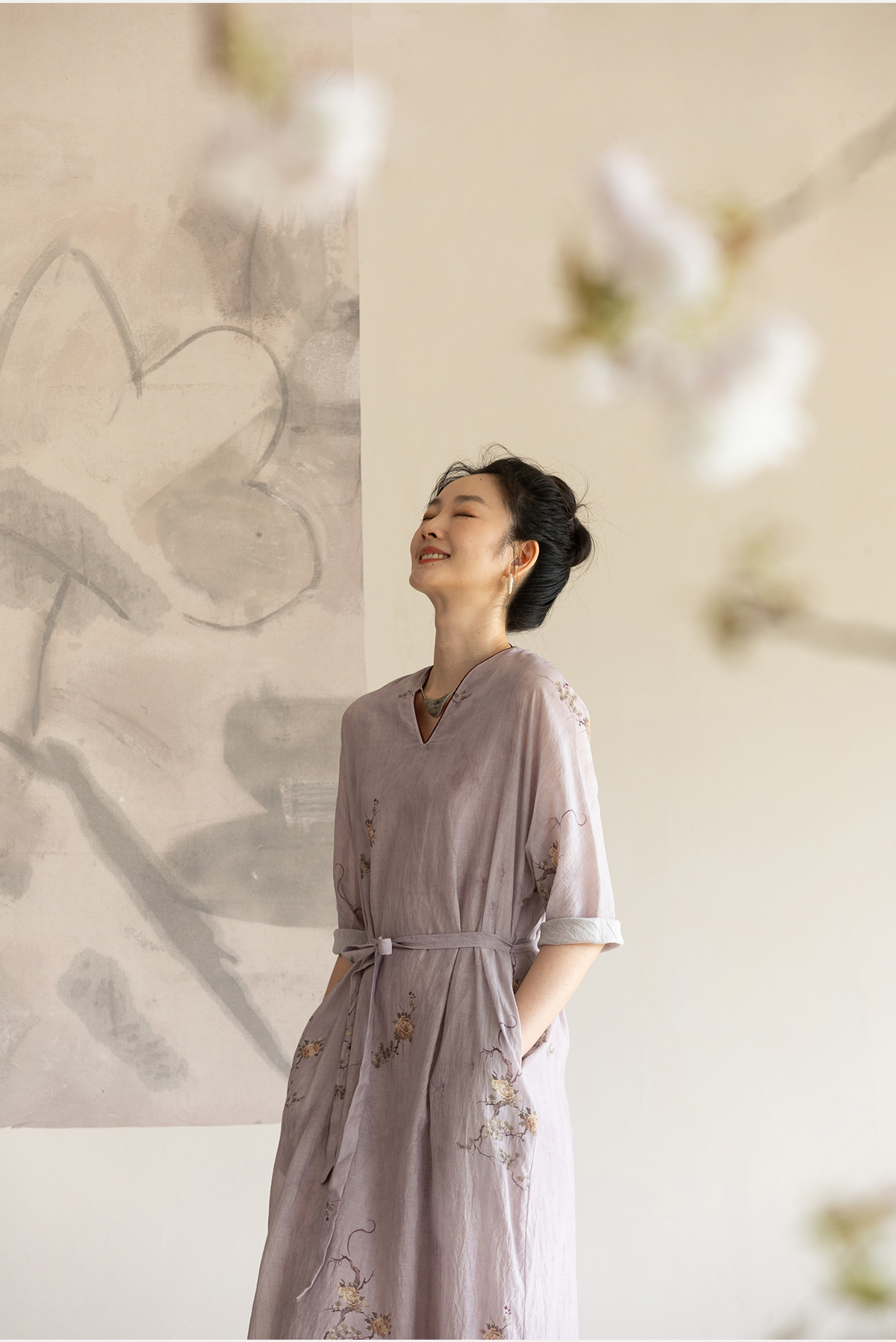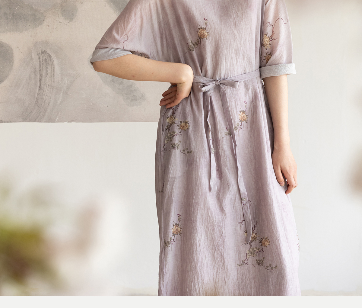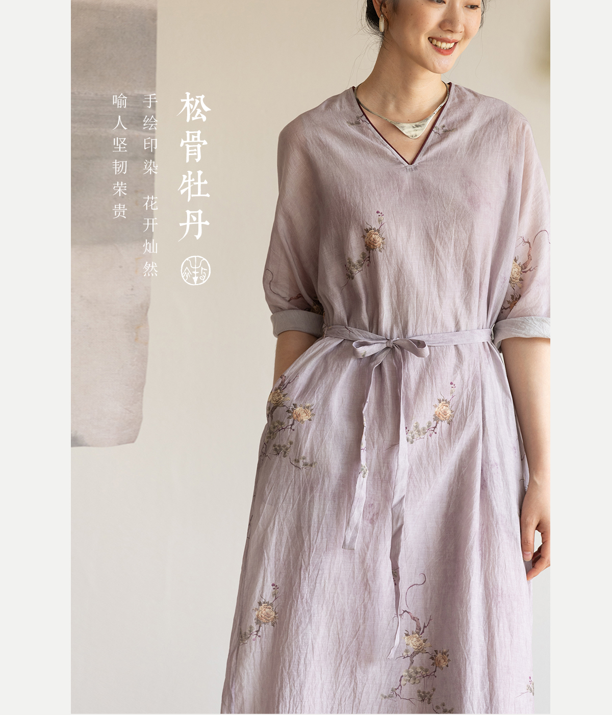 牧衣游原创 松骨牡丹印丝绵连衣裙夏轻薄宽松随性复古长裙 怀夕