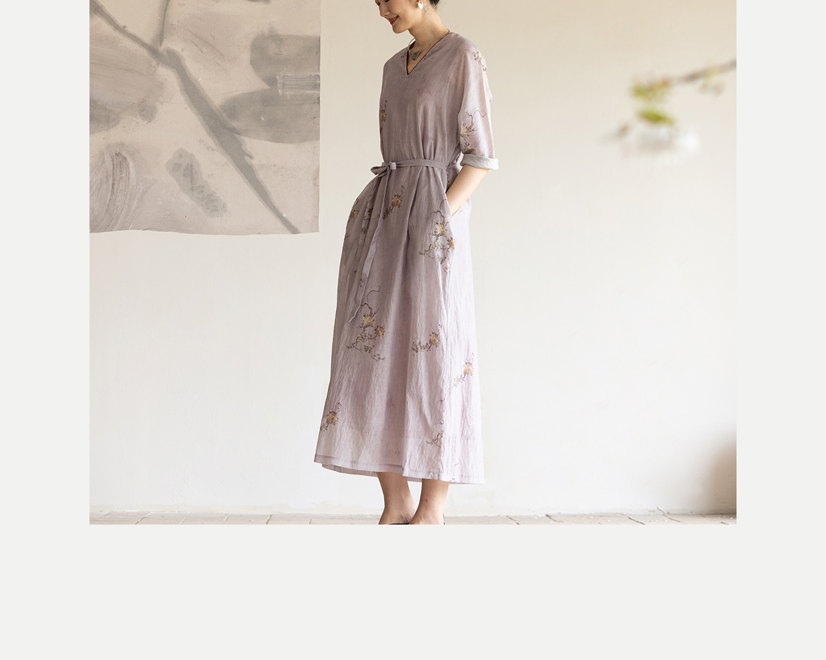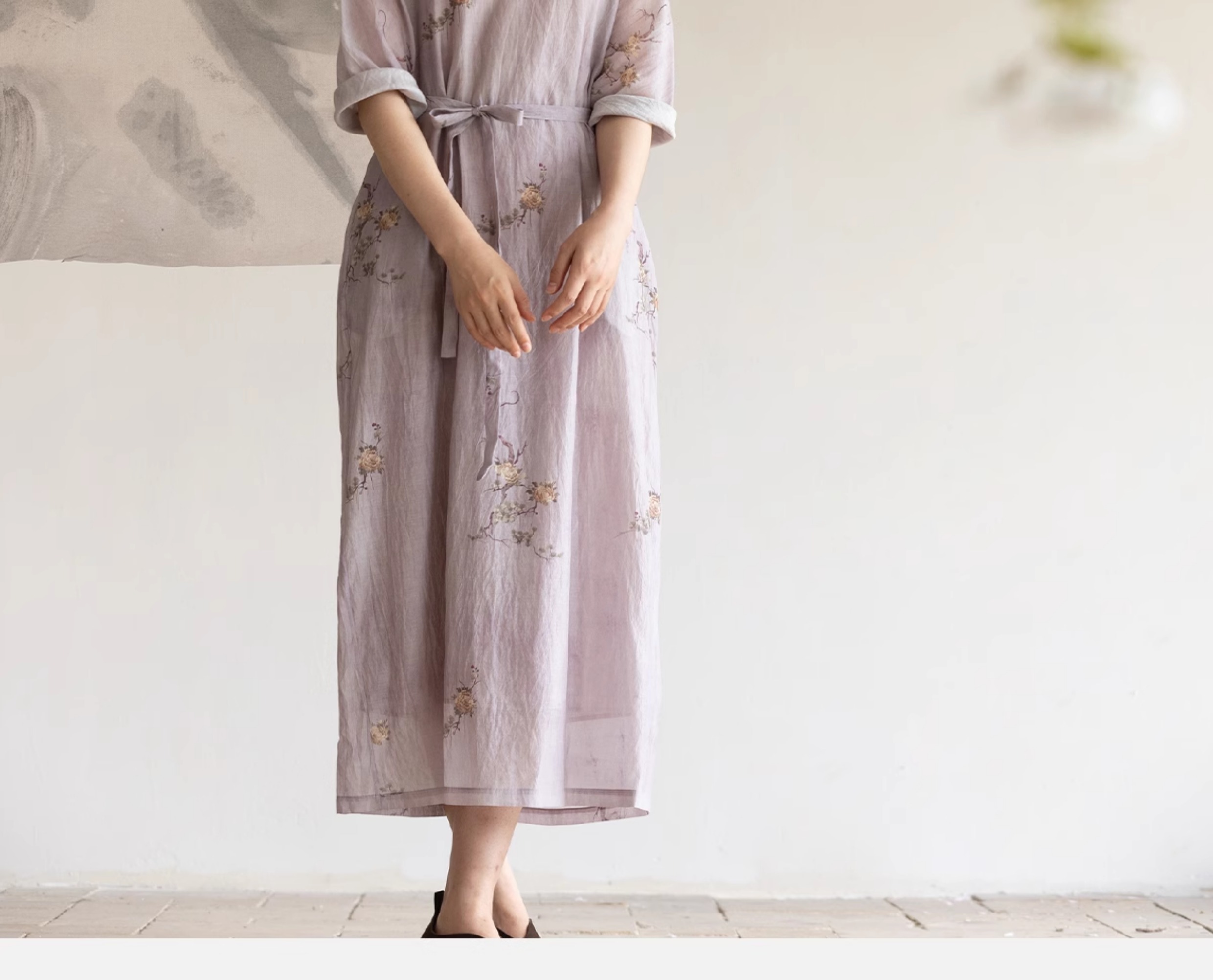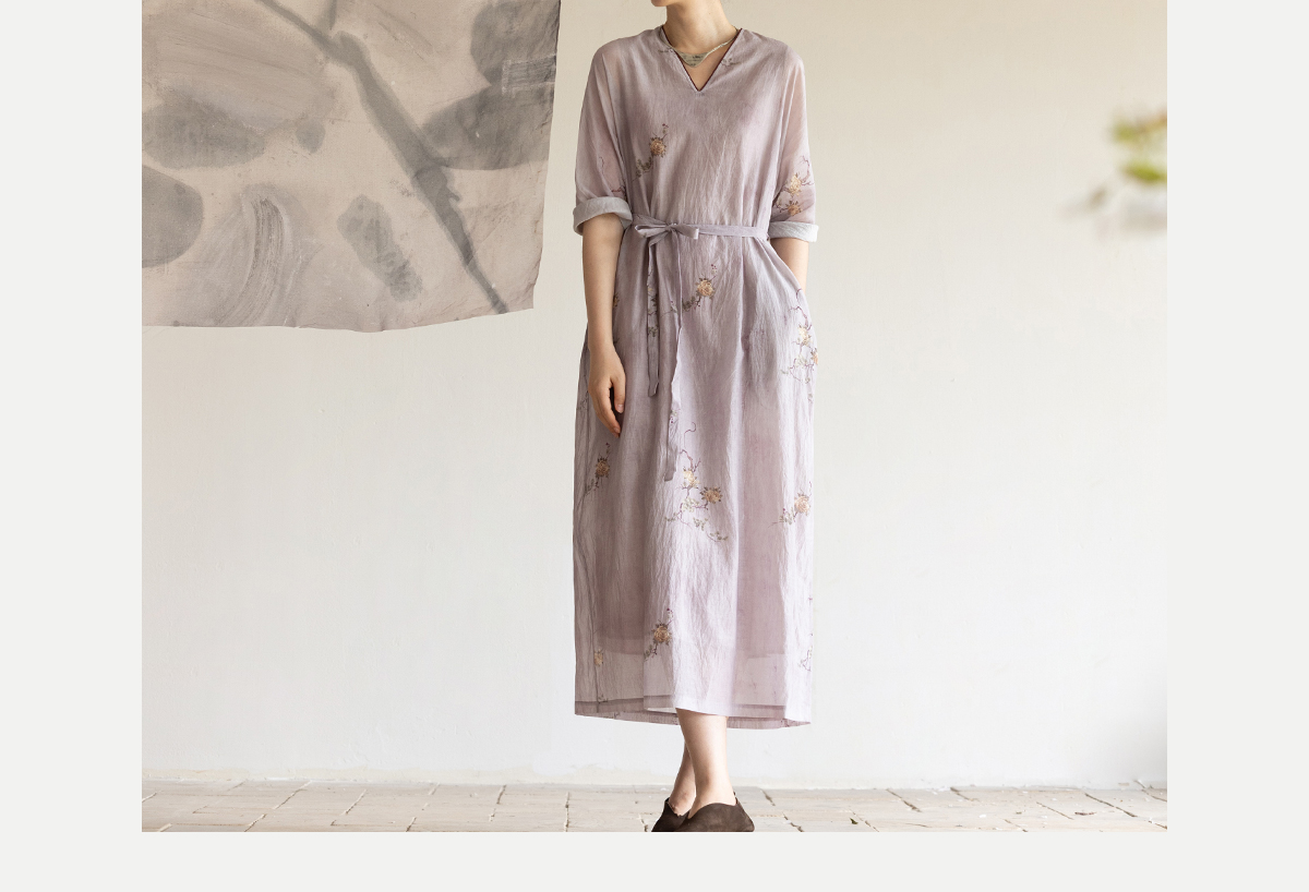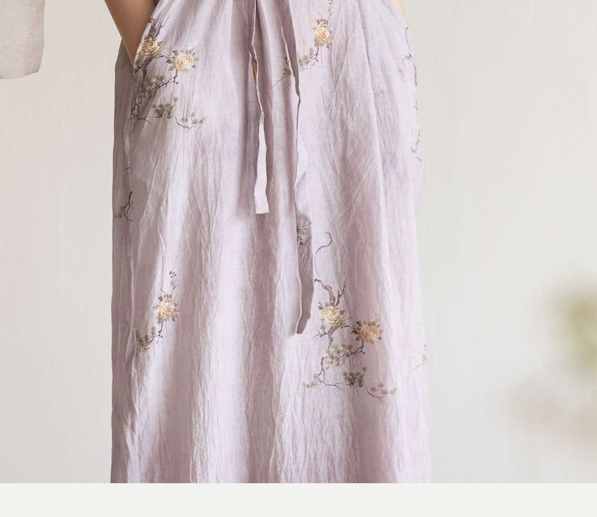 牧衣游原创 松骨牡丹印丝绵连衣裙夏轻薄宽松随性复古长裙 怀夕