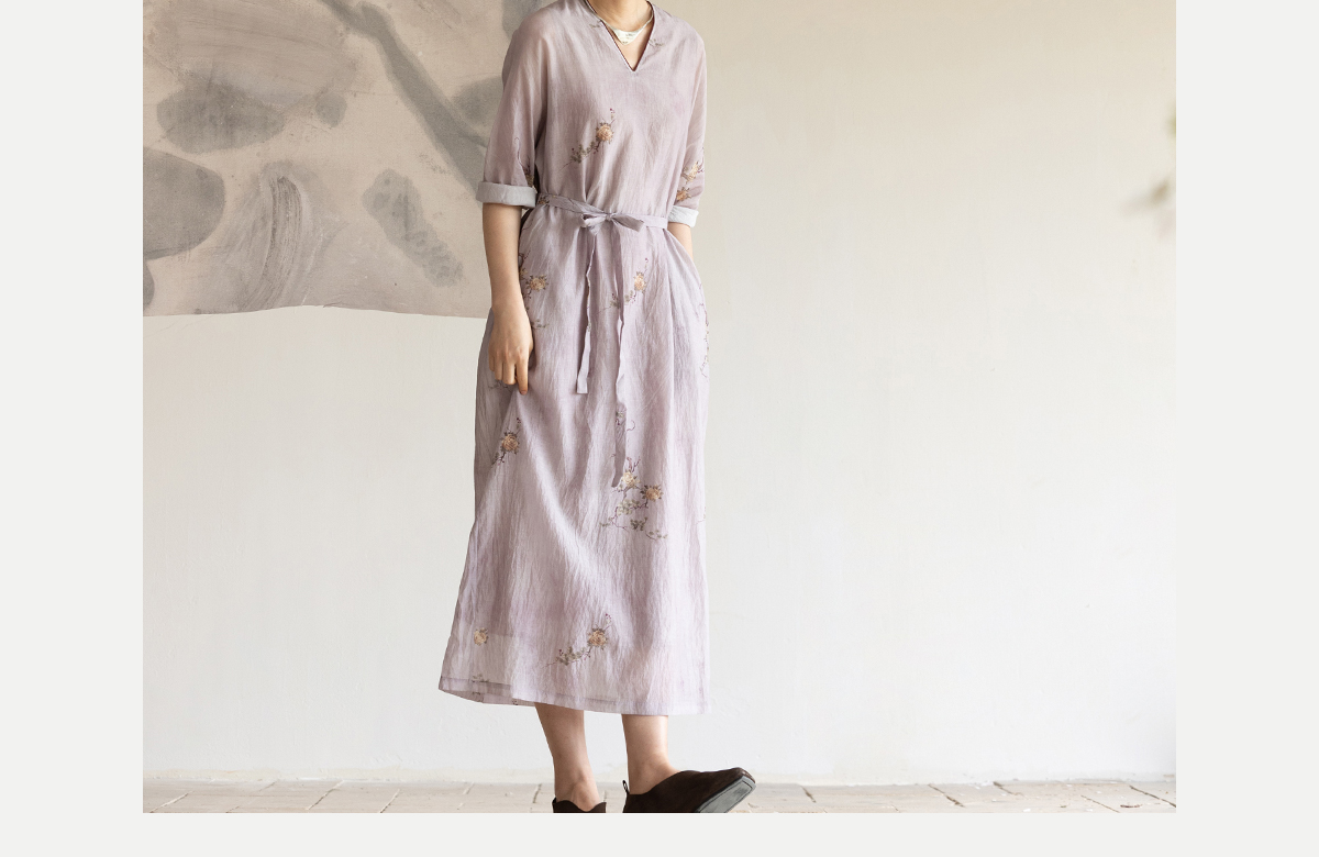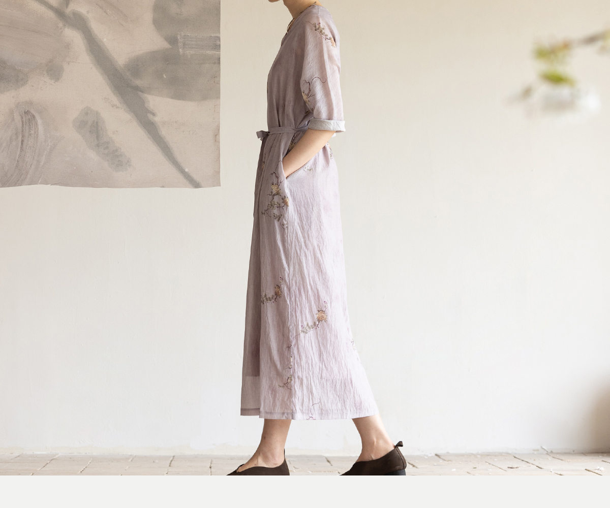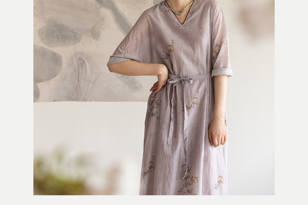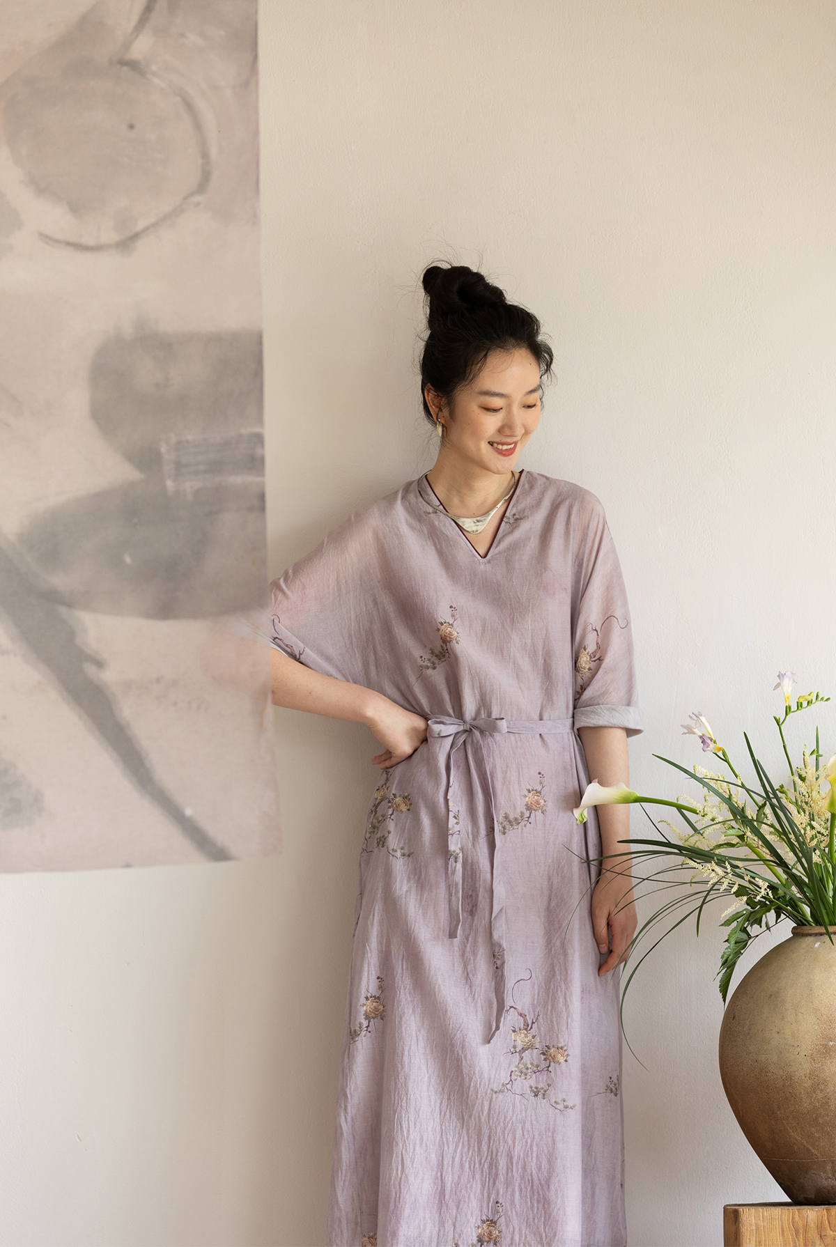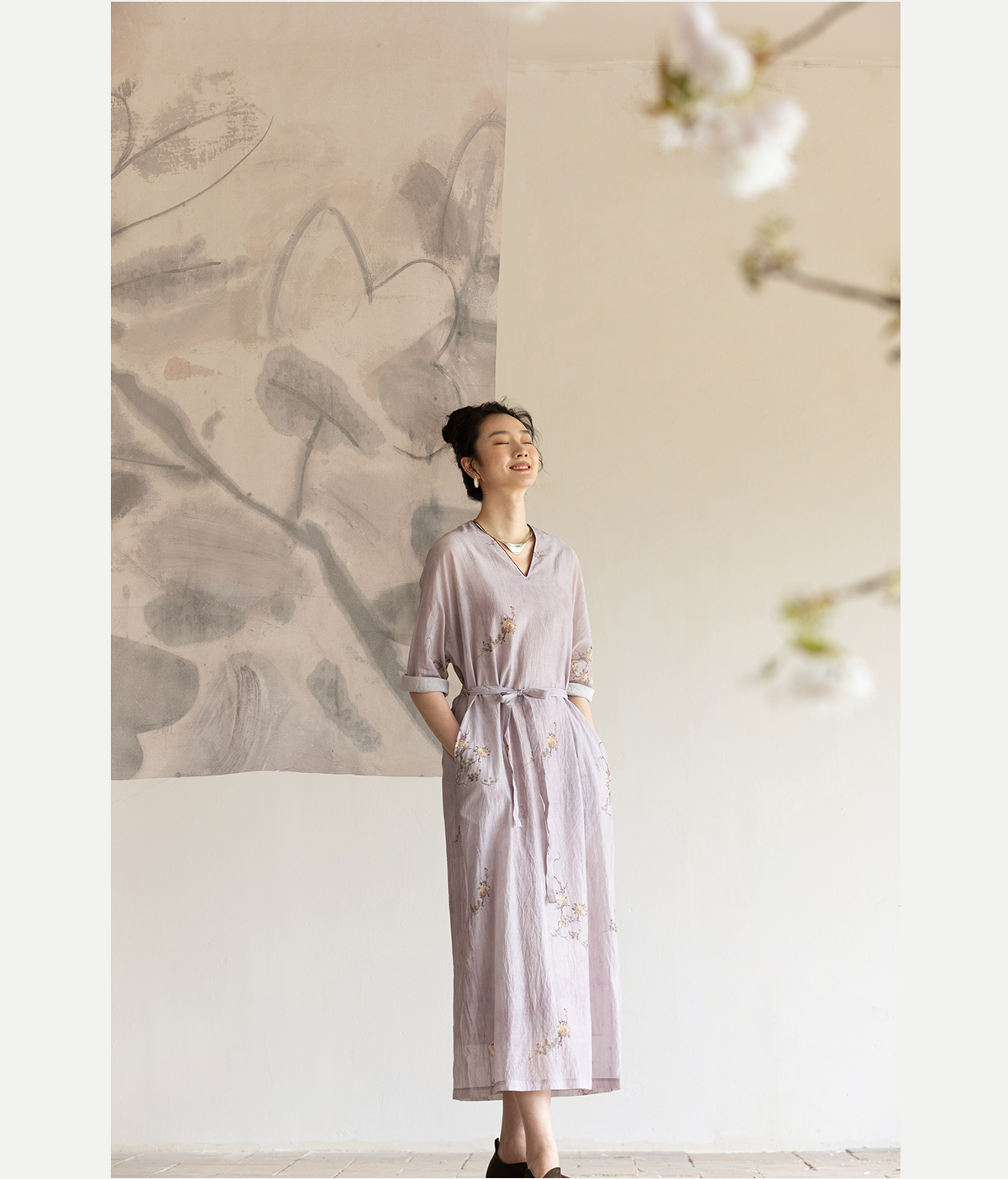 牧衣游原创 松骨牡丹印丝绵连衣裙夏轻薄宽松随性复古长裙 怀夕