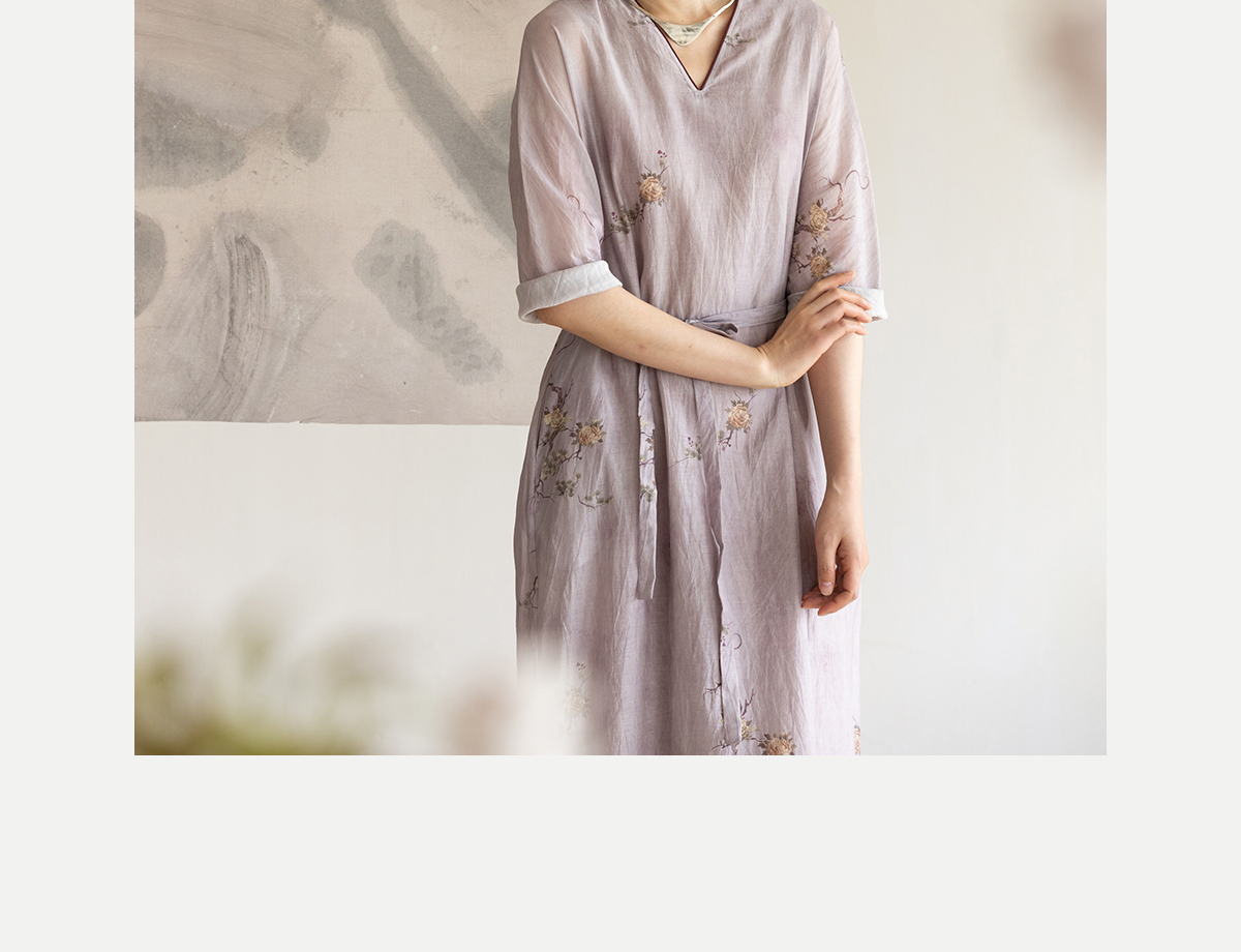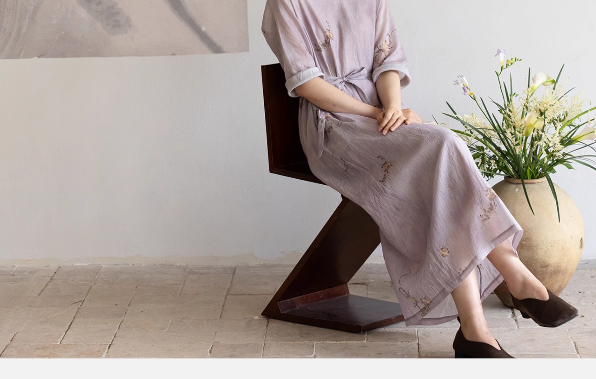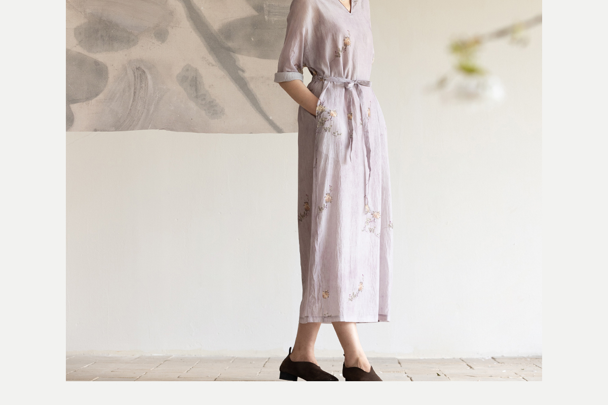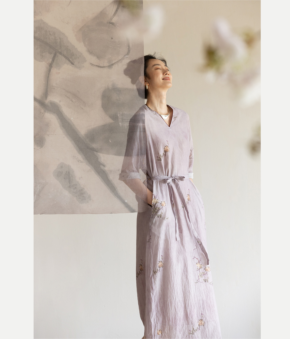 牧衣游原创 松骨牡丹印丝绵连衣裙夏轻薄宽松随性复古长裙 怀夕