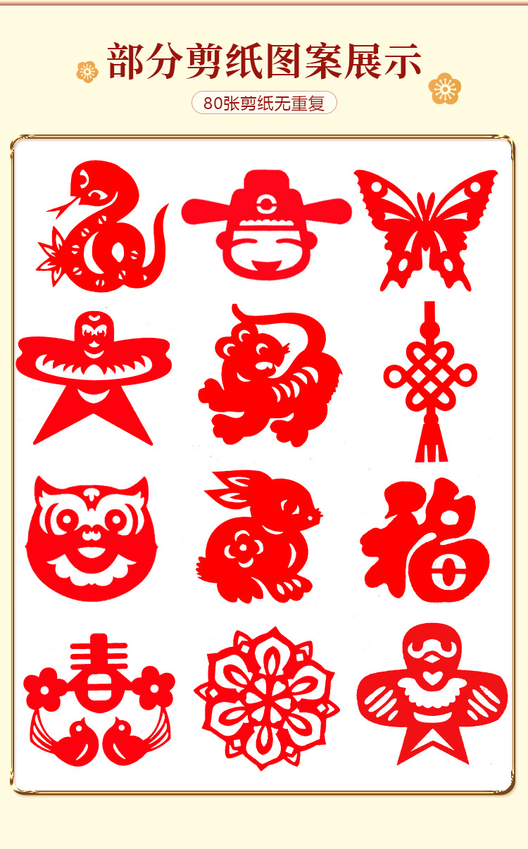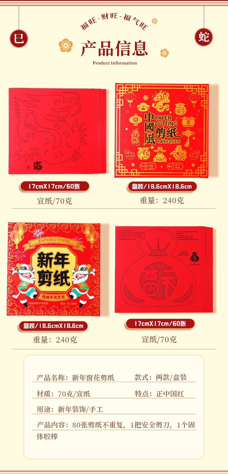 【新年限定❗️中国风剪纸礼盒装】祥蛇献瑞,福满人间,2025春节儿童新年窗花蛇年中国风半成品diy底稿图案