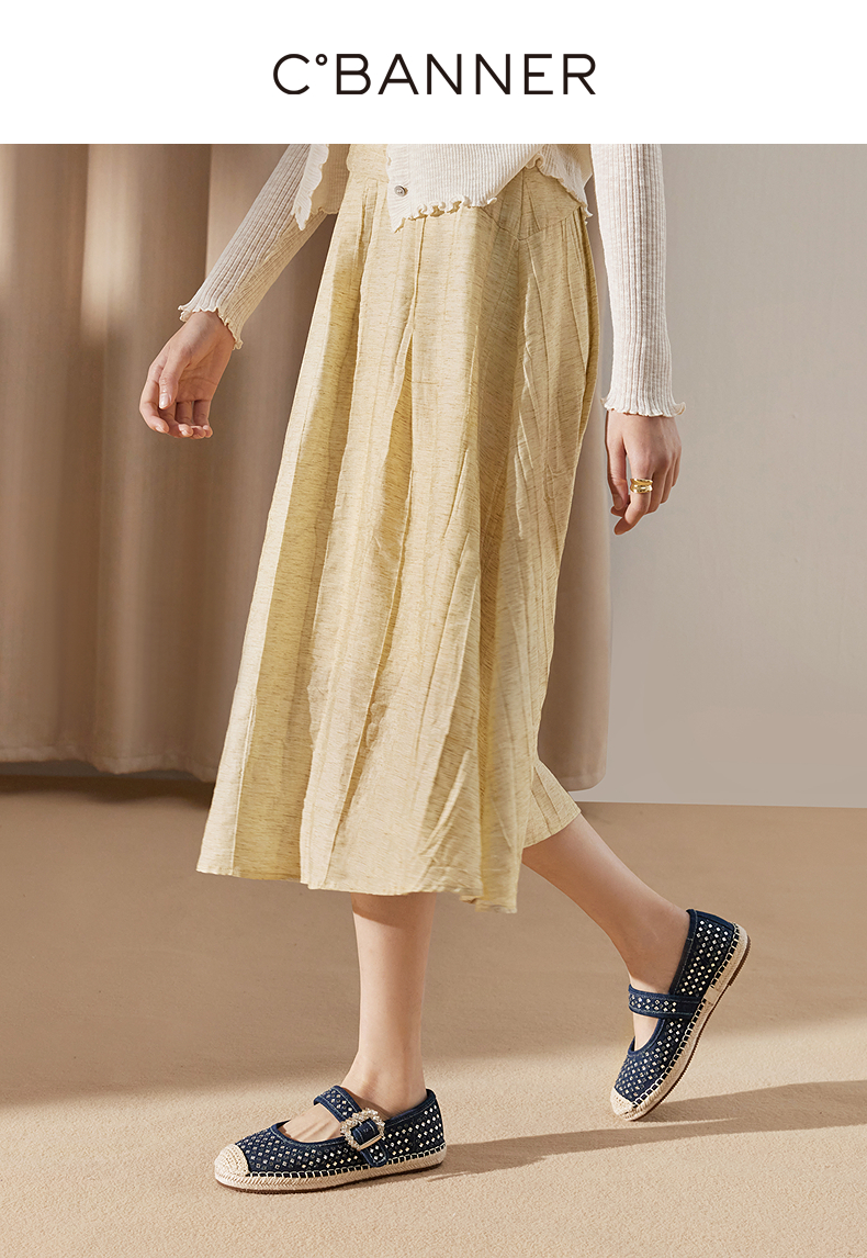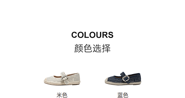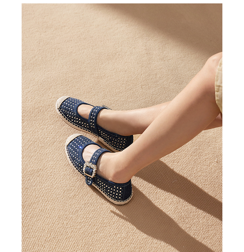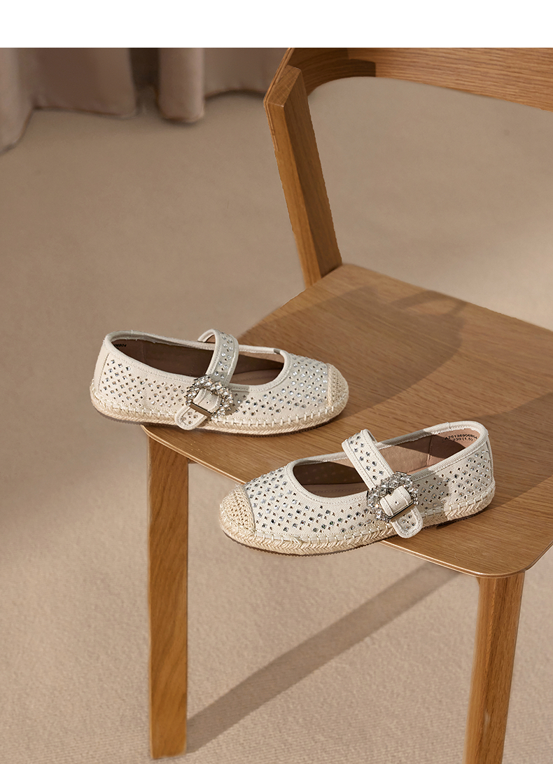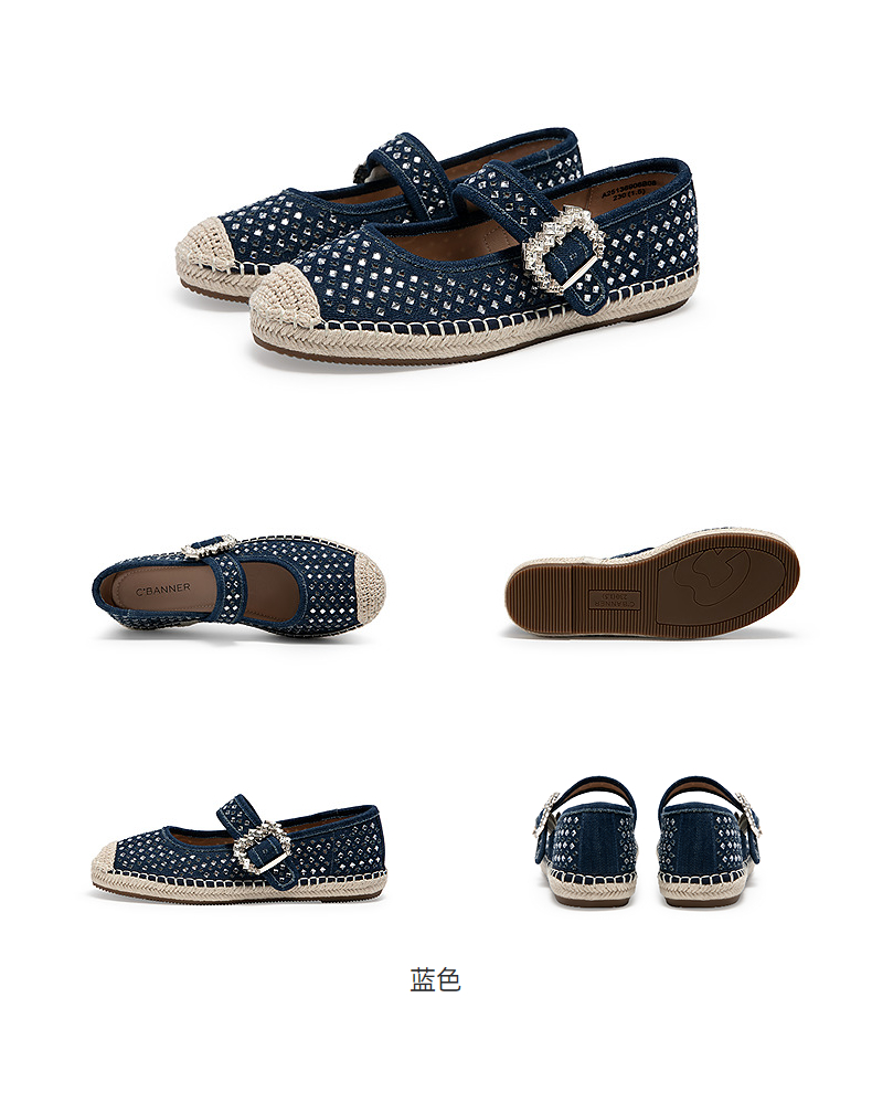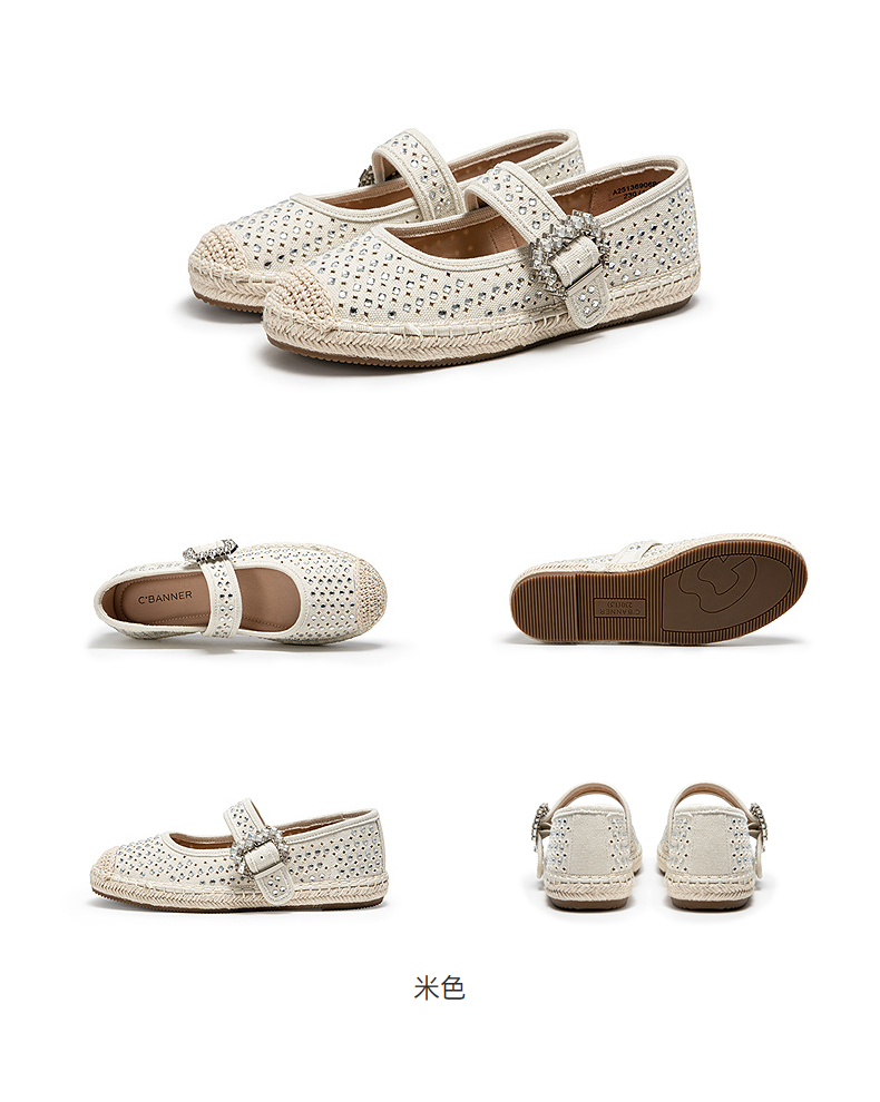 千百度草编底水钻玛丽珍女鞋舒适休闲透气平底单鞋A25136906
