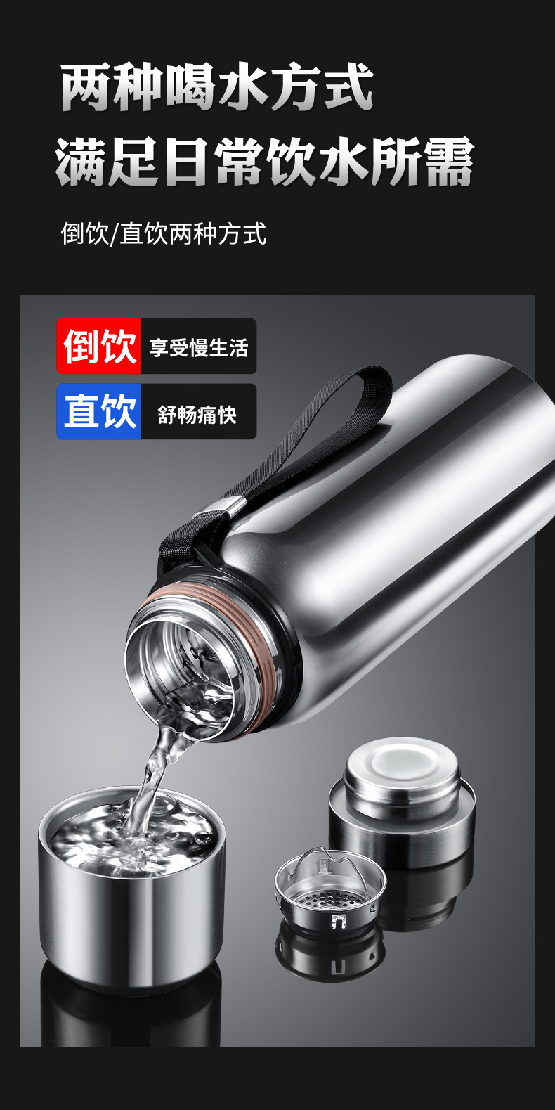 316不锈钢保温杯男全钢壶大容量保冷杯户外便携茶水分离泡茶杯子