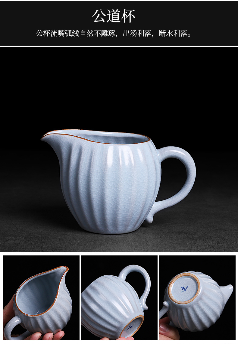 汝窑开片茶海陶瓷功夫茶具汝瓷公道杯家用大号倒茶杯公平杯