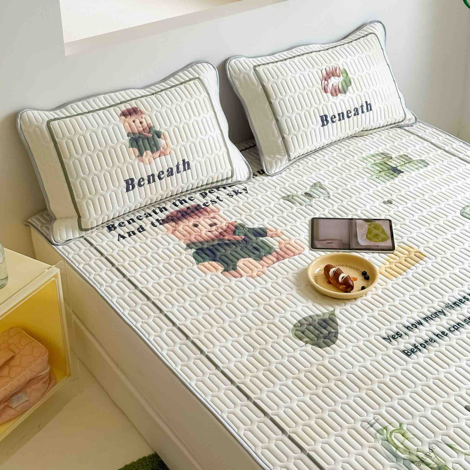 乳胶凉席三件套夏季裸睡家用冰丝可水洗折叠学生宿舍单人席子