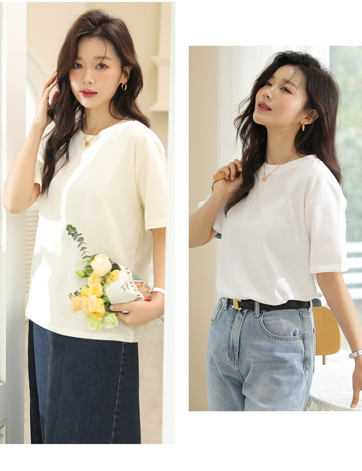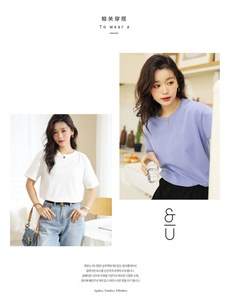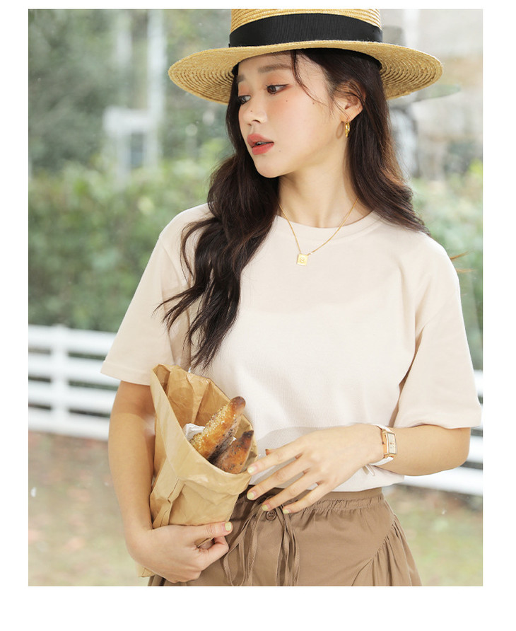 「优质马卡龙棉!感受不一样的质感」纯色女装春夏外穿宽松打底上衣圆领内搭套头短袖