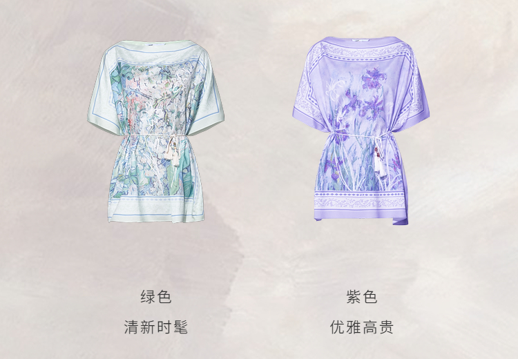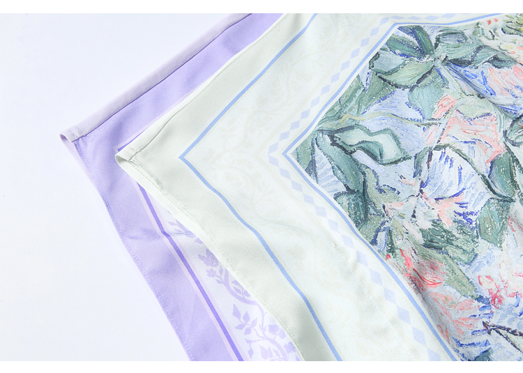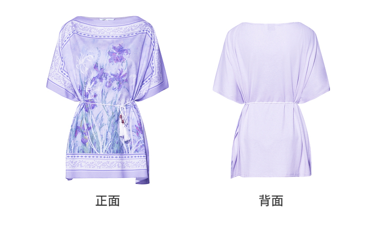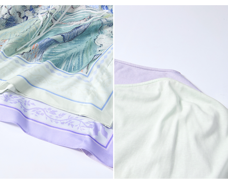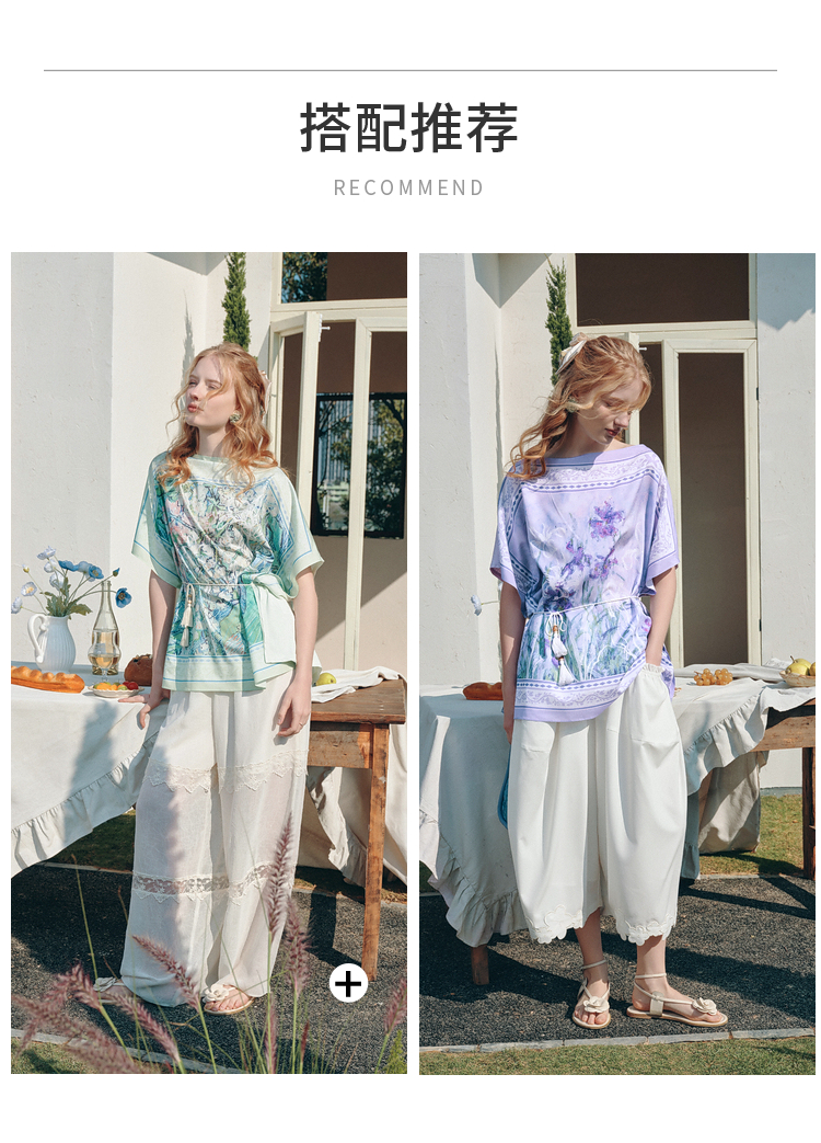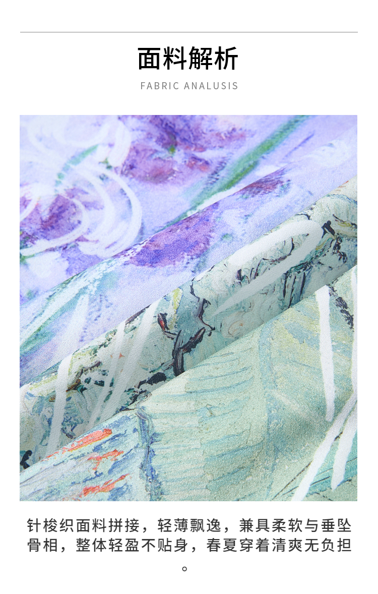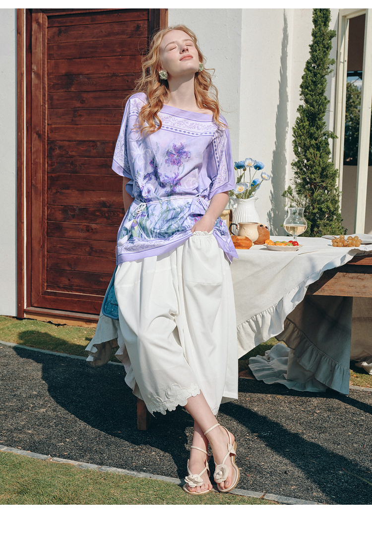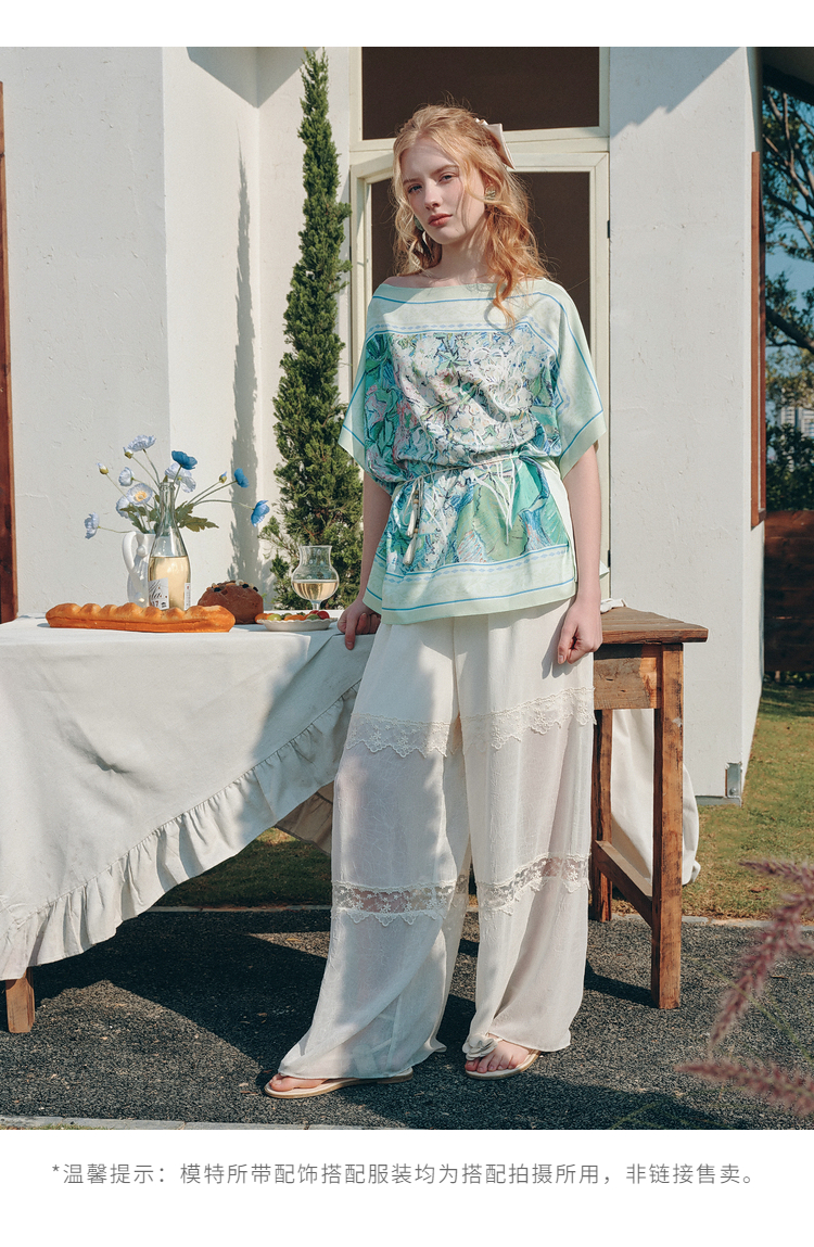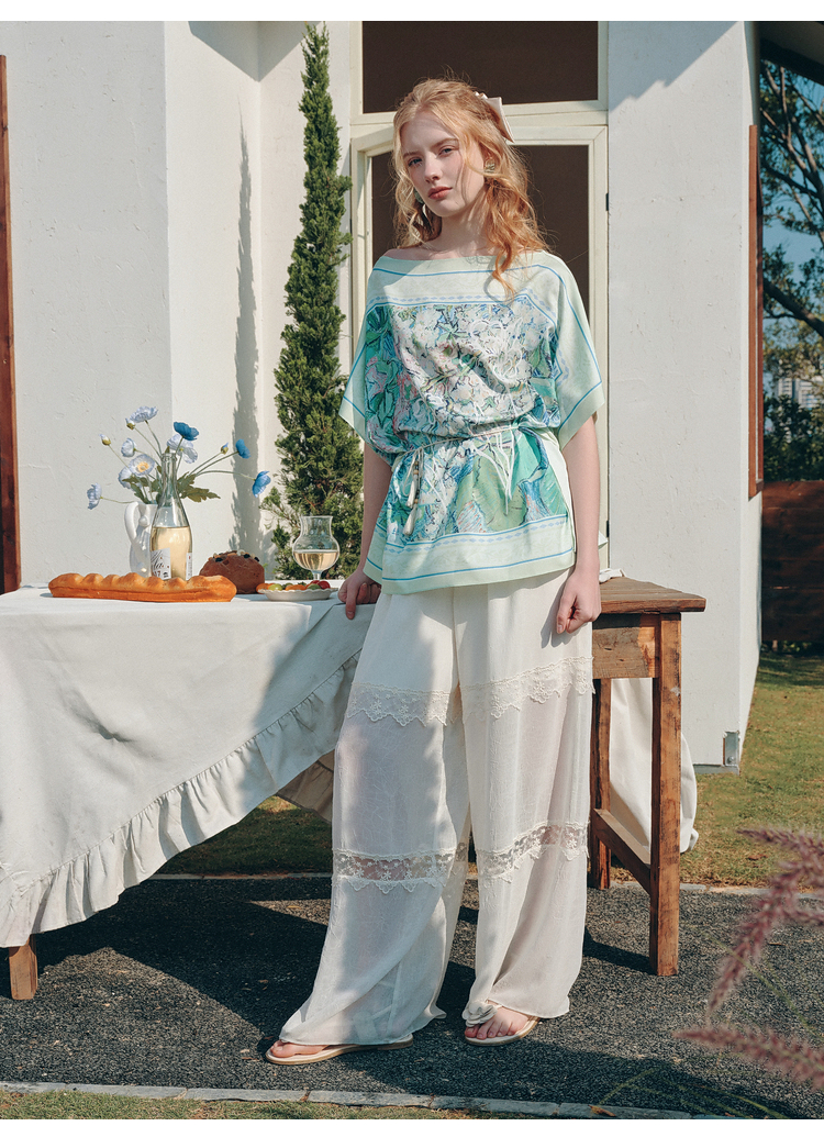 两三事梵高文艺 野境生花 2026夏季新款复古印花绑带一字领t恤女