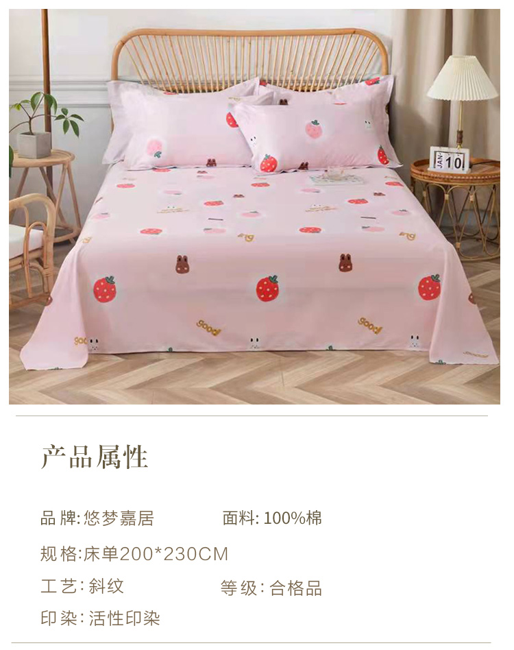 【自营】悠梦嘉居全棉单床单草莓/格调700g 两色可选