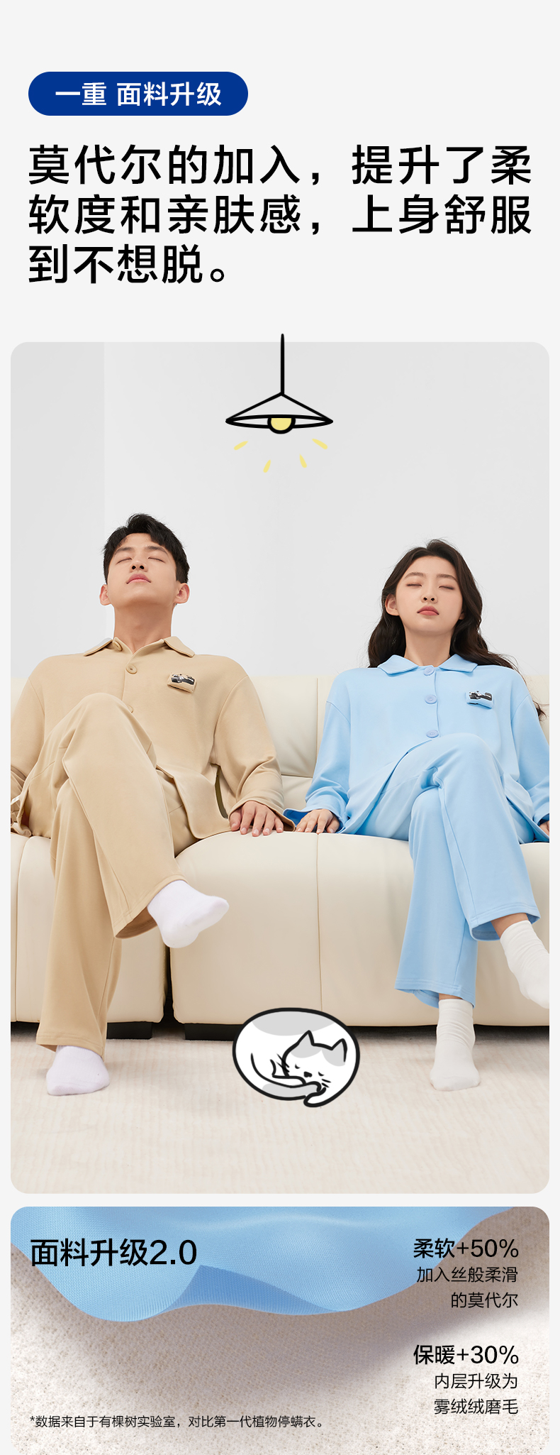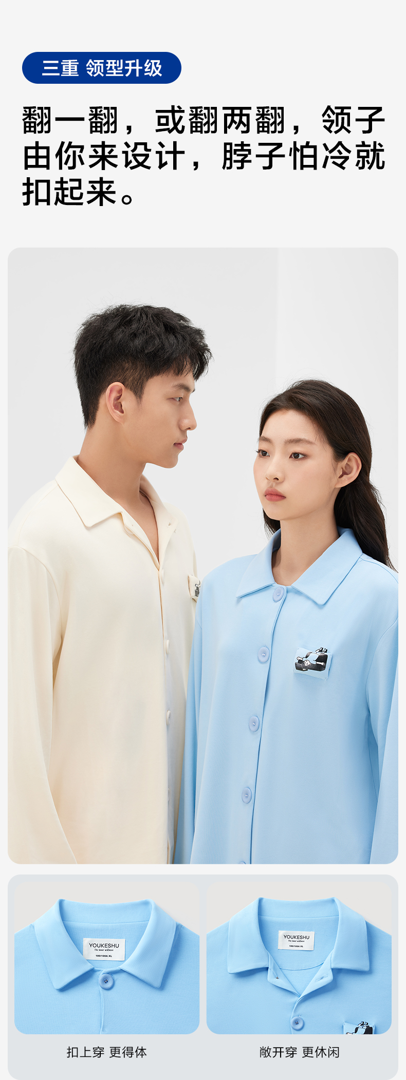 有棵树植物停螨衣新款翻领可外穿情侣家居服-QL1025