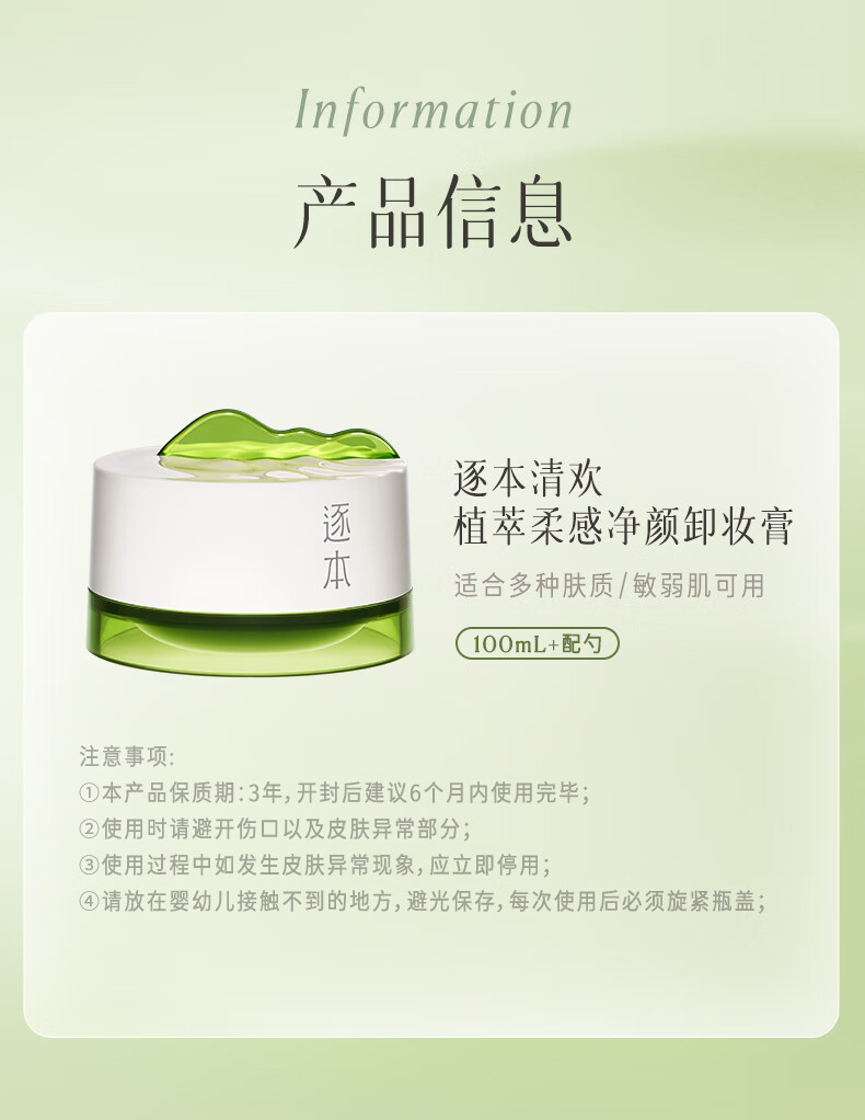 逐本清欢植萃净颜卸妆膏深层清洁乳化快滋润温和不刺激卸妆膏100ml 100054001939