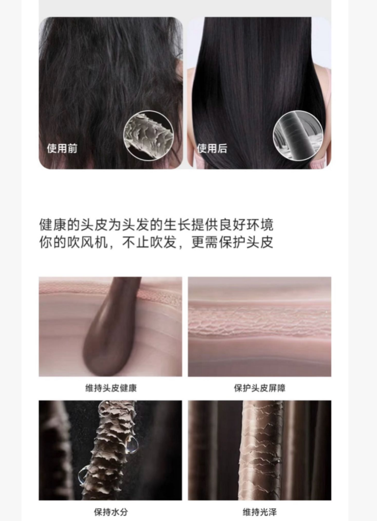 3??高浓度负离子护发,2亿负离子,平衡发丝静电,干发后水润丝滑