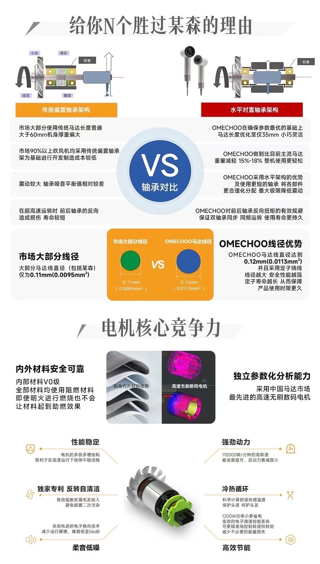 有效防止毛发卷入,更安全,更放心看不见的内部核心轴承架构差异