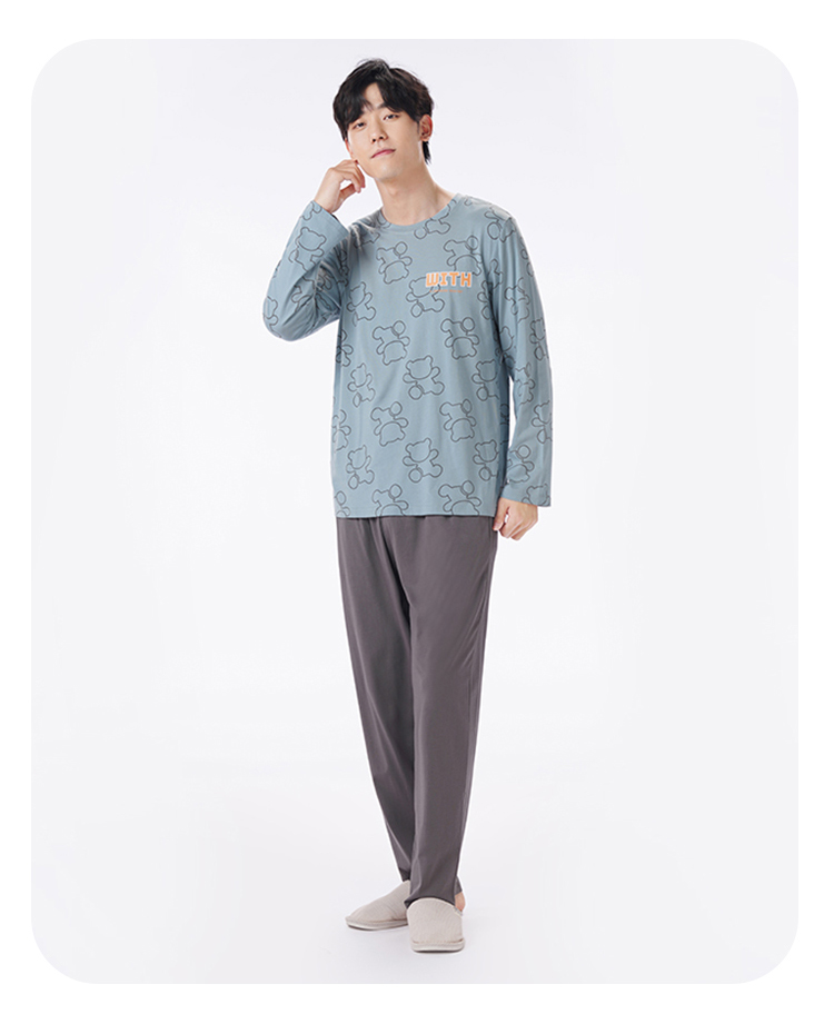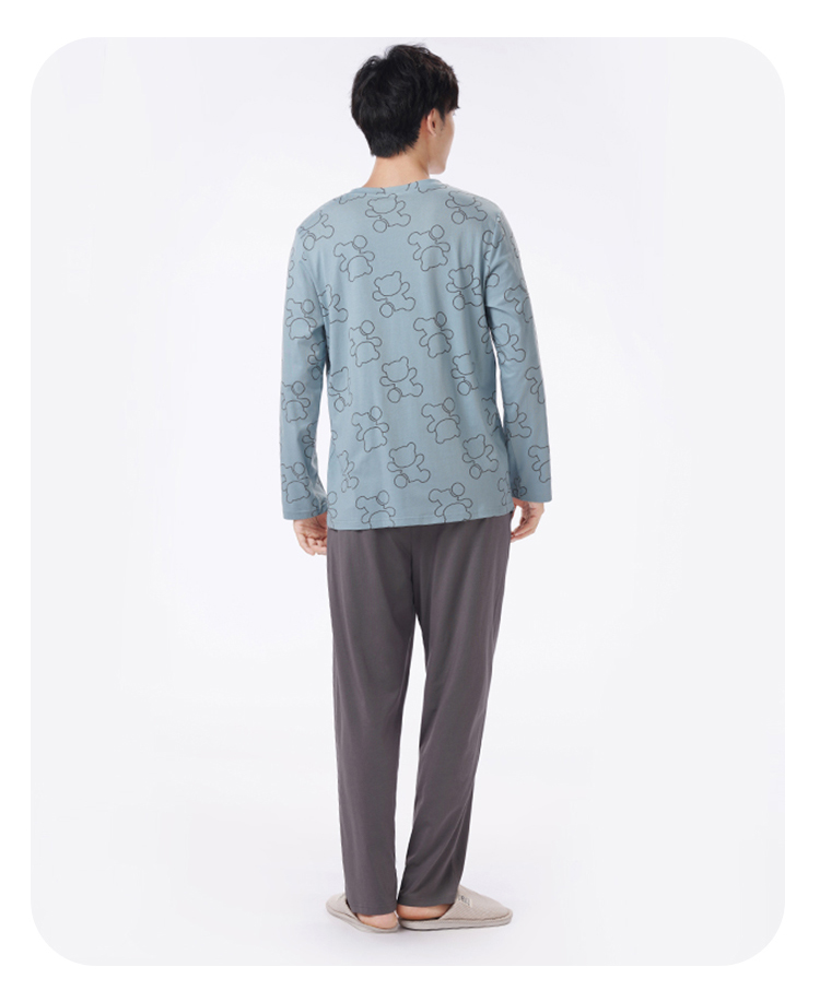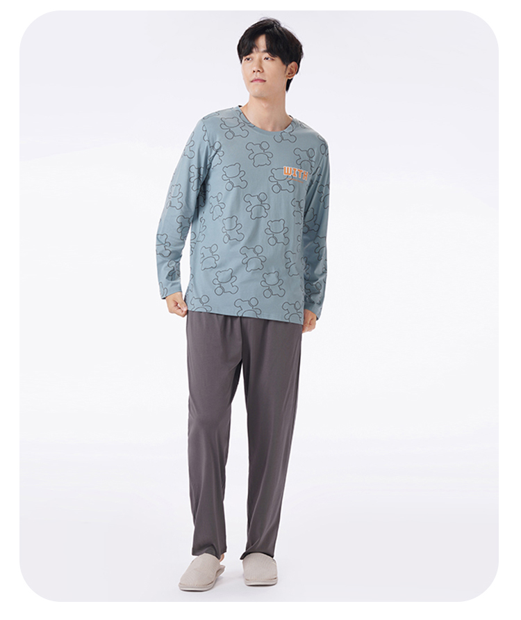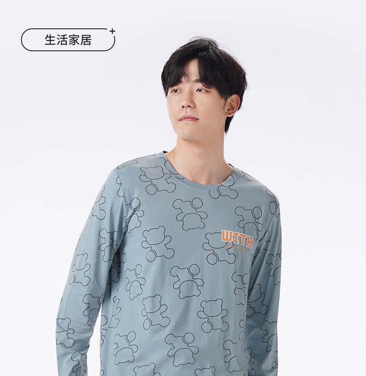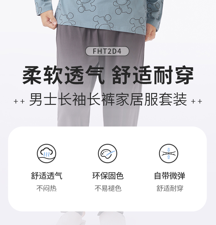 都市丽人都市锋尚睡衣生活家居长袖40S TC拉架薄男士棉质套装FHT2D4
