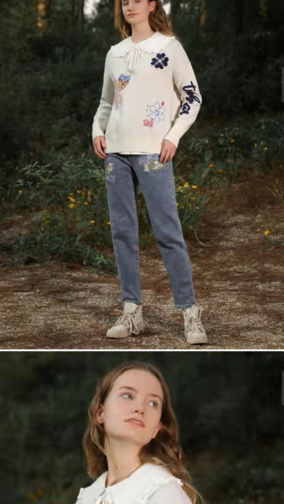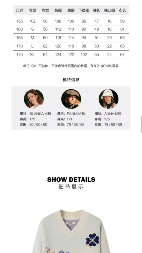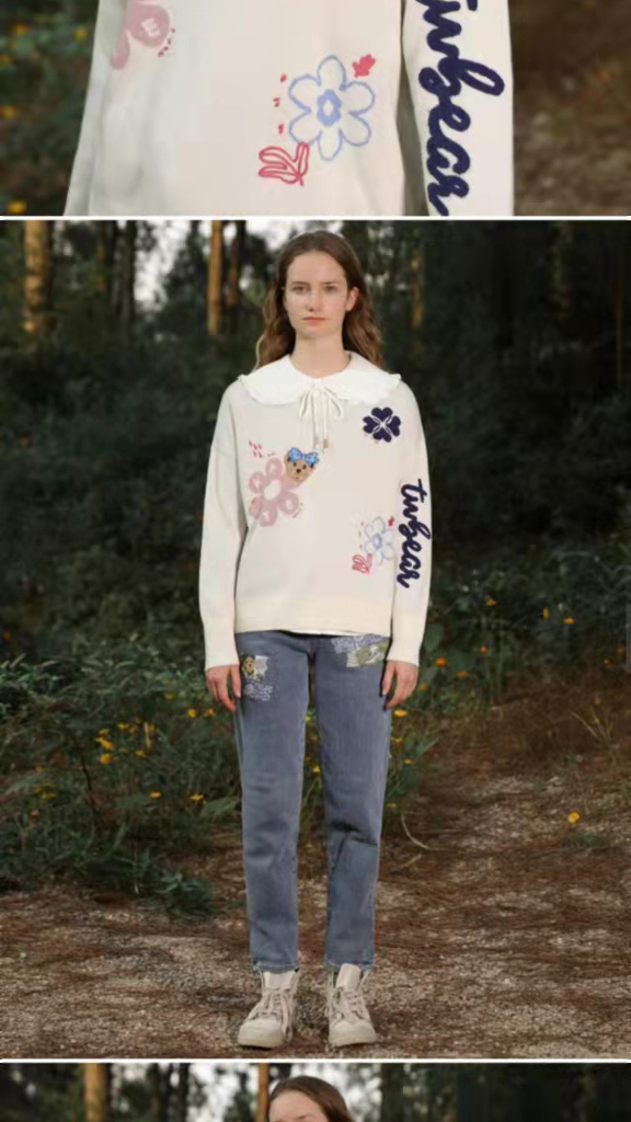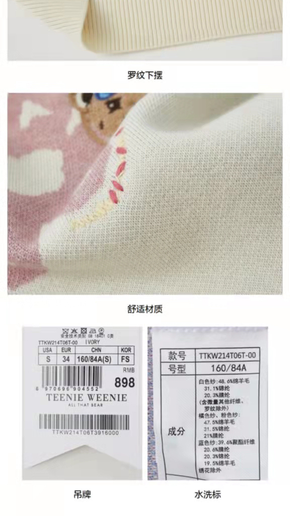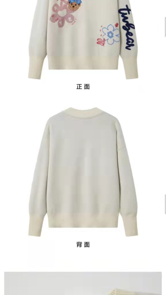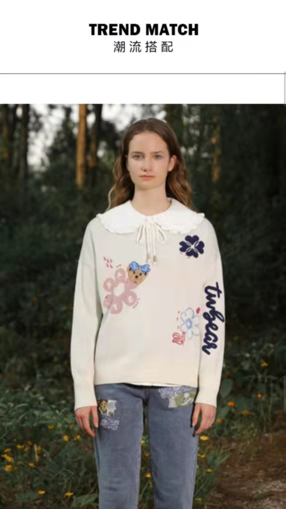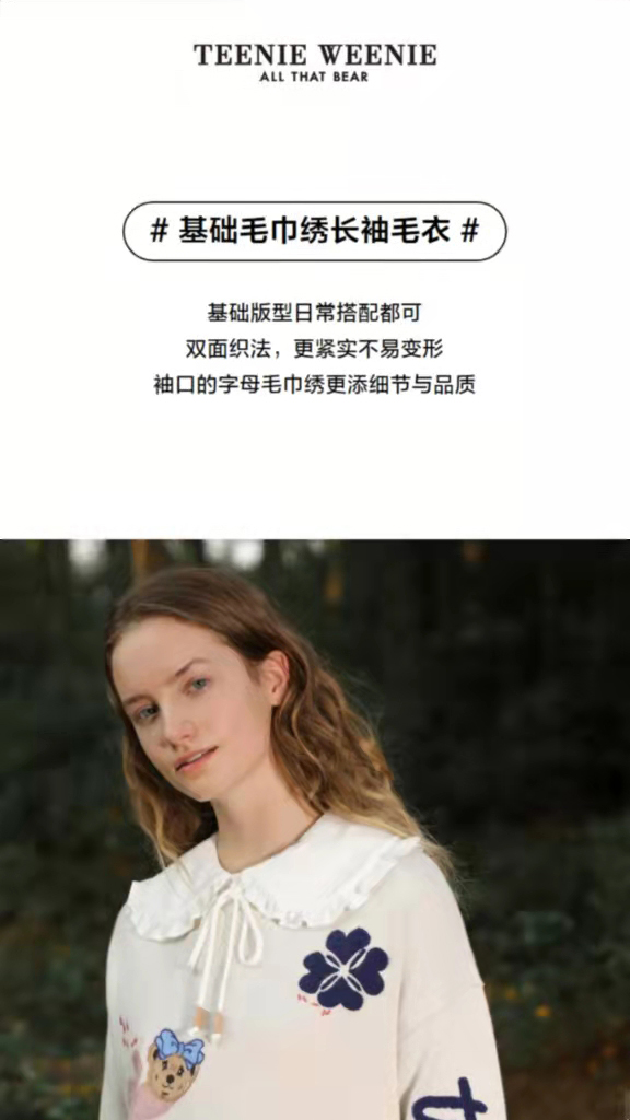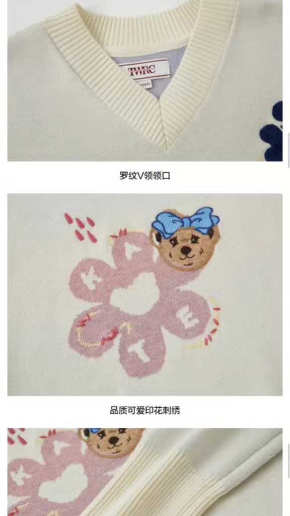 TeenieWeenie小熊V领套头针织衫毛衣宽松直筒韩版显瘦女秋冬外穿TTKW214T06T