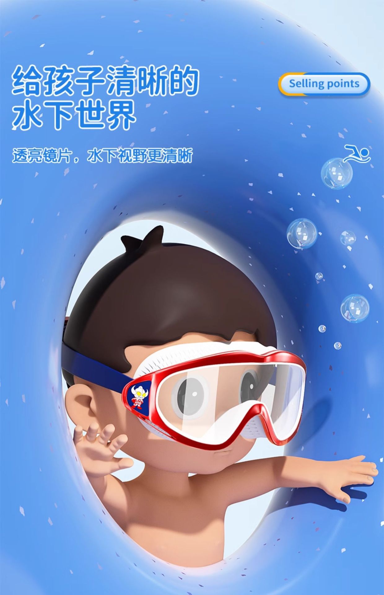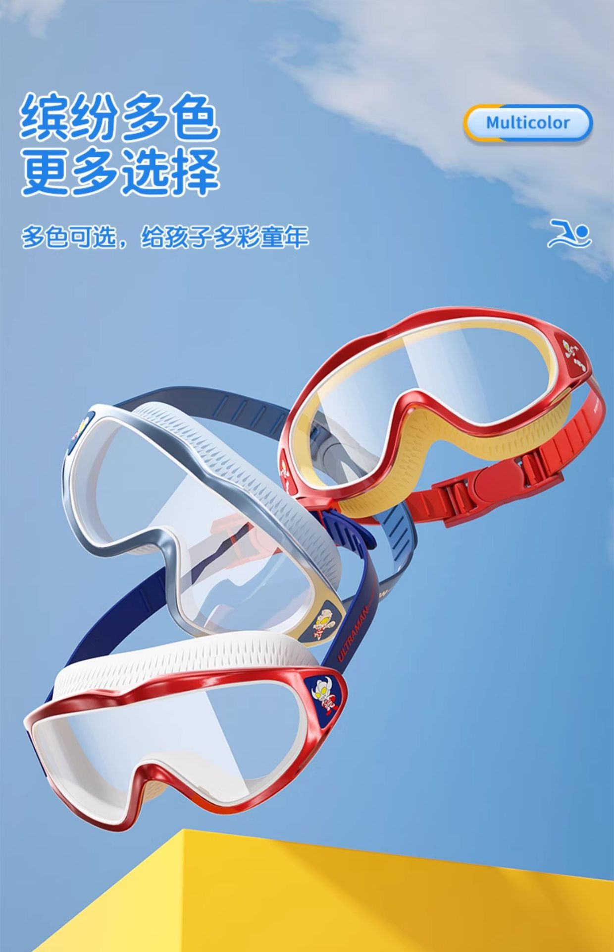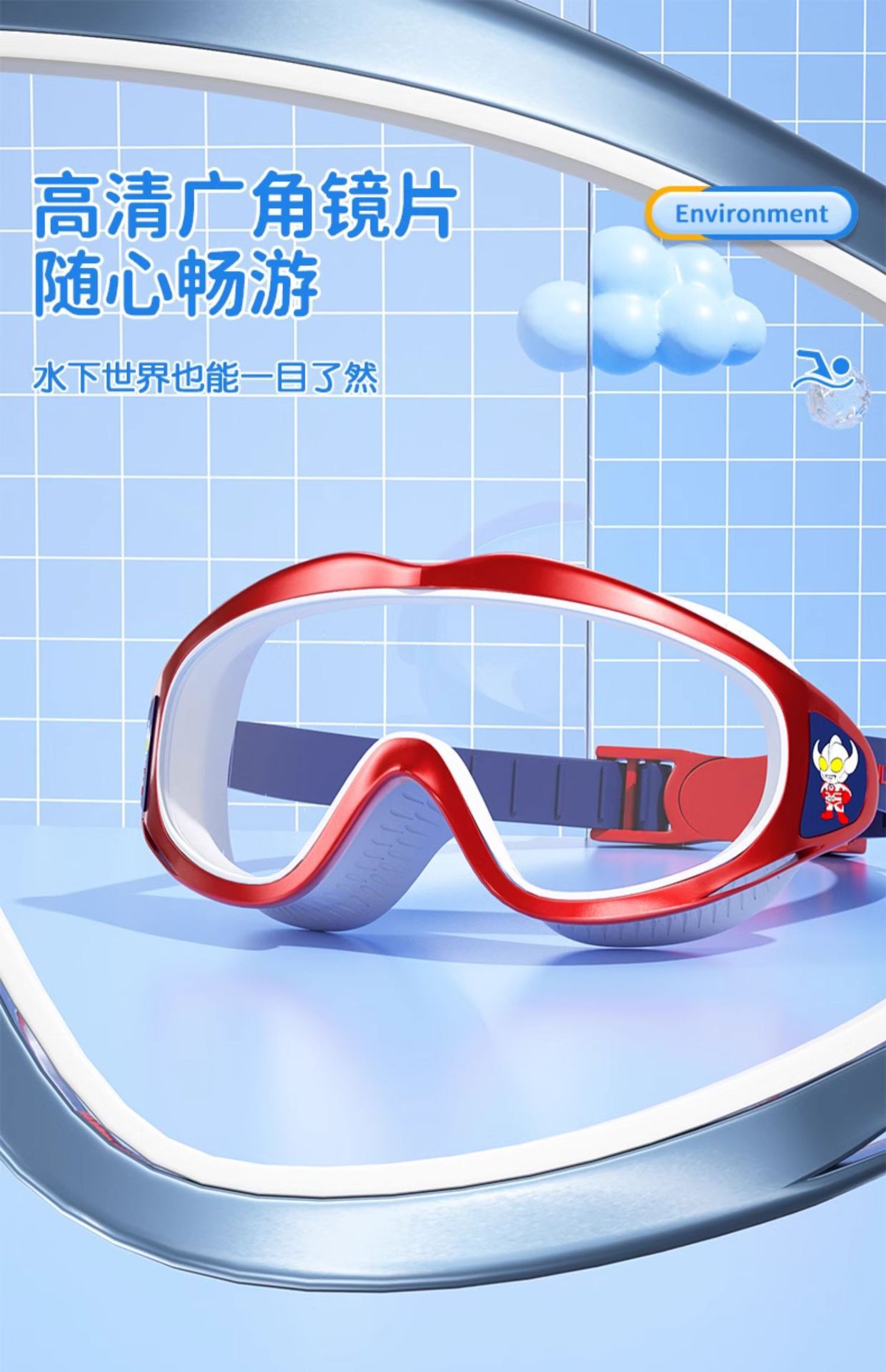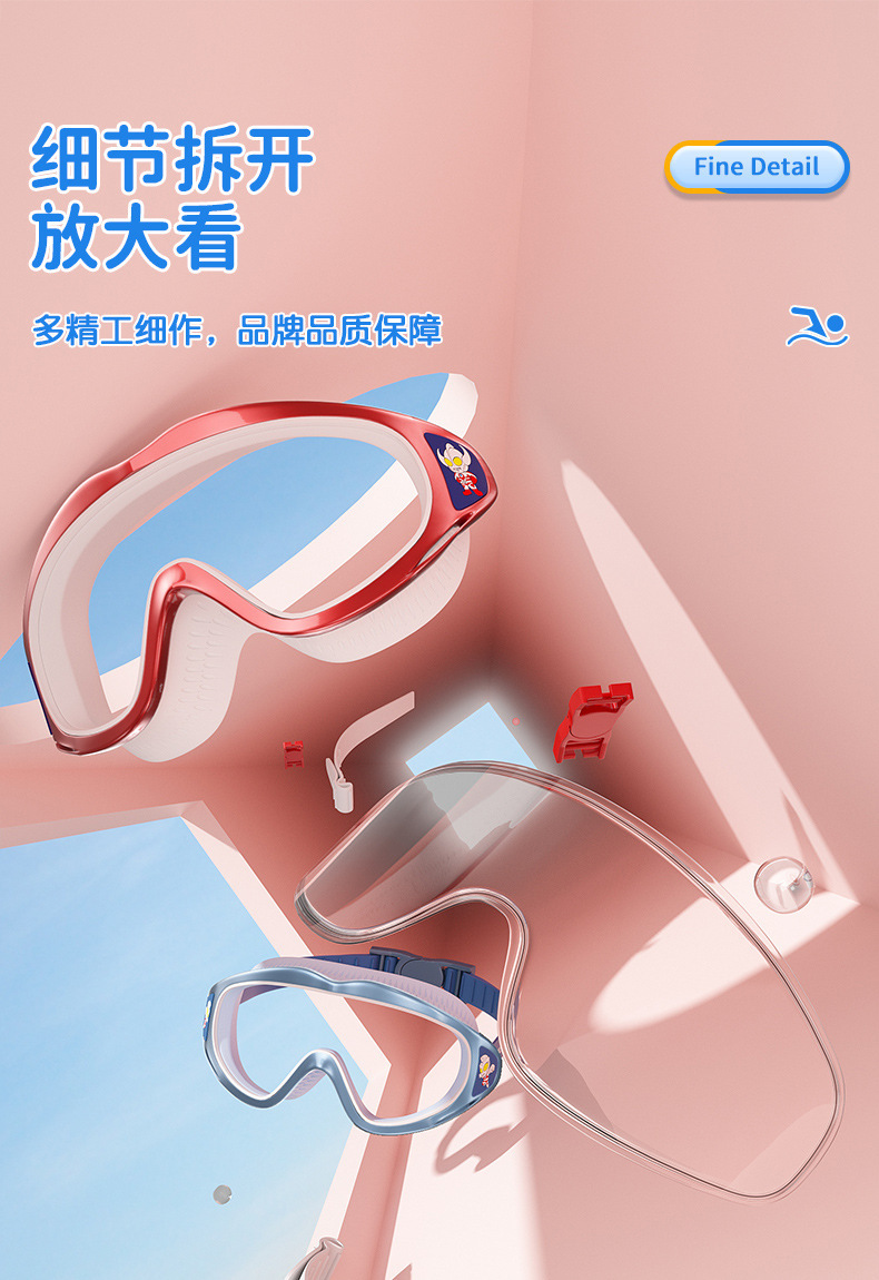 经典奥特曼儿童泳镜男童高清防水防雾大框游泳镜泳帽套装游泳装备