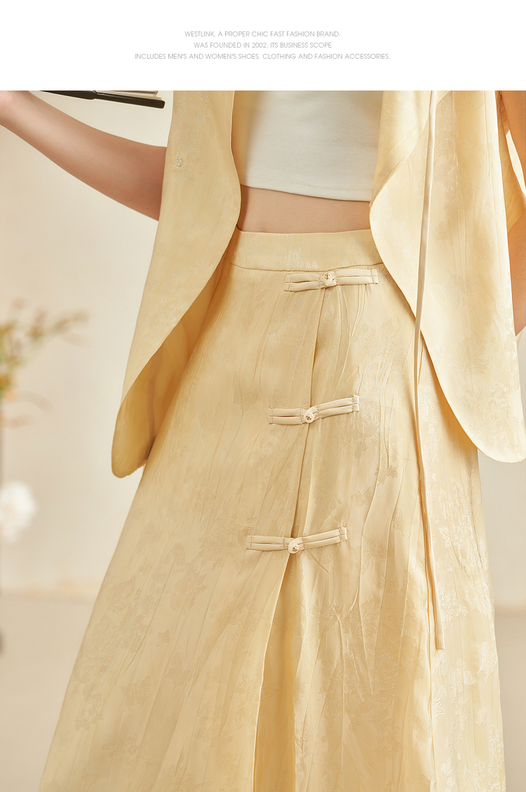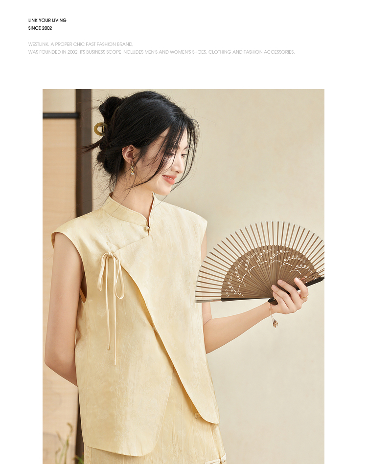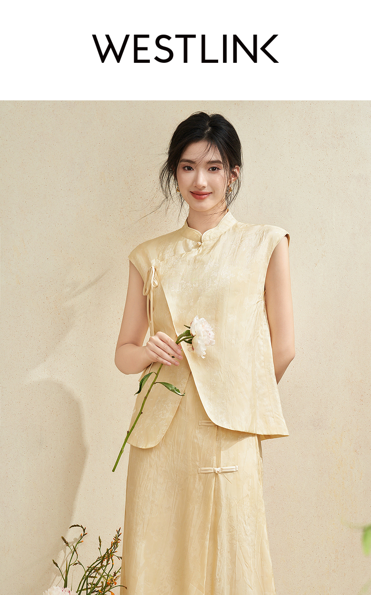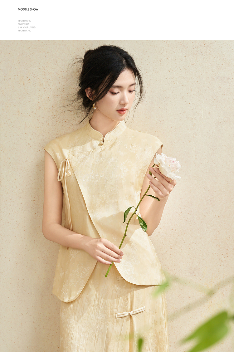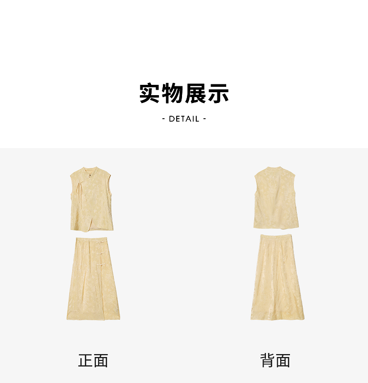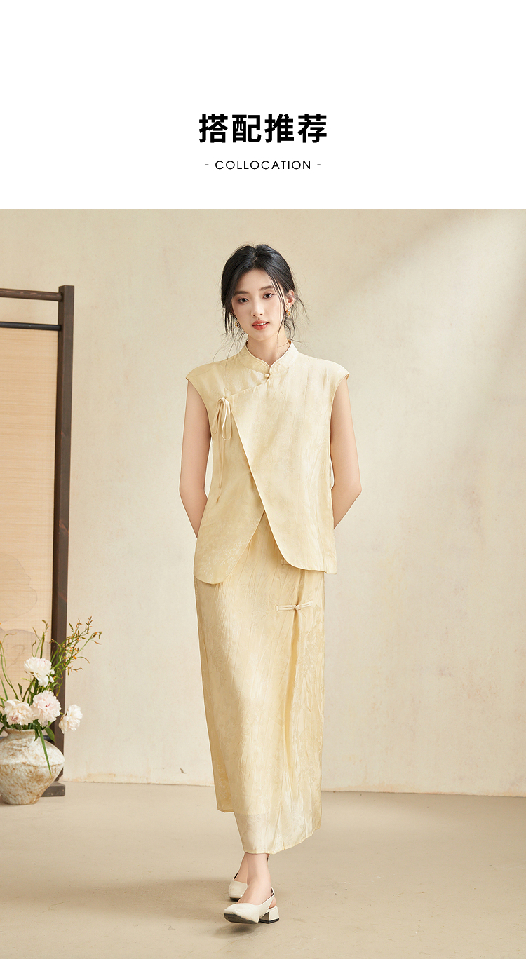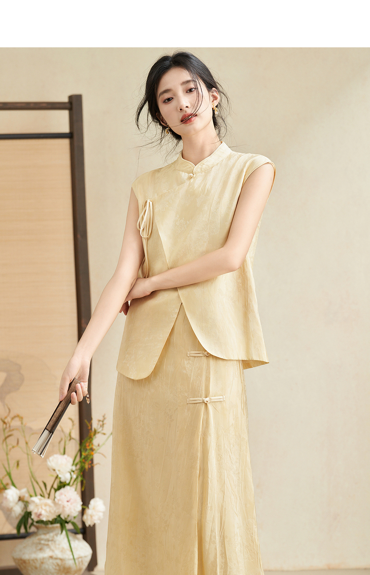 新中式国风古朴淡雅肌理套装女夏季立领马甲搭半裙两件套V2241886