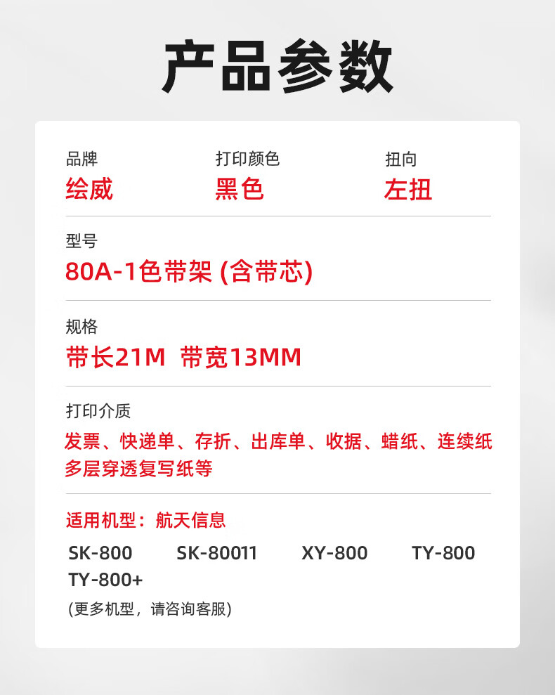 绘威80A-1色带架 适用航天信息Aisino SK-800 SK-800II XY-800 TY-800 TY-800针式打印机色带含芯