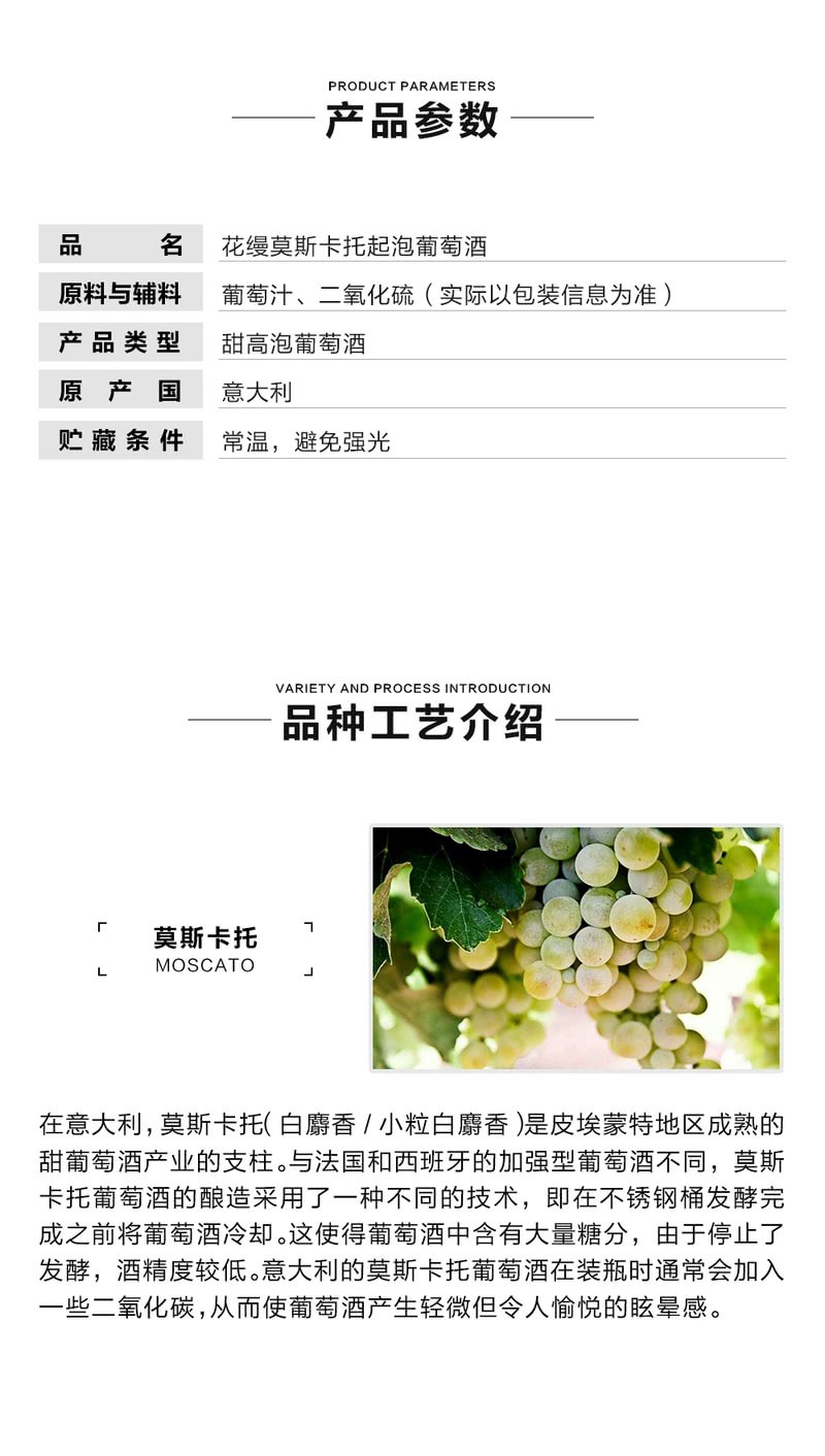 花缦莫斯卡托起泡葡萄酒750ml