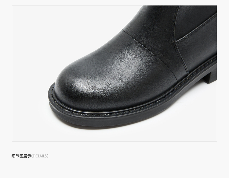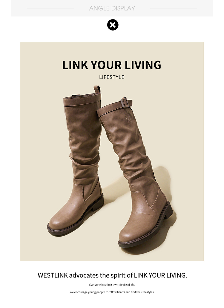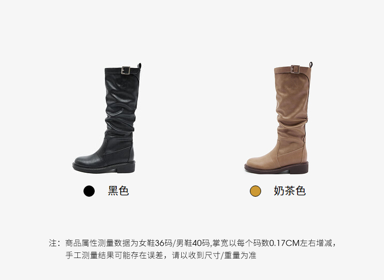 西遇长筒靴女堆堆靴新款秋冬单靴复古显瘦奶茶色圆头厚底长靴V3947745