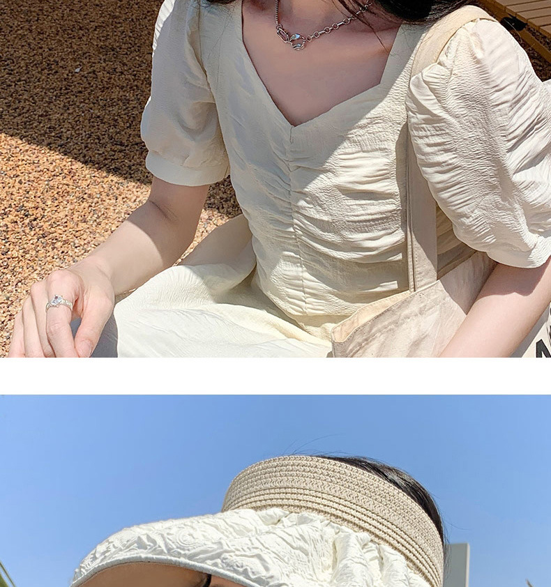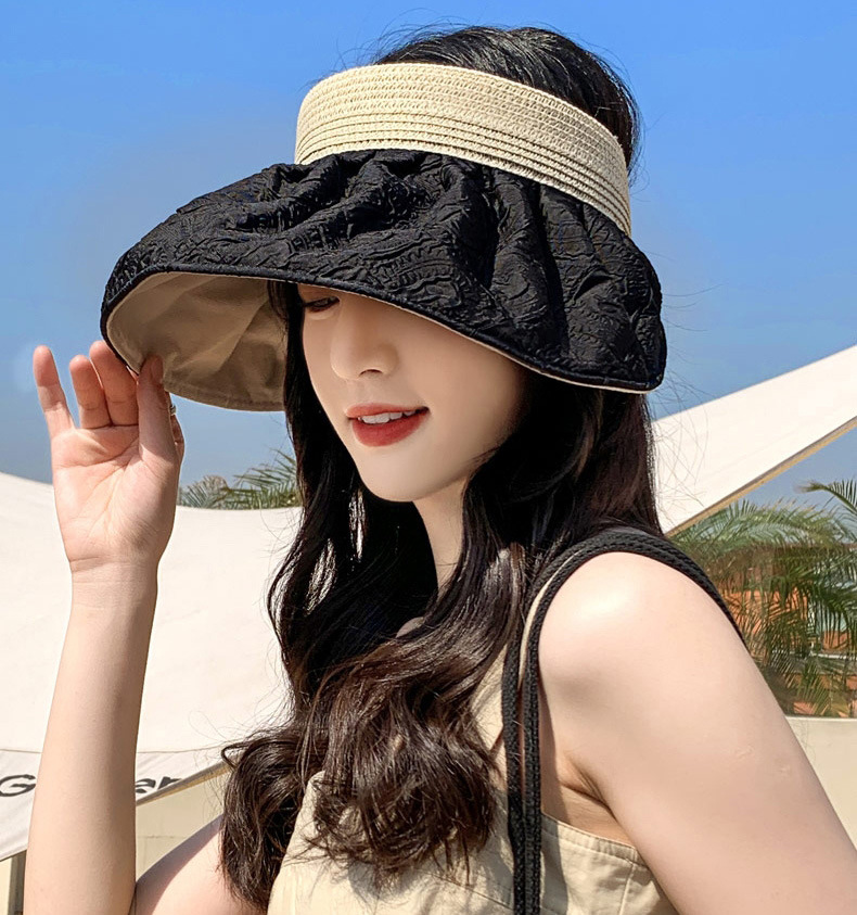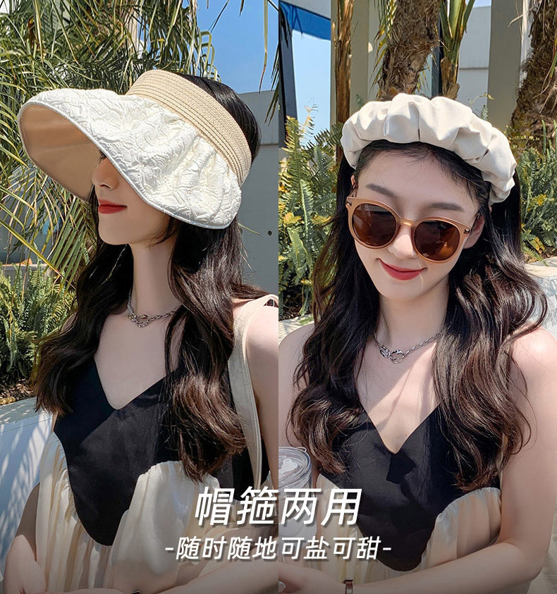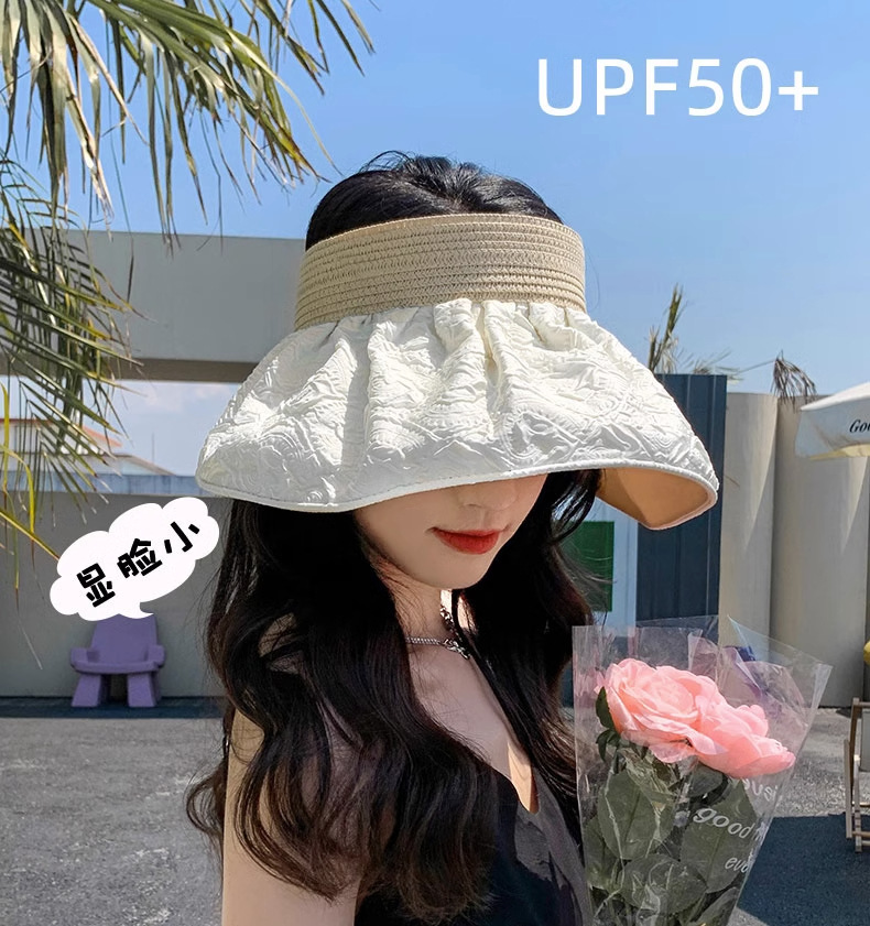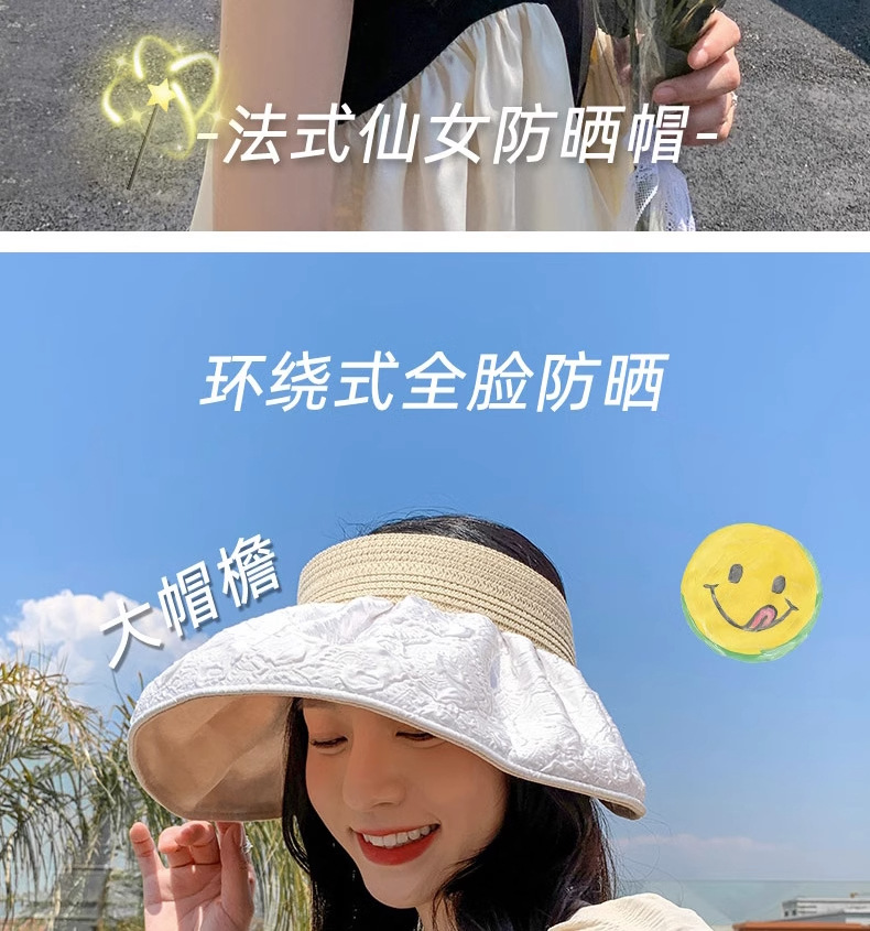 【夏季新品!时尚百搭】法式仙女草编压花空顶防晒帽女UPF50+!不挑脸型显脸小,佩戴自然方便,轻盈透气,持久耐用,防晒防紫外线,时尚花边,女夏季帽子防紫外线花边贝壳空顶帽,网红ins推荐!