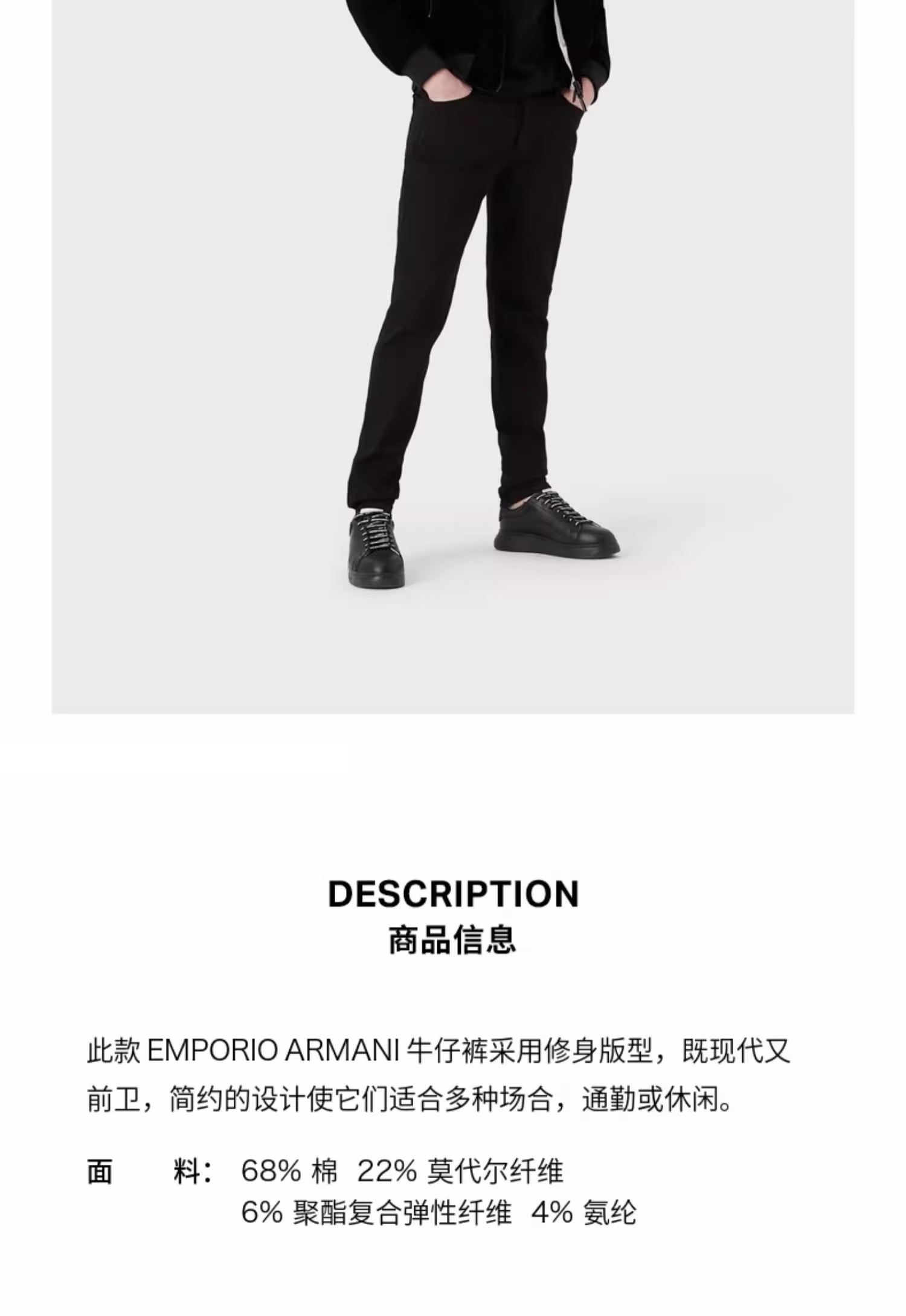 E ARMANI 便服裤男 8N1J111DHDZ-0005 .6%ELASTOMULTIESTER 68%COTTON 4%ELASTANE 22%MODAL