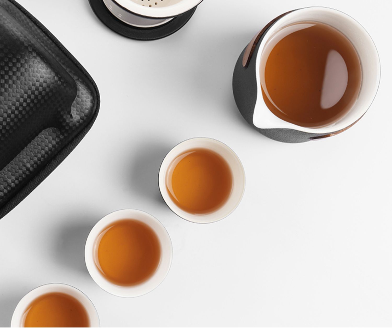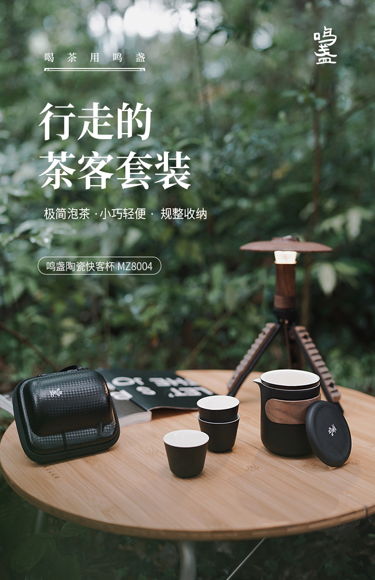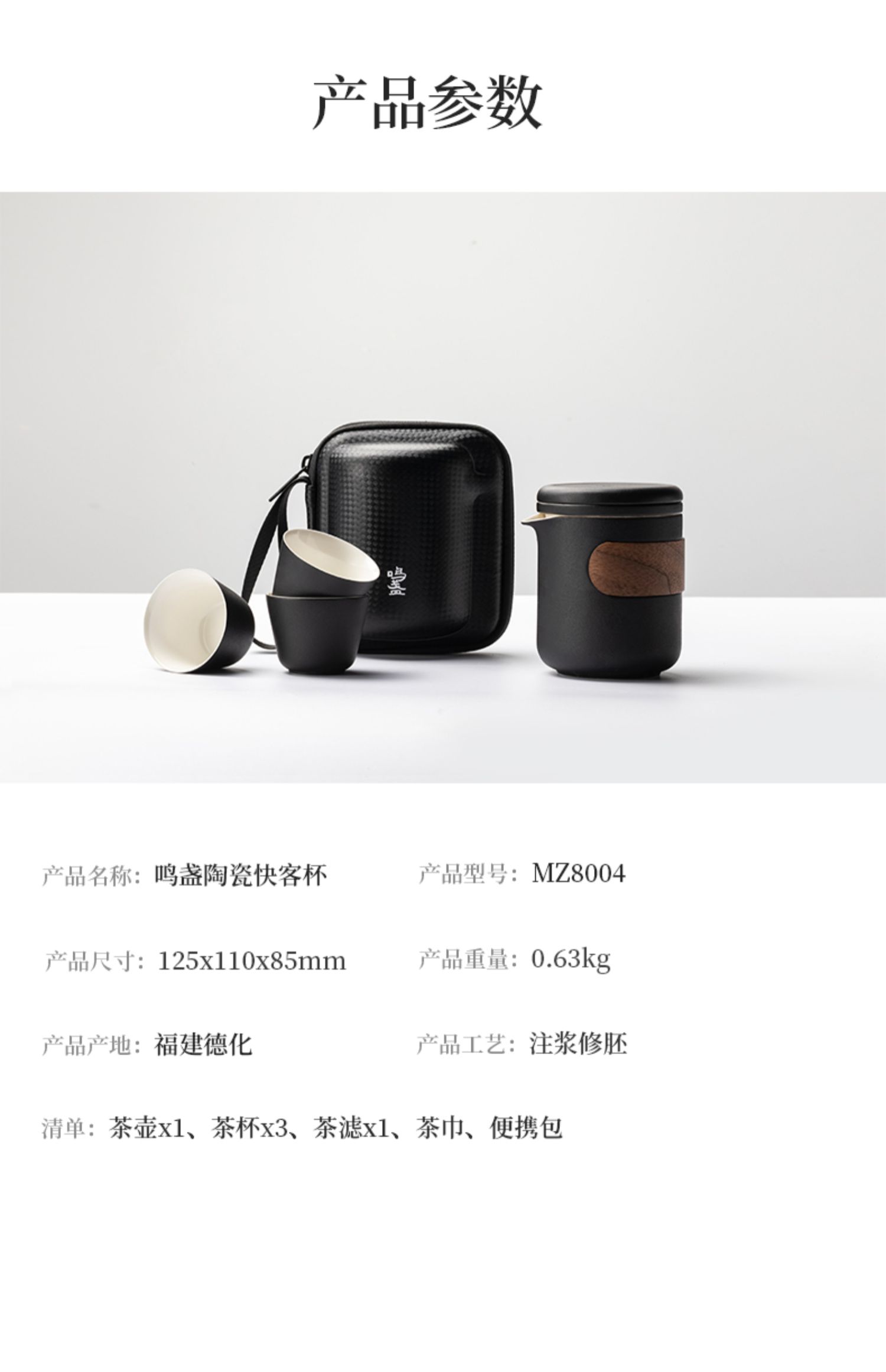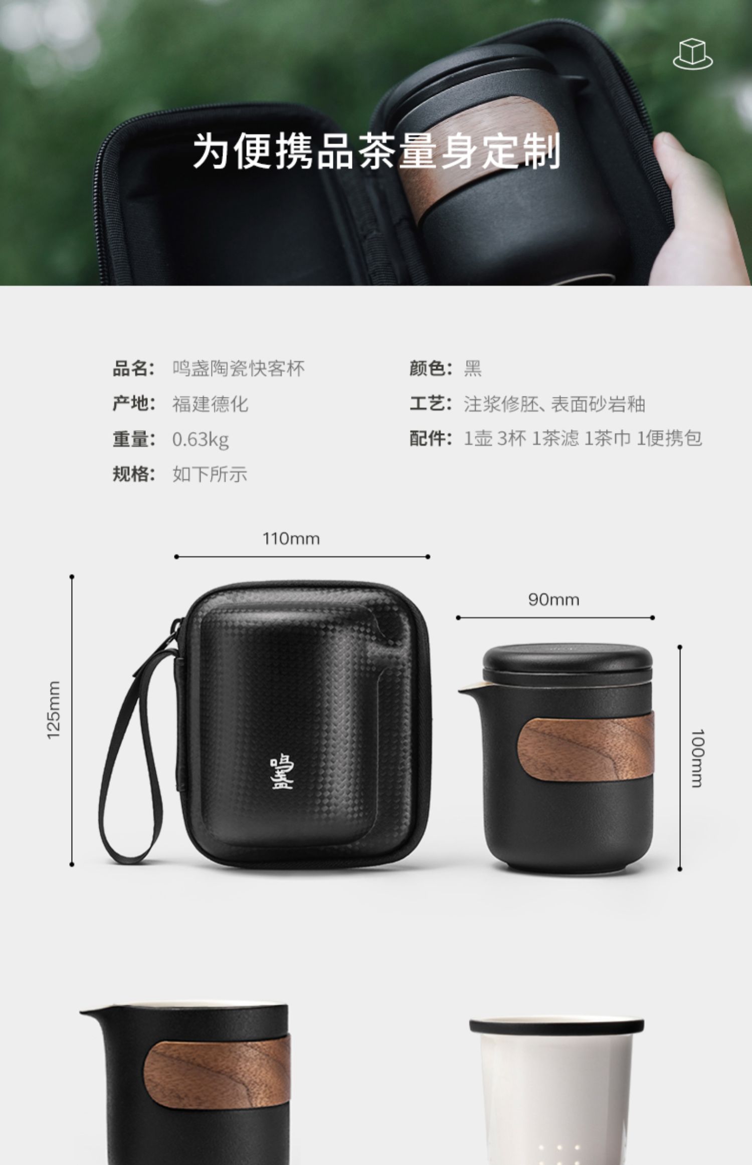 【旅行便携套装】鸣盏陶瓷快客杯黑釉珍瓷茶具茶海茶漏茶巾品茗杯家用