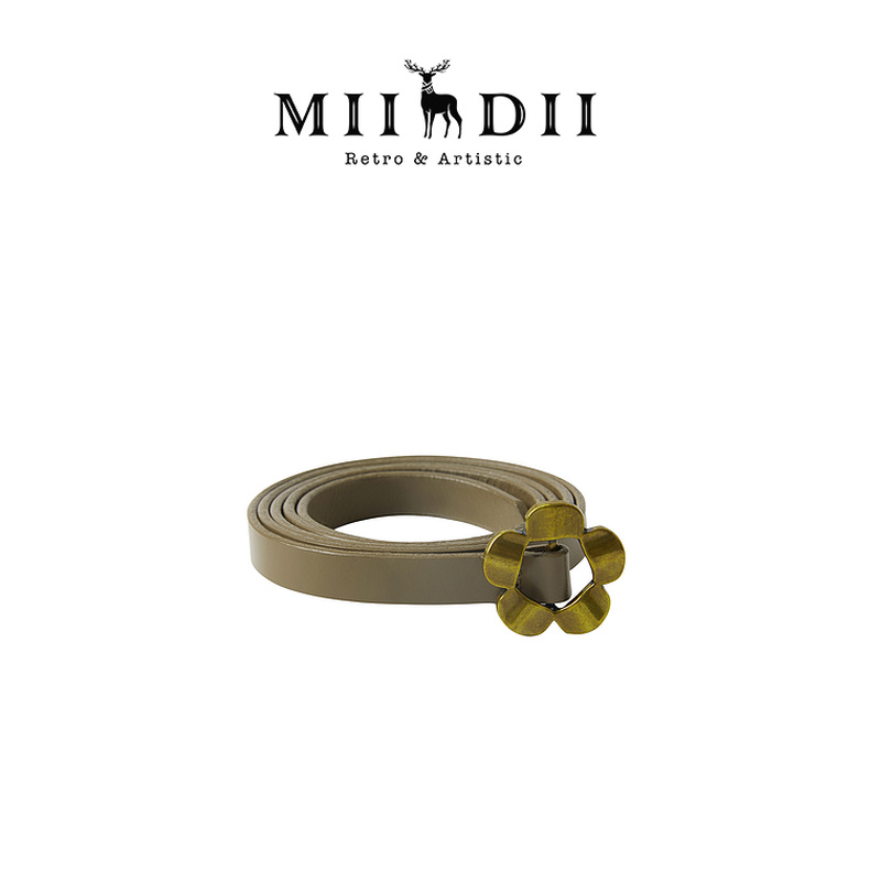 谜底花朵扣头牛皮革皮带2025秋新品简约百搭无孔细腰带253MQ1407