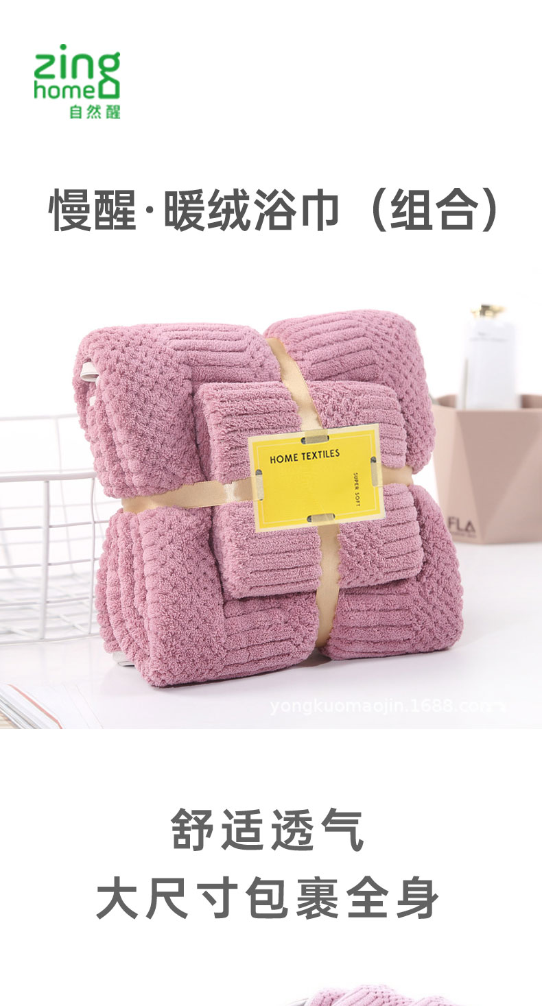 【2条装】自然醒纯棉素色毛巾家用洗脸成人加厚全棉柔软吸水洗澡大浴巾WDF