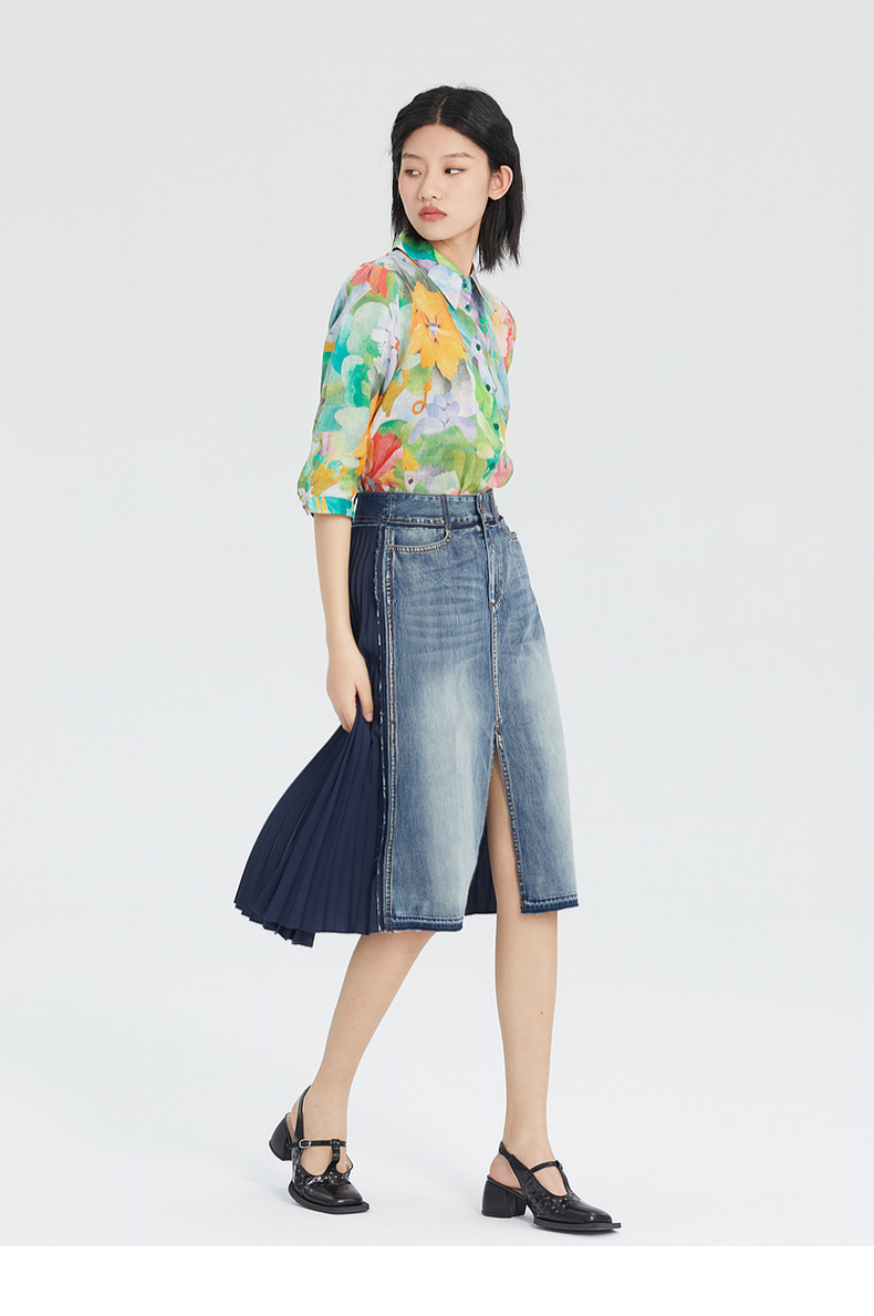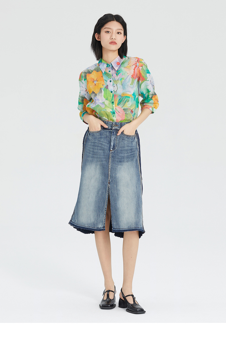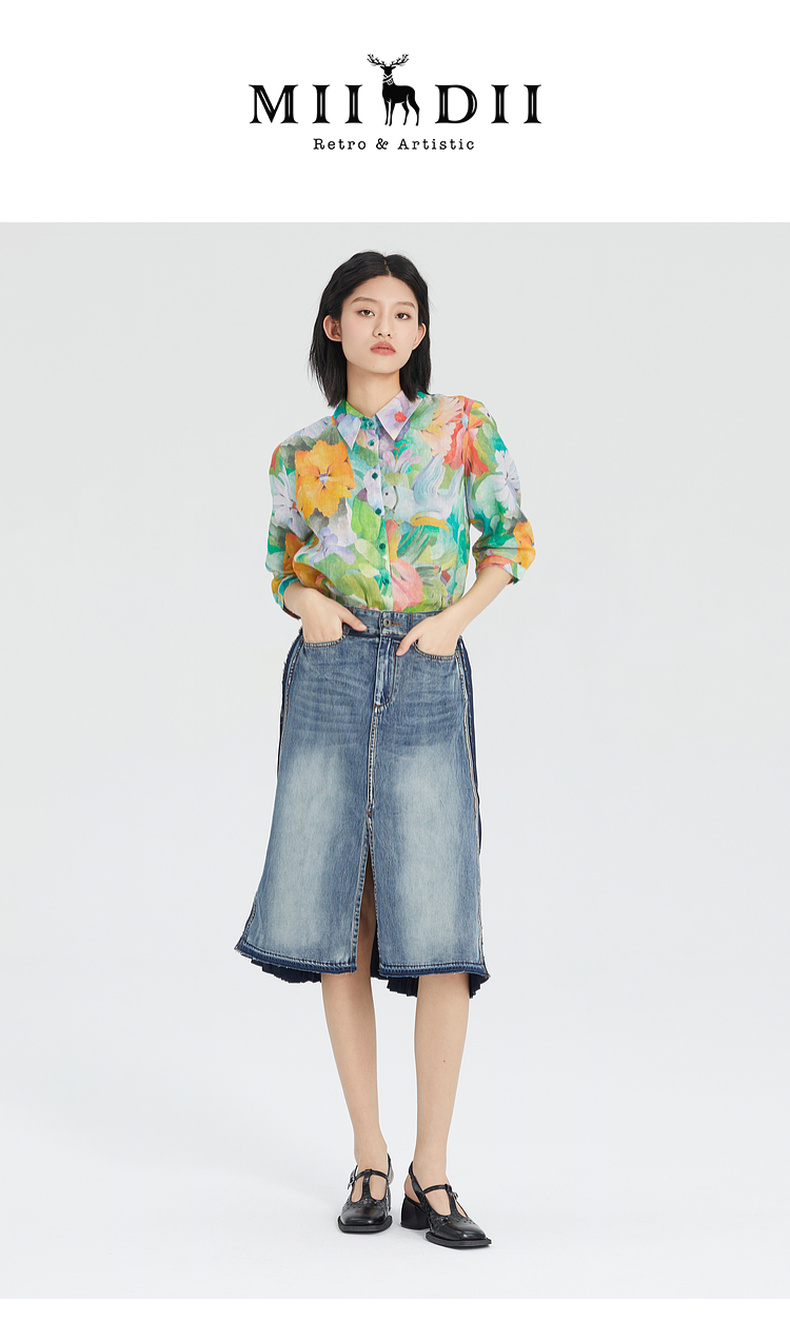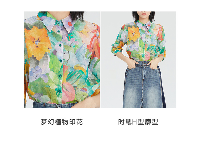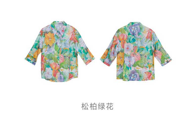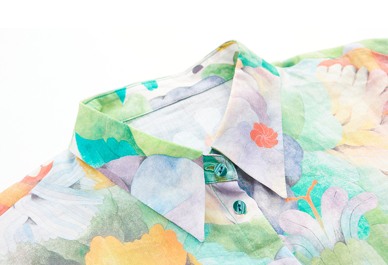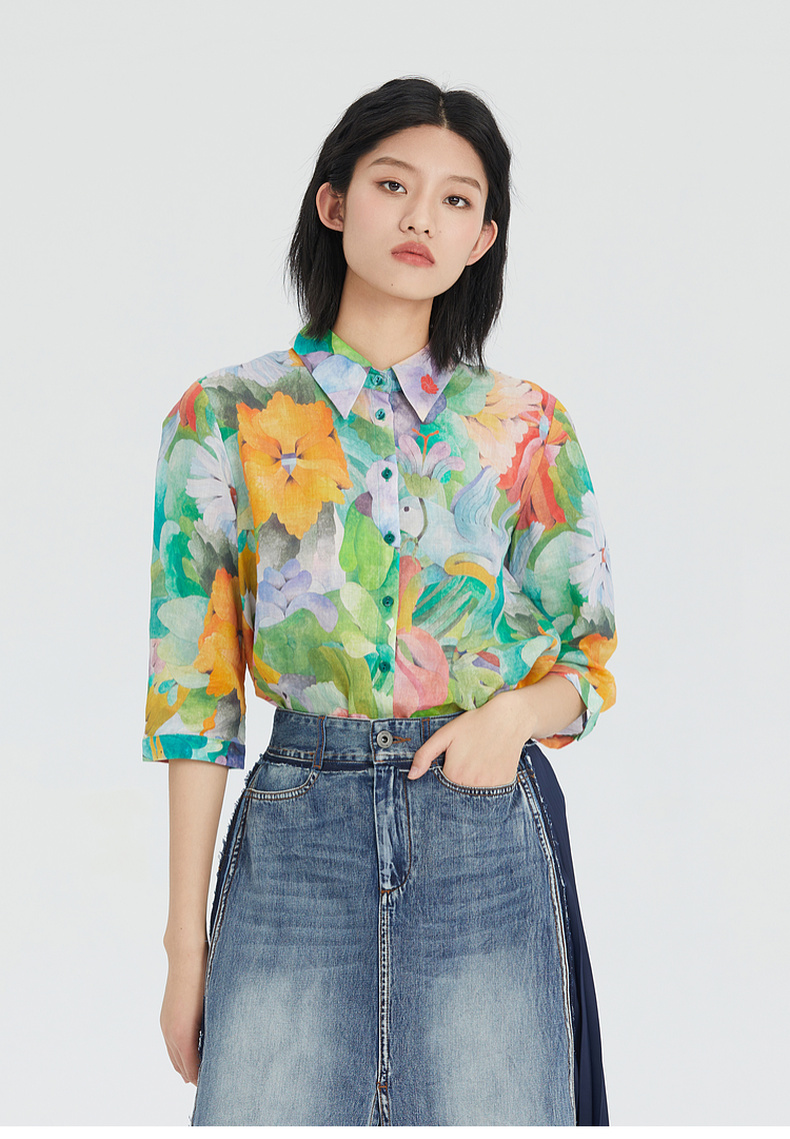 谜底花衬衫女分袖2023夏季款纯棉透气花朵印花上衣衬衣236MC7091
