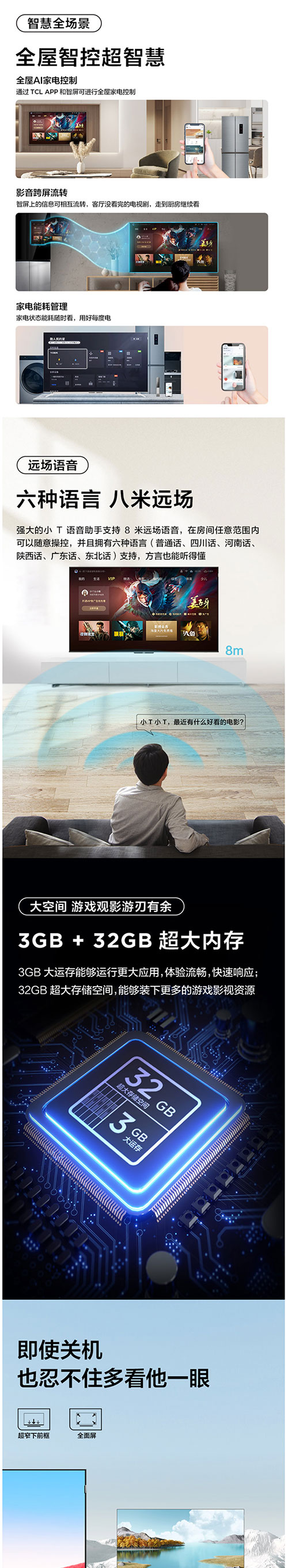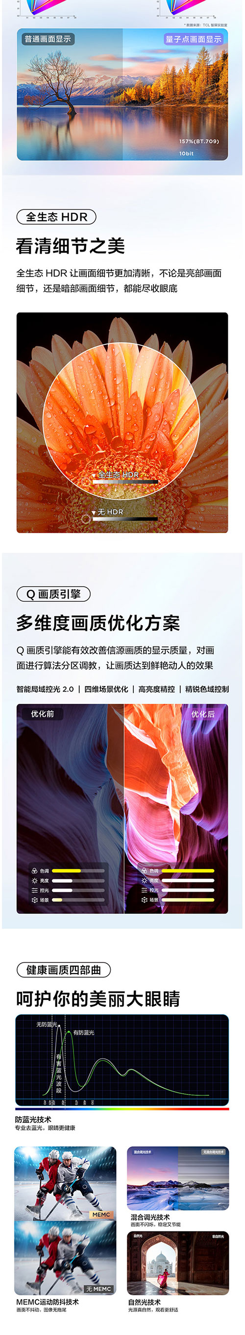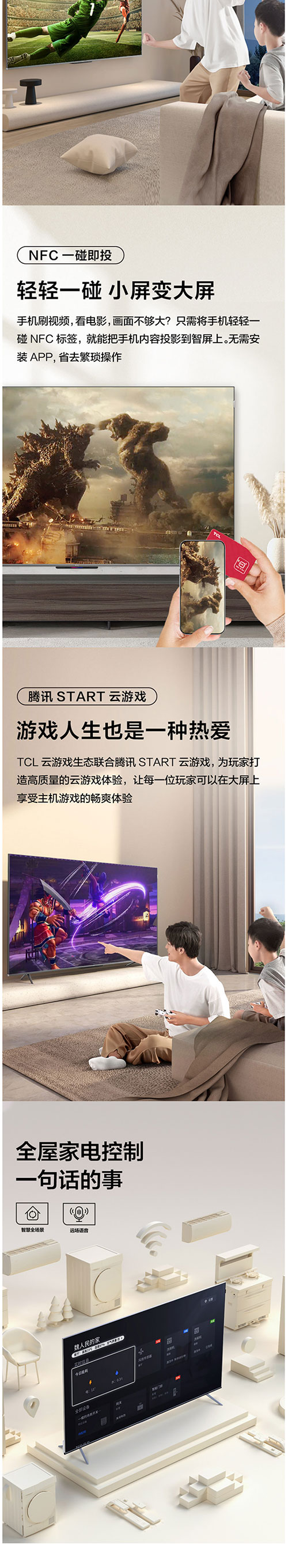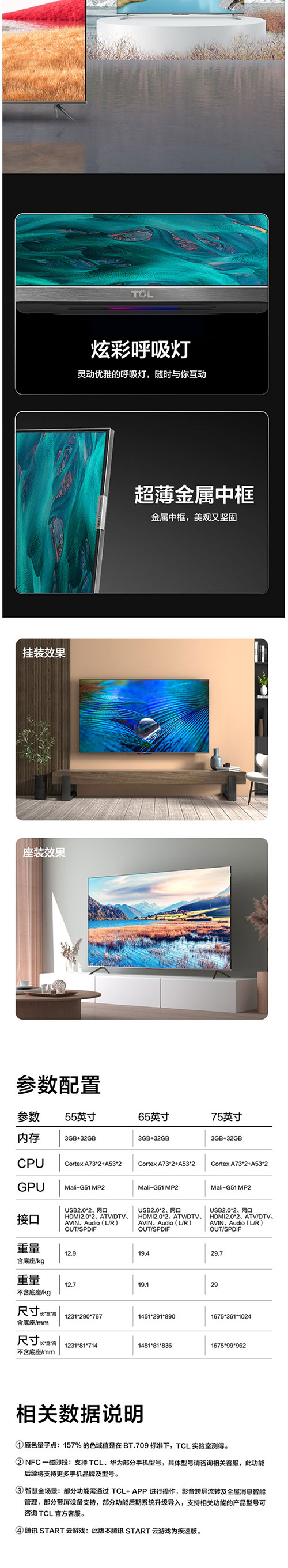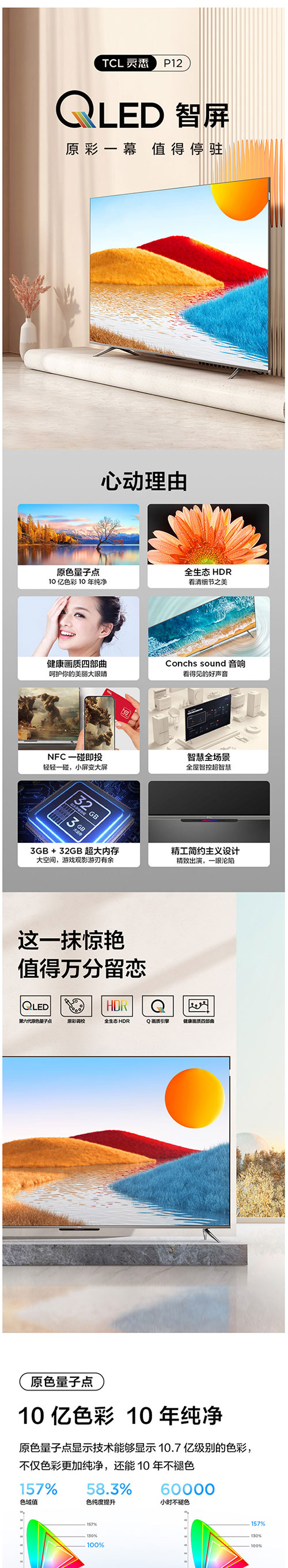 TCL电视 65P12 65英寸 QLED原色量子点电视 全生态HDR10 双频WiFi 3+32GB 智能平板电视机