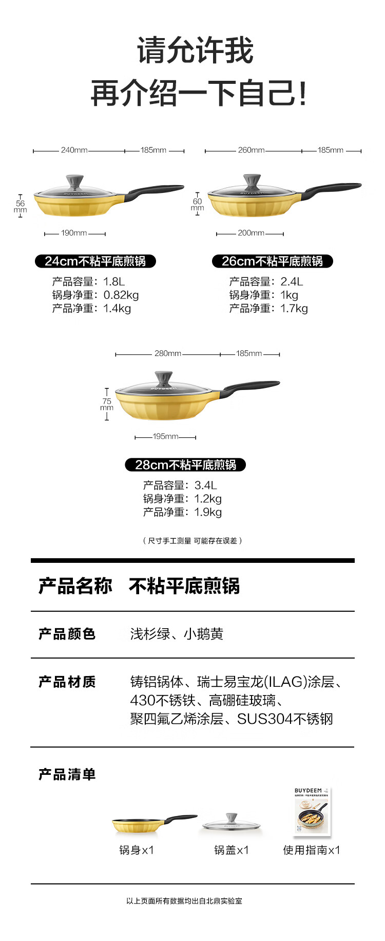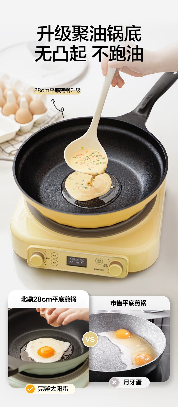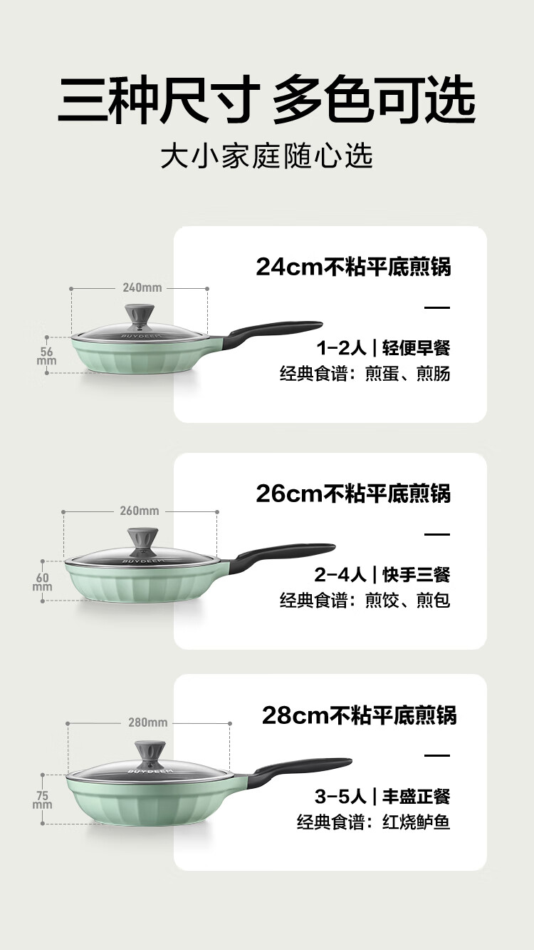 【专柜-北鼎】北鼎 CP151 26cm不粘平底煎锅牛排烤肉煎饼煎鸡蛋浅杉绿