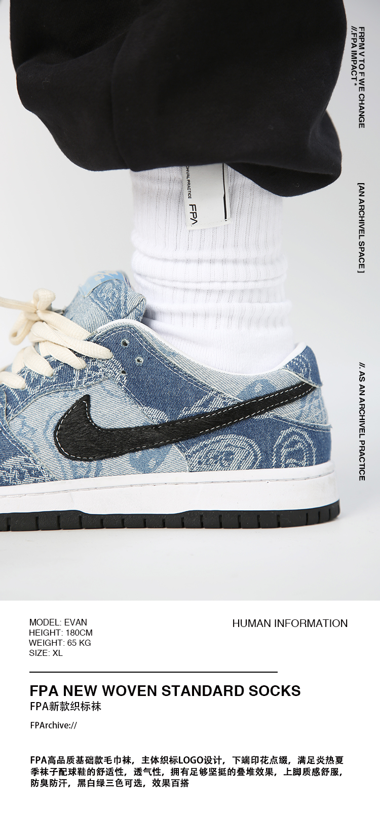 FPA(VENGETICE) 20AW春季长筒国潮织标毛巾袜 运动袜男女纯棉长袜