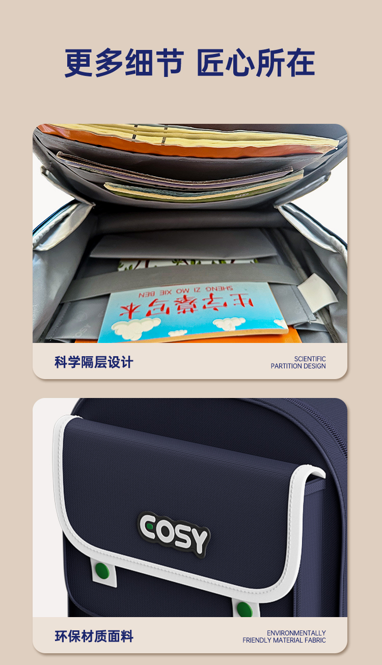 EOSY学生减负护脊书包升级款三件套(书包+补习袋+笔袋)【MQ】