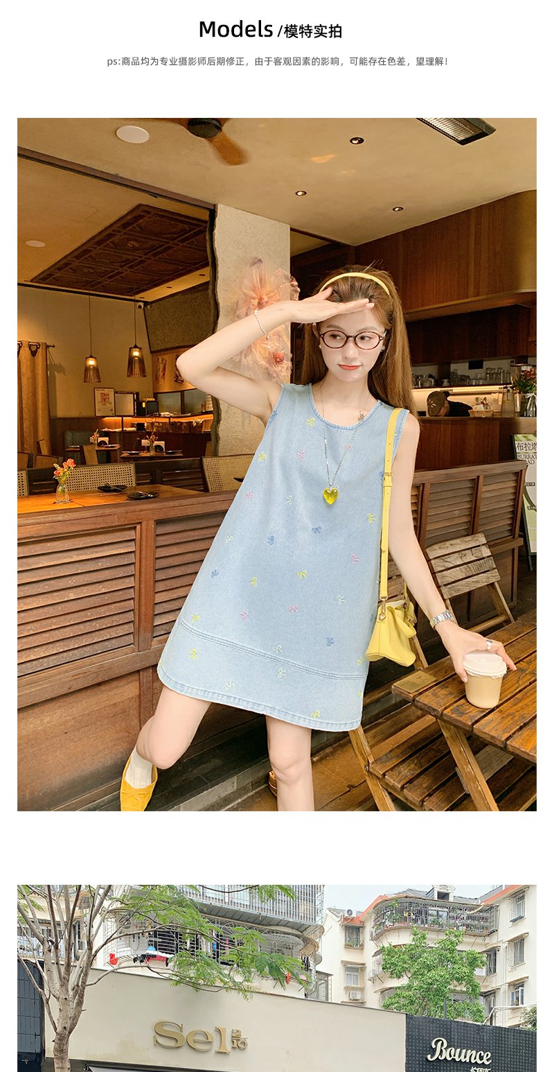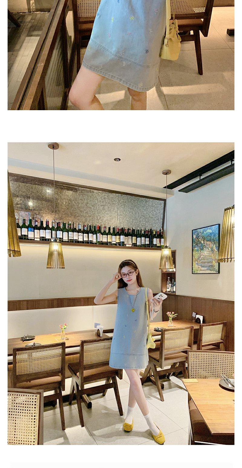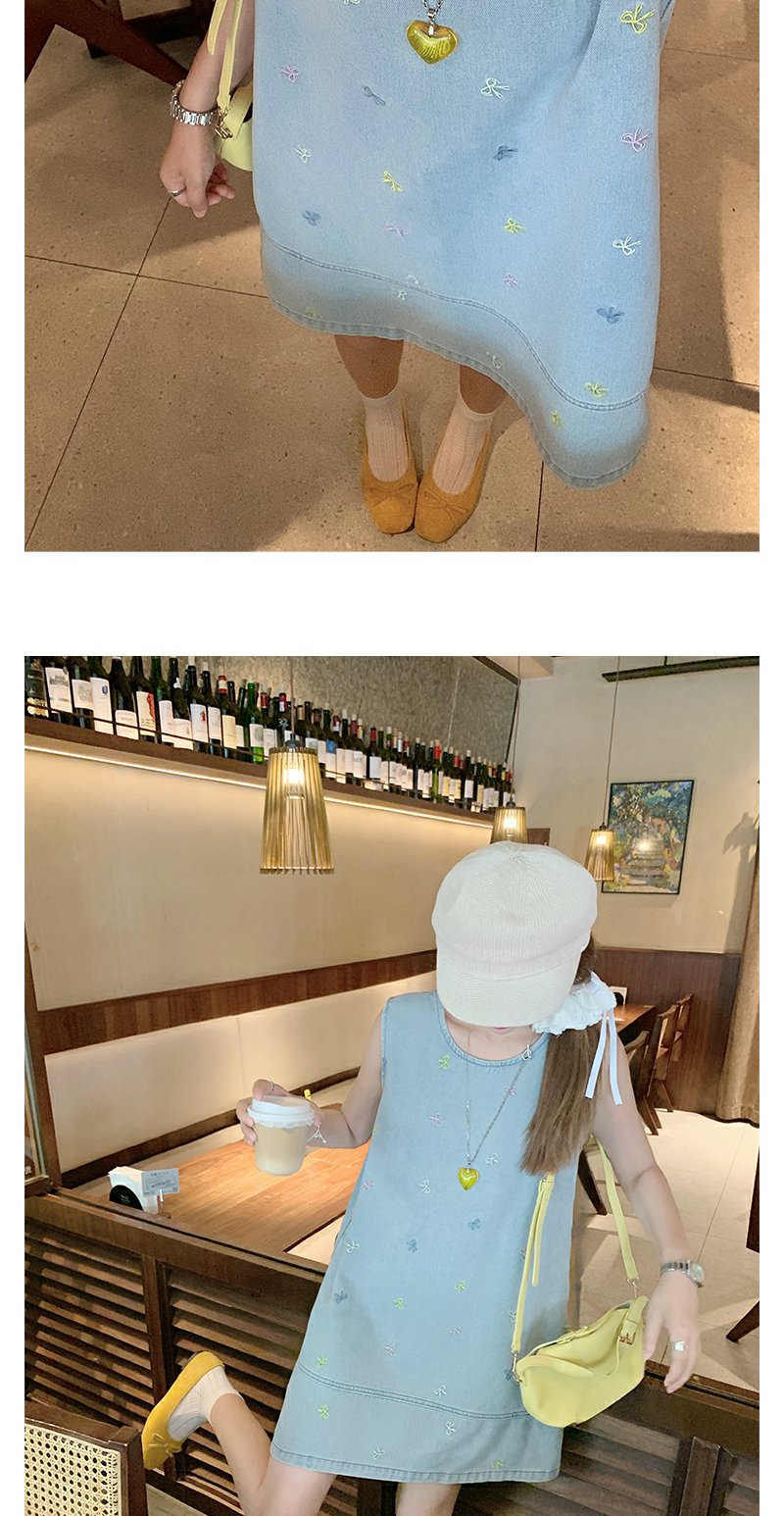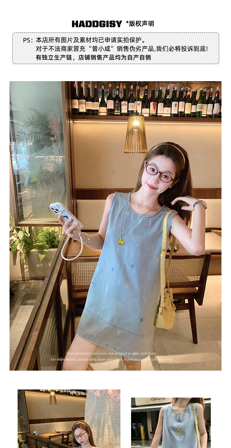 <曾小咸推荐>蝴蝶结小刺绣减龄牛仔连衣裙