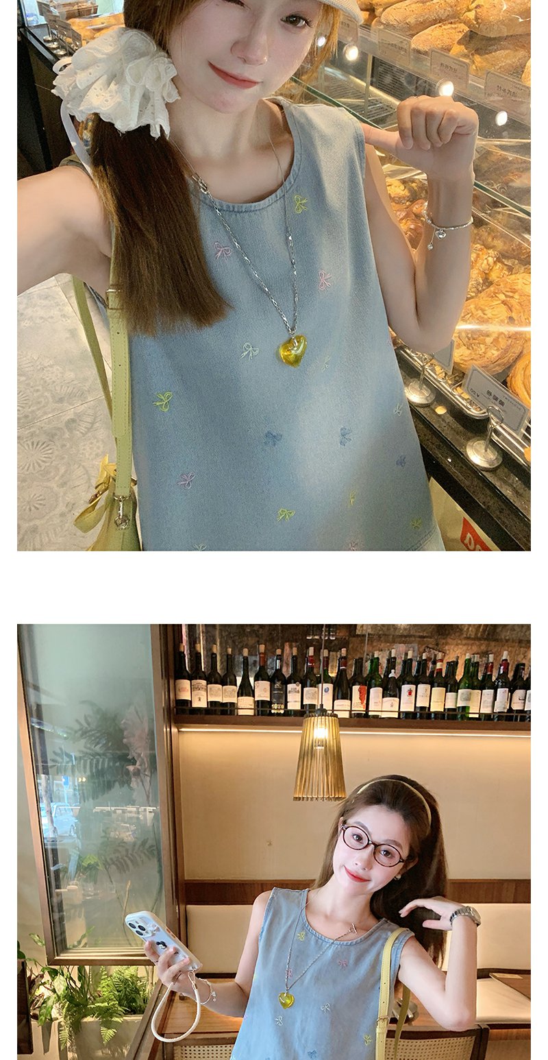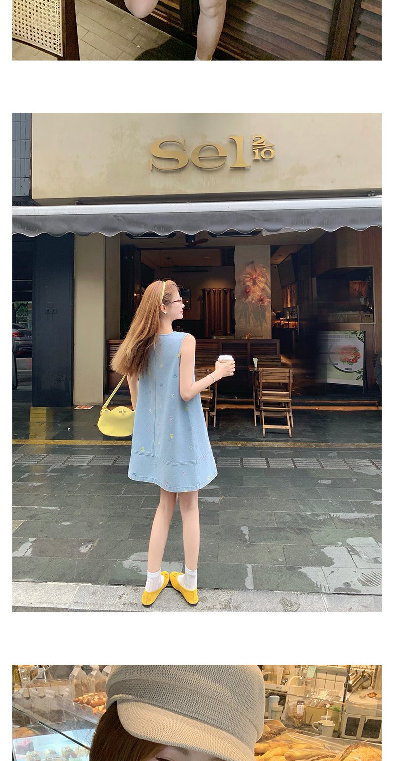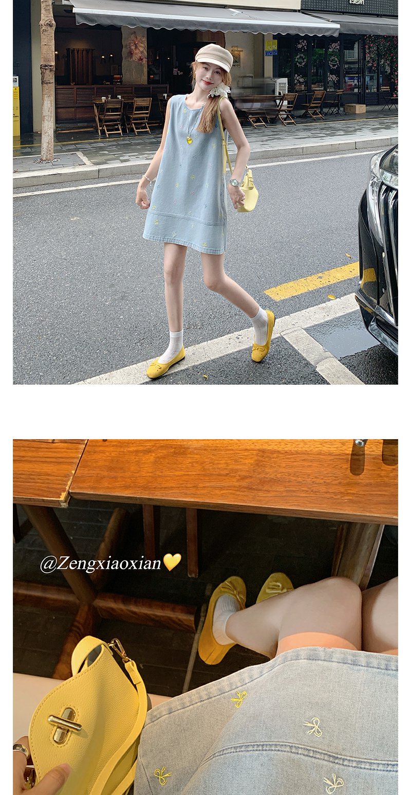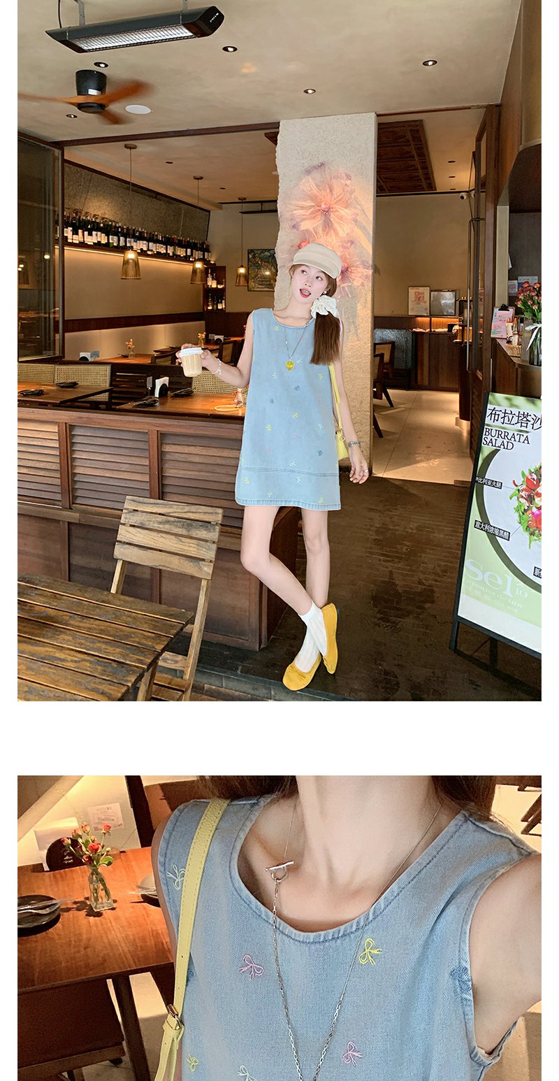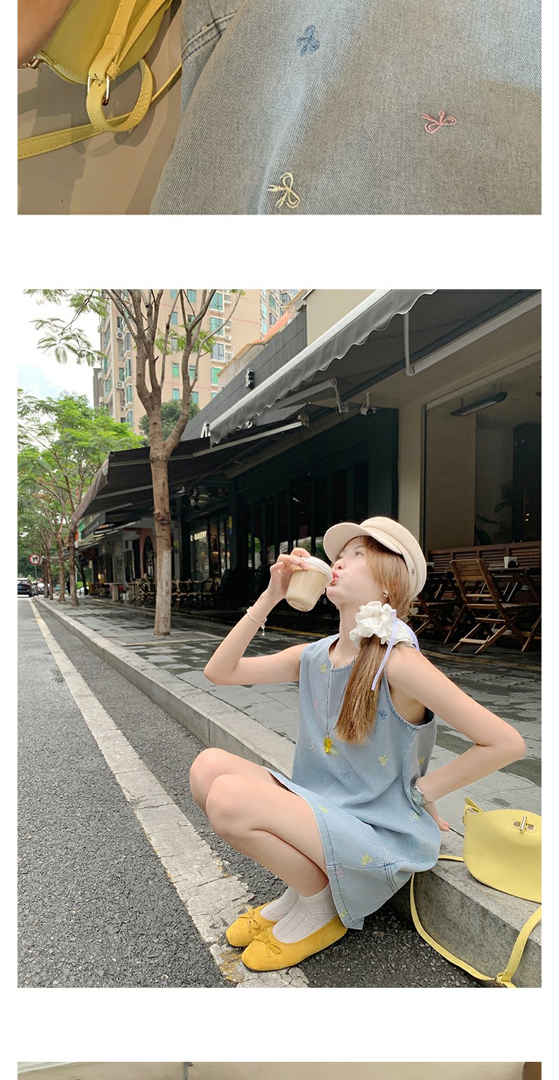 <曾小咸推荐>蝴蝶结小刺绣减龄牛仔连衣裙