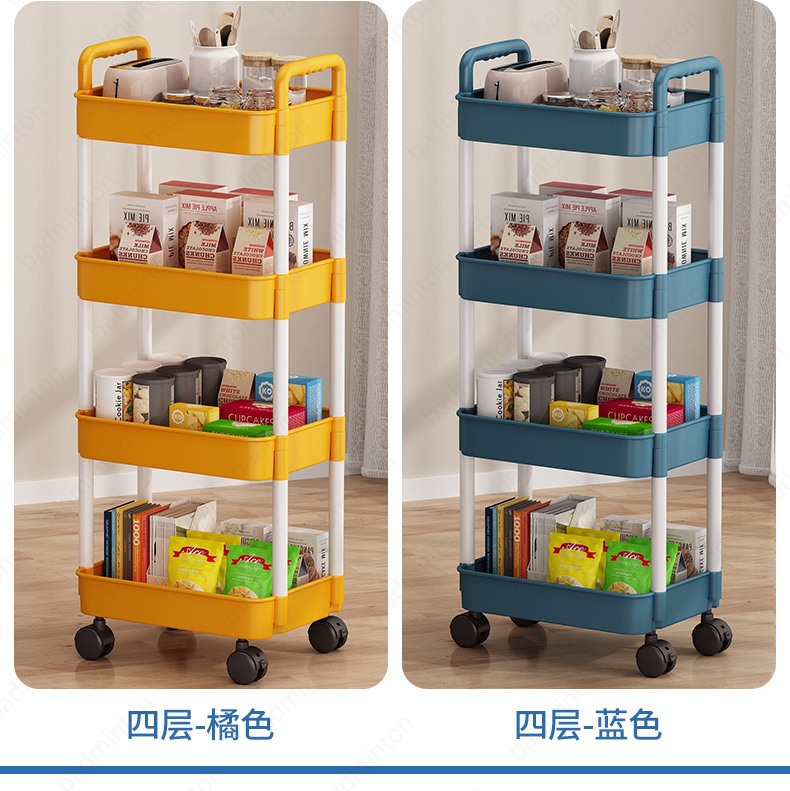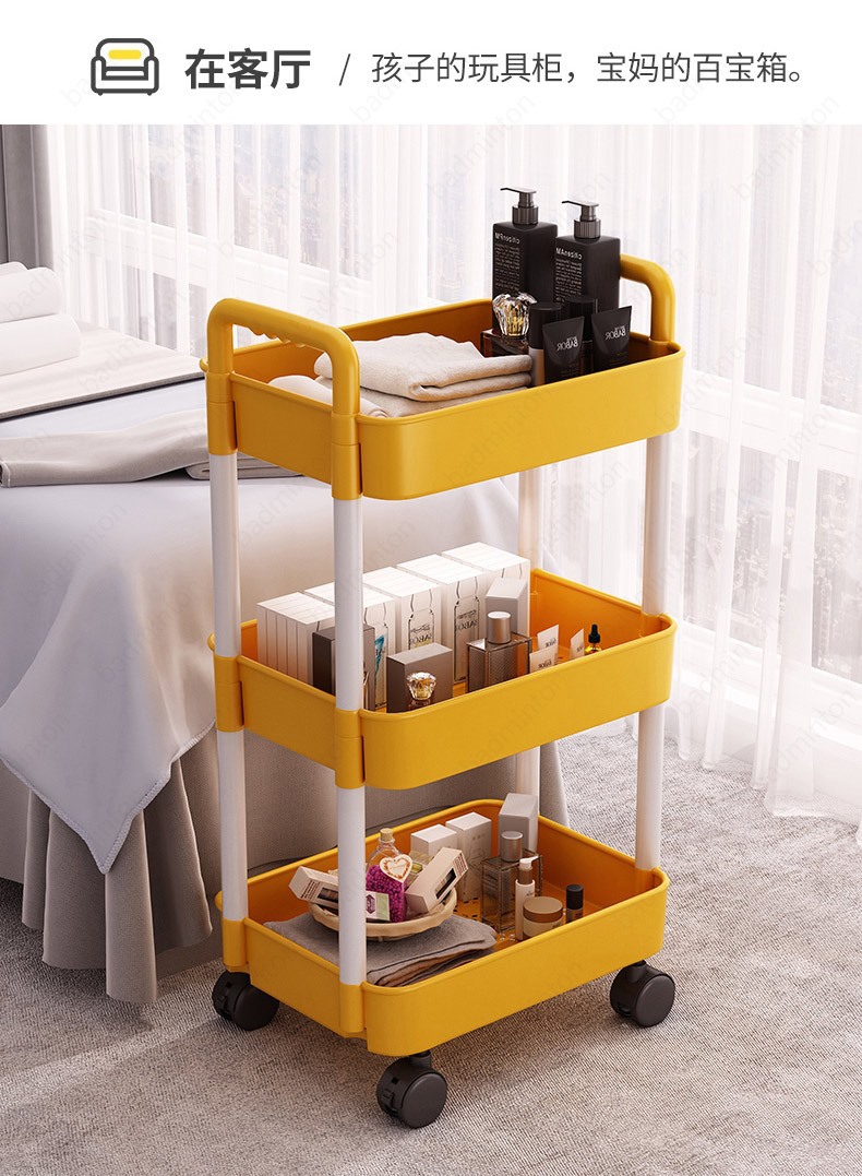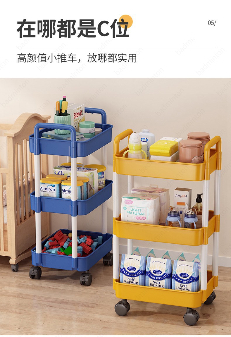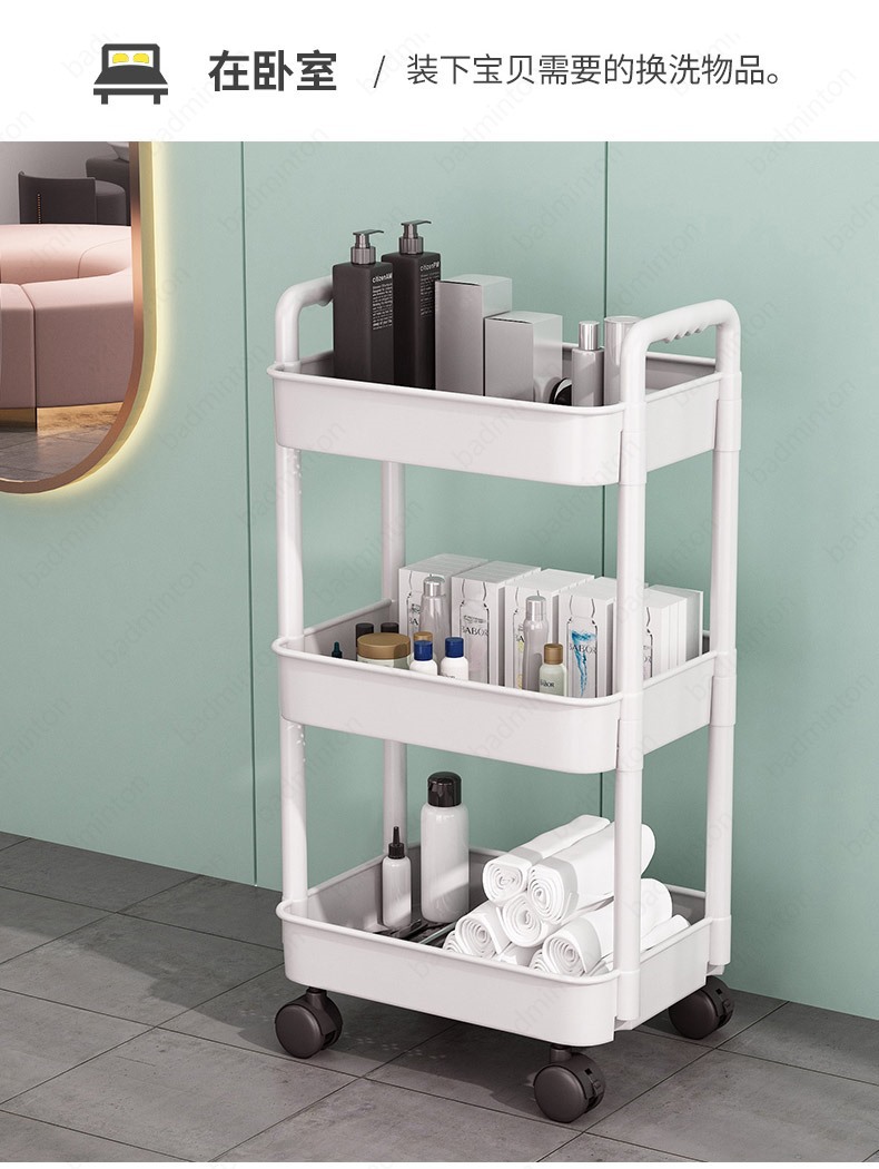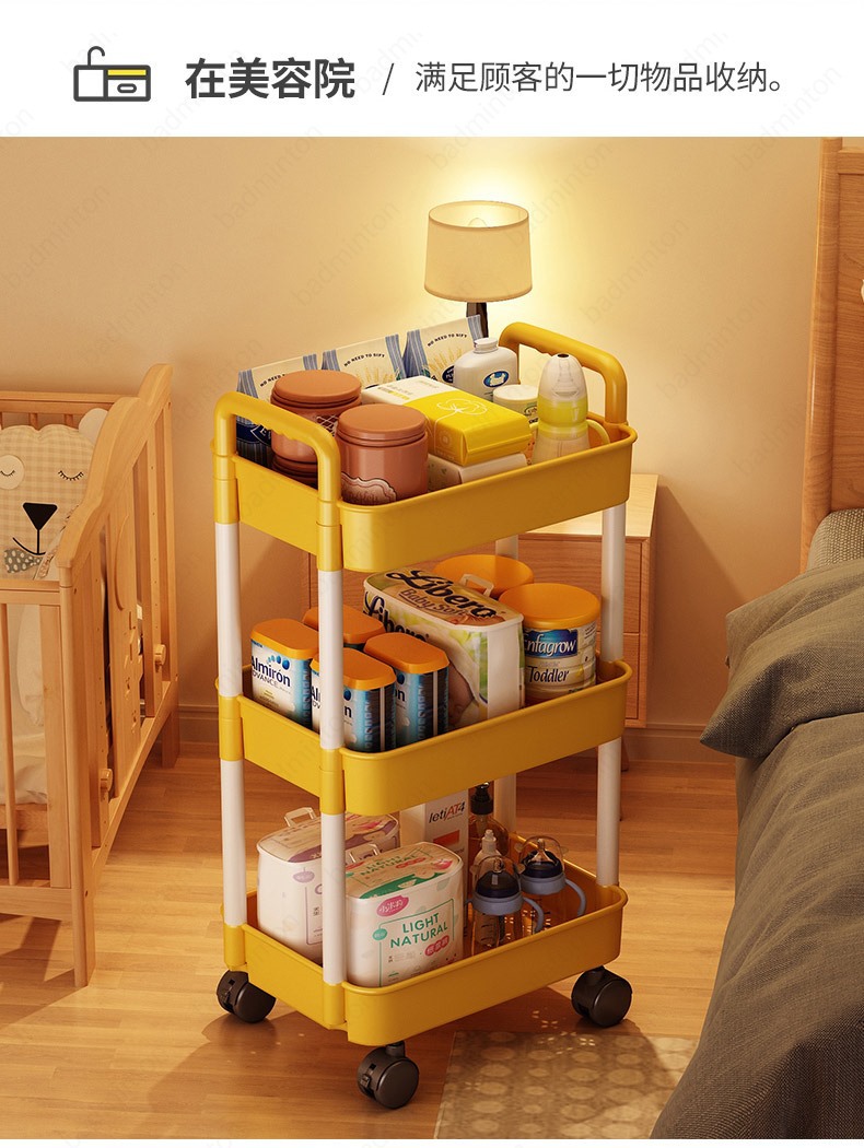 「360°移动旋转!高颜值」小推车置物架落地式居家日用多层婴儿用品卧室床头零食移动厨房收纳整理架
