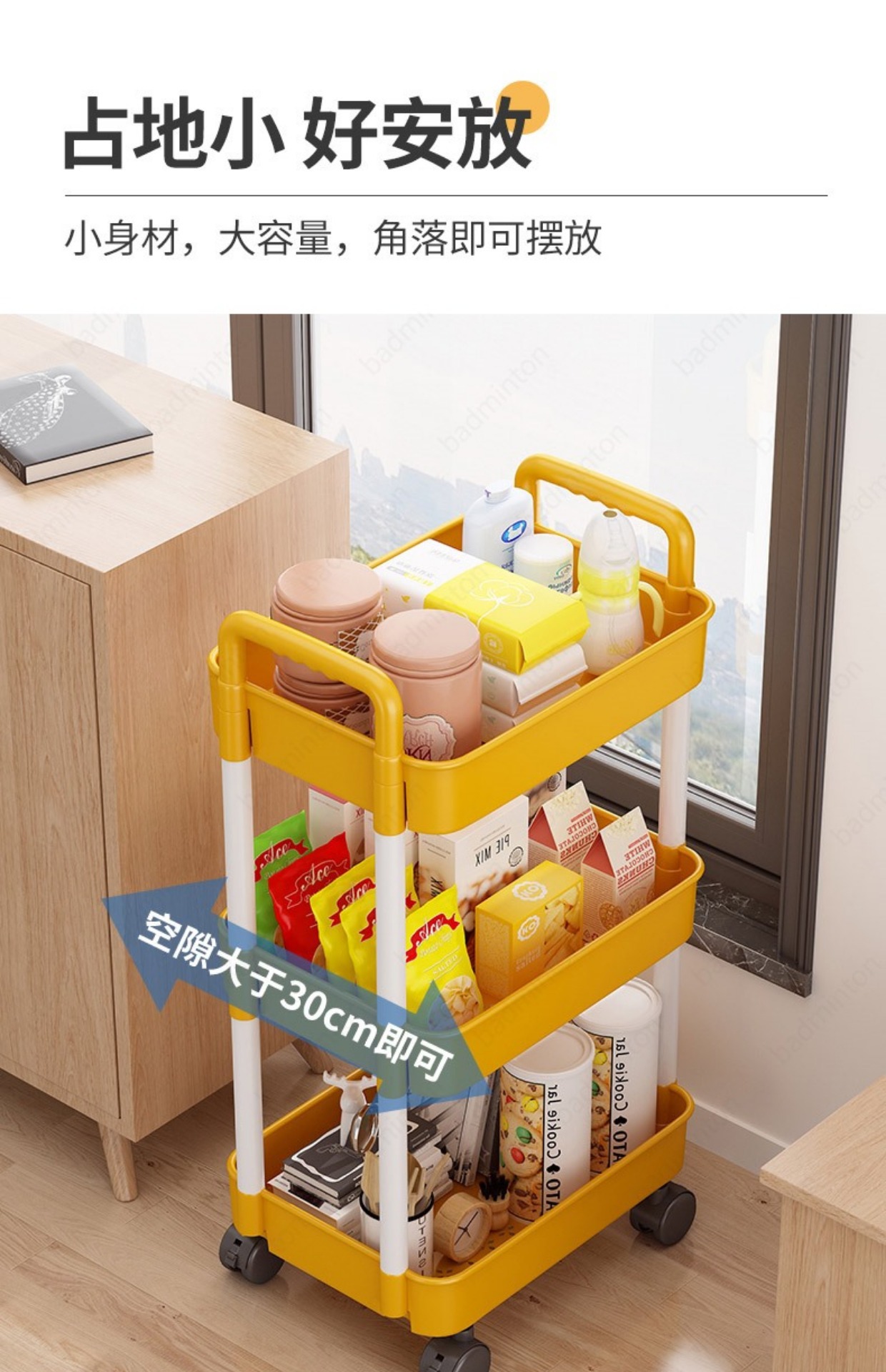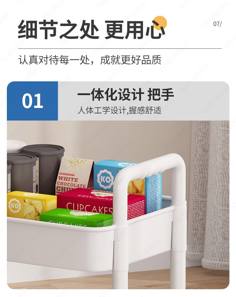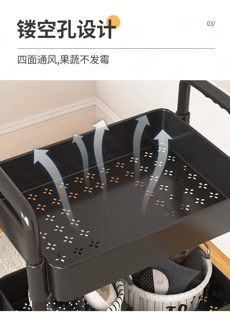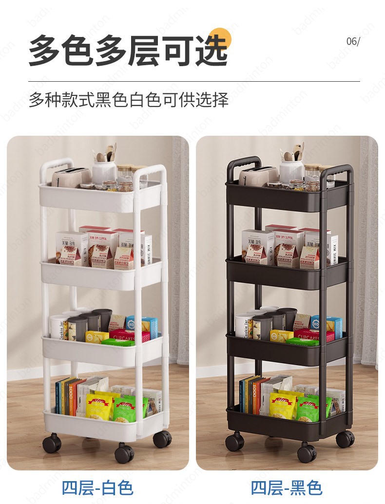 「360°移动旋转!高颜值」小推车置物架落地式居家日用多层婴儿用品卧室床头零食移动厨房收纳整理架