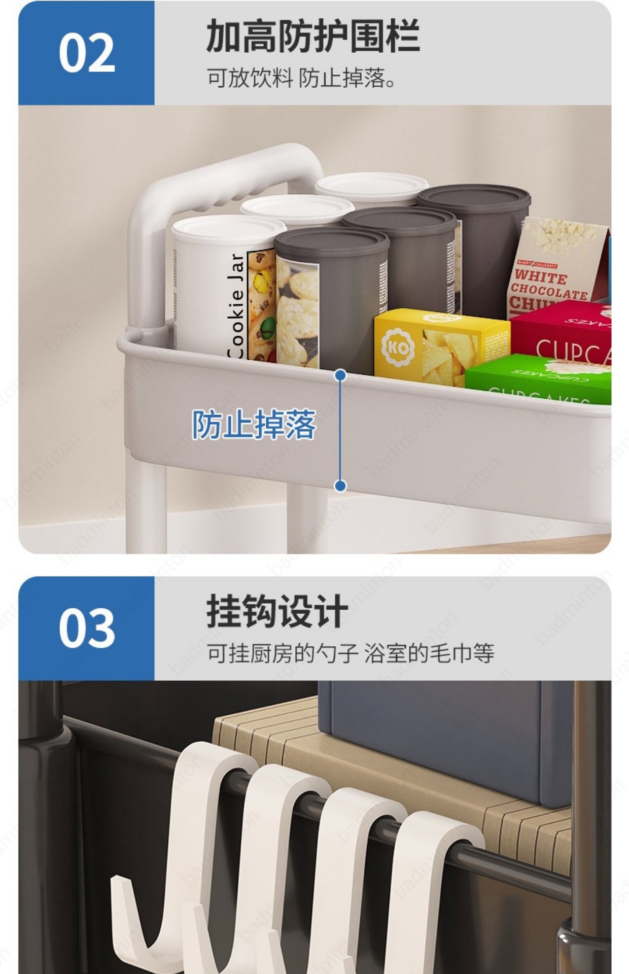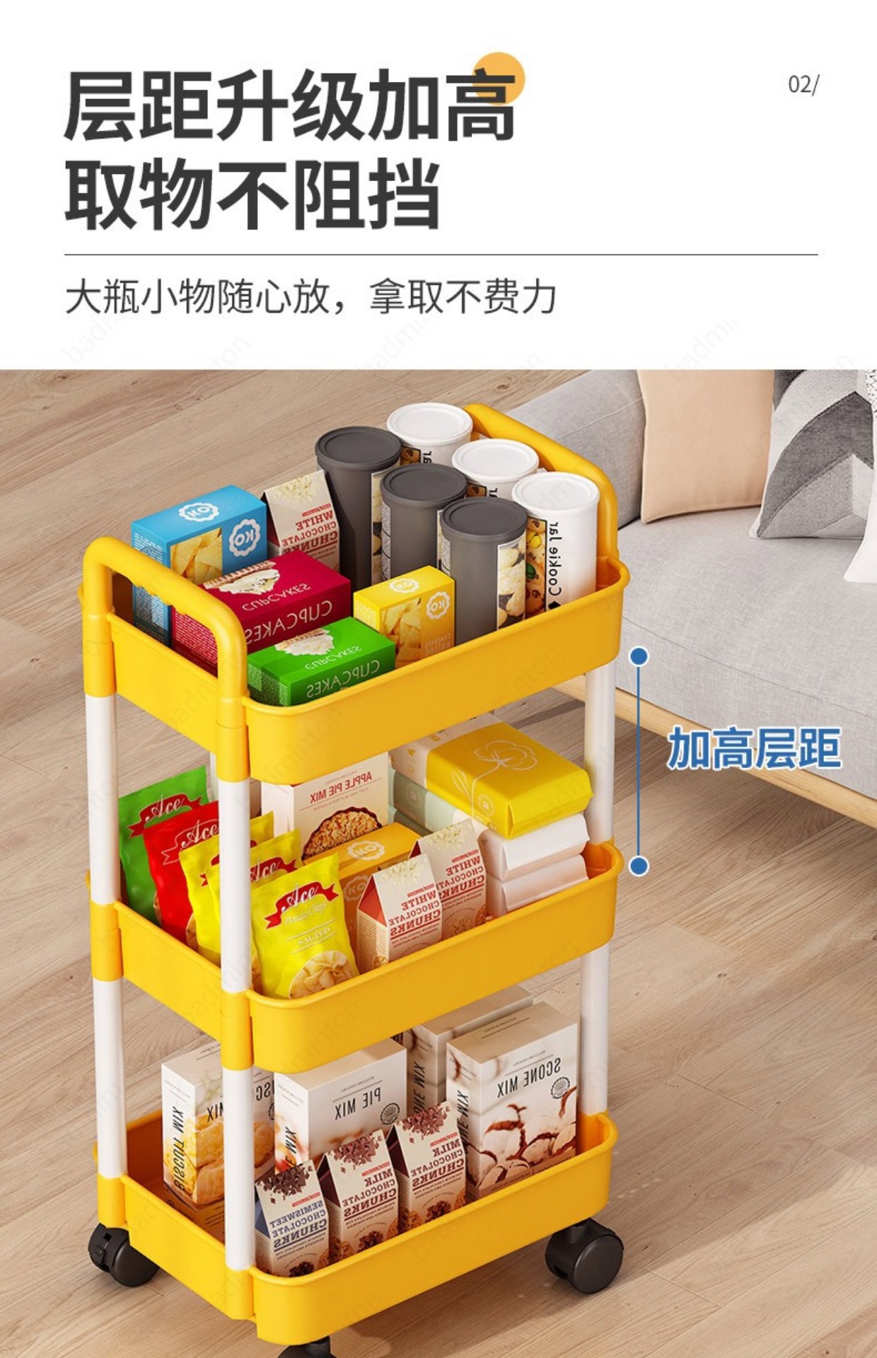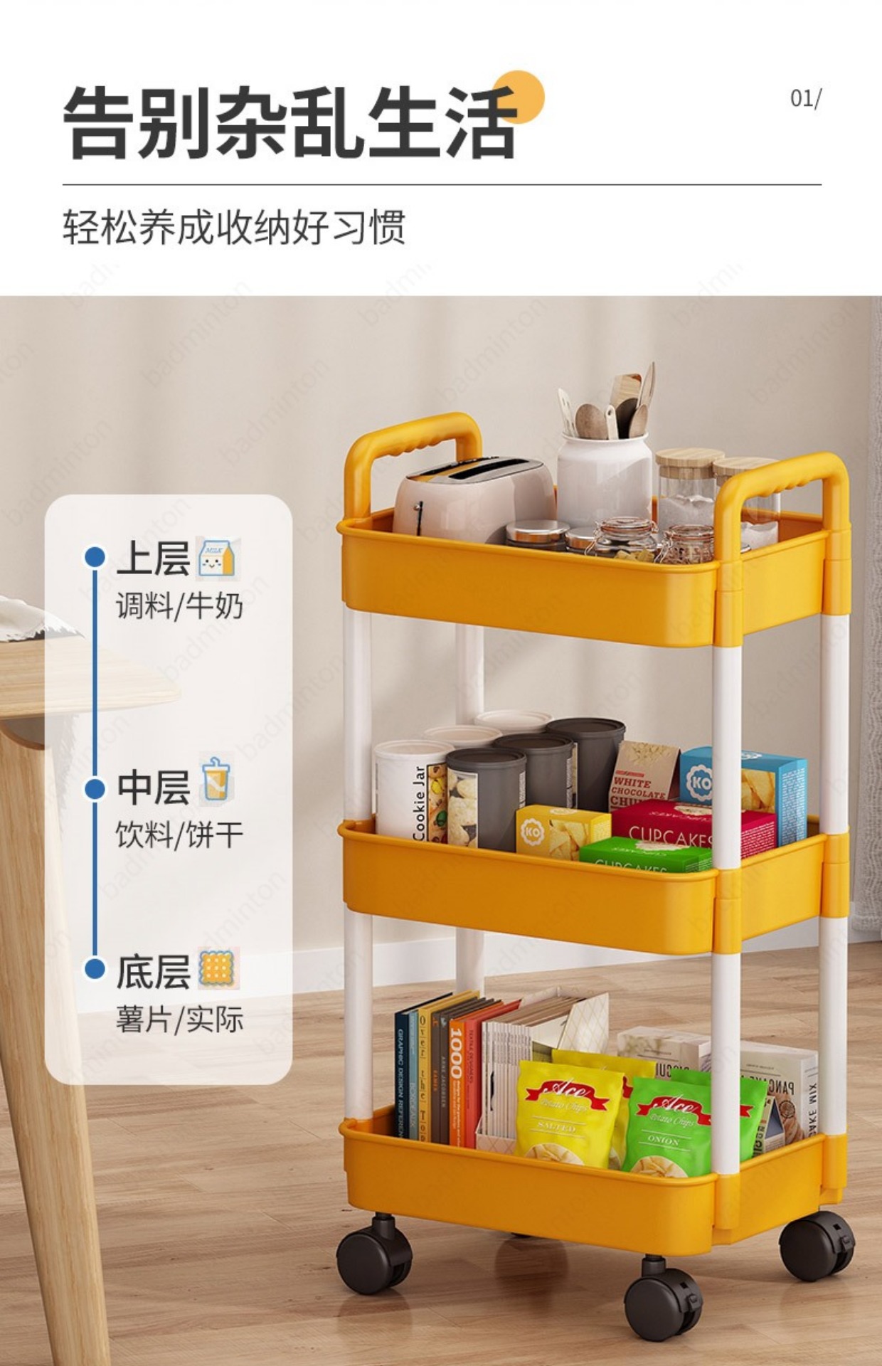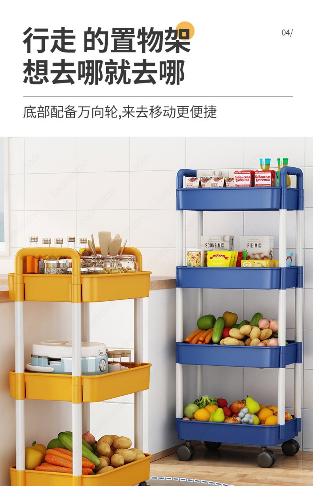 「360°移动旋转!高颜值」小推车置物架落地式居家日用多层婴儿用品卧室床头零食移动厨房收纳整理架