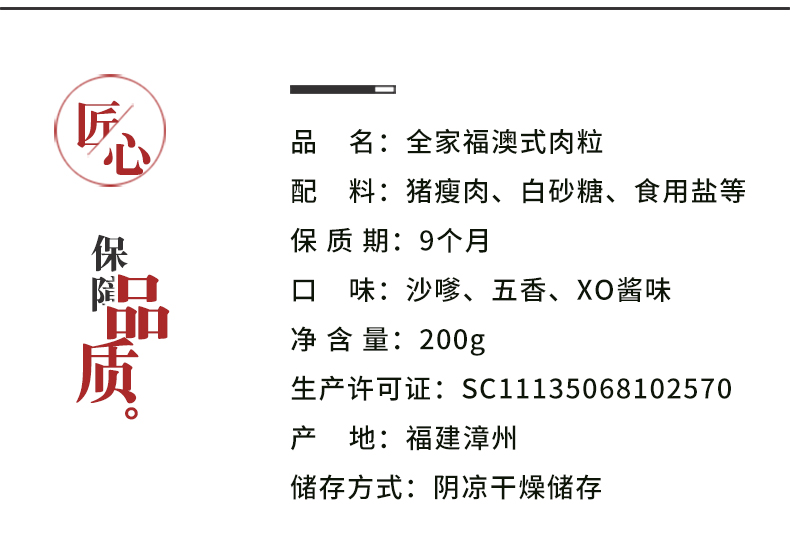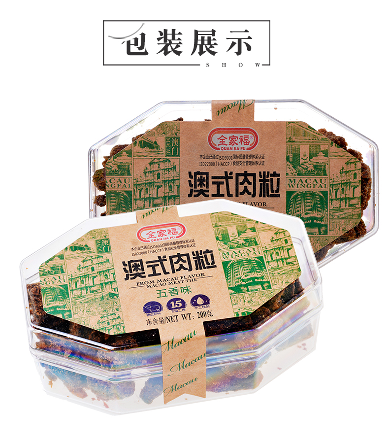 KJ 全家福 澳式肉粒五香味 沙嗲味 肉干条200g