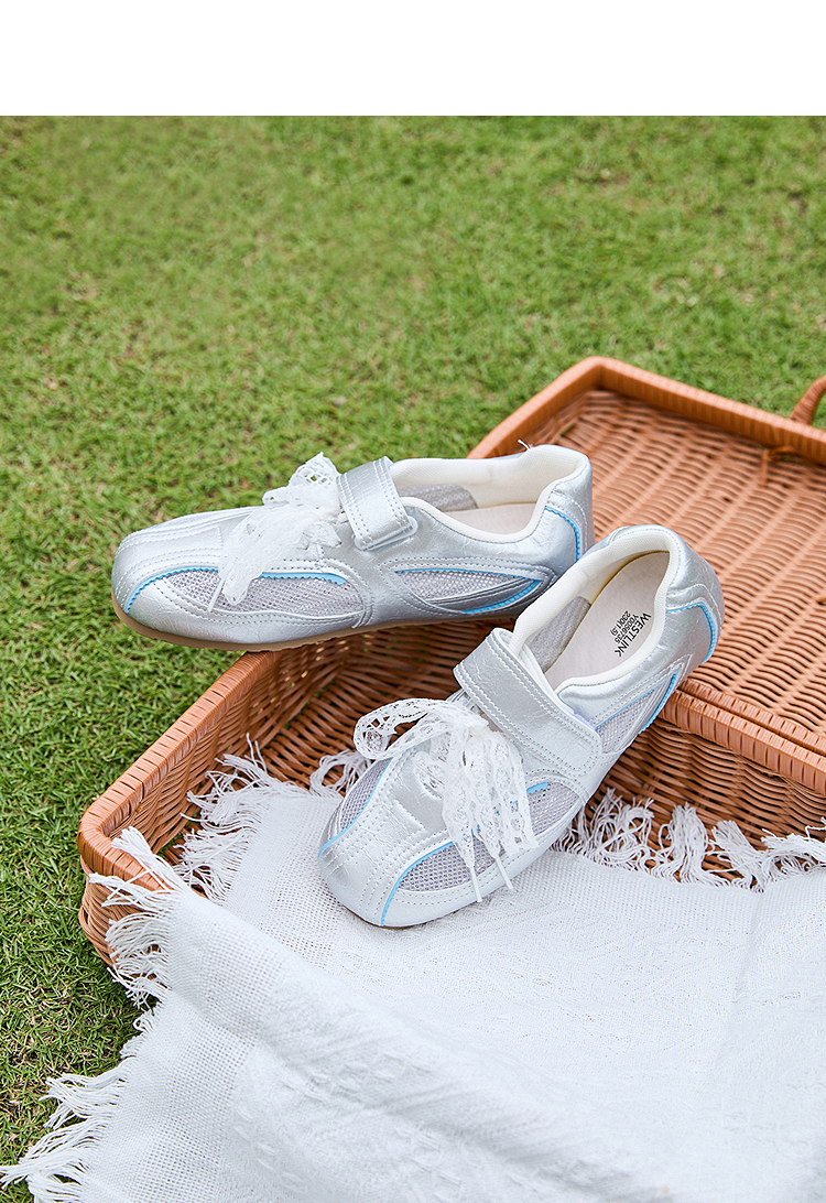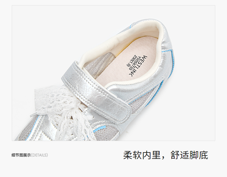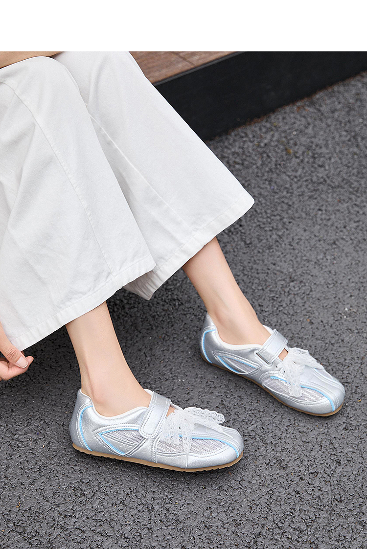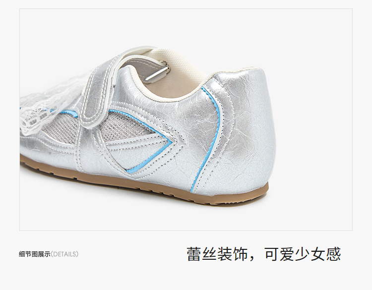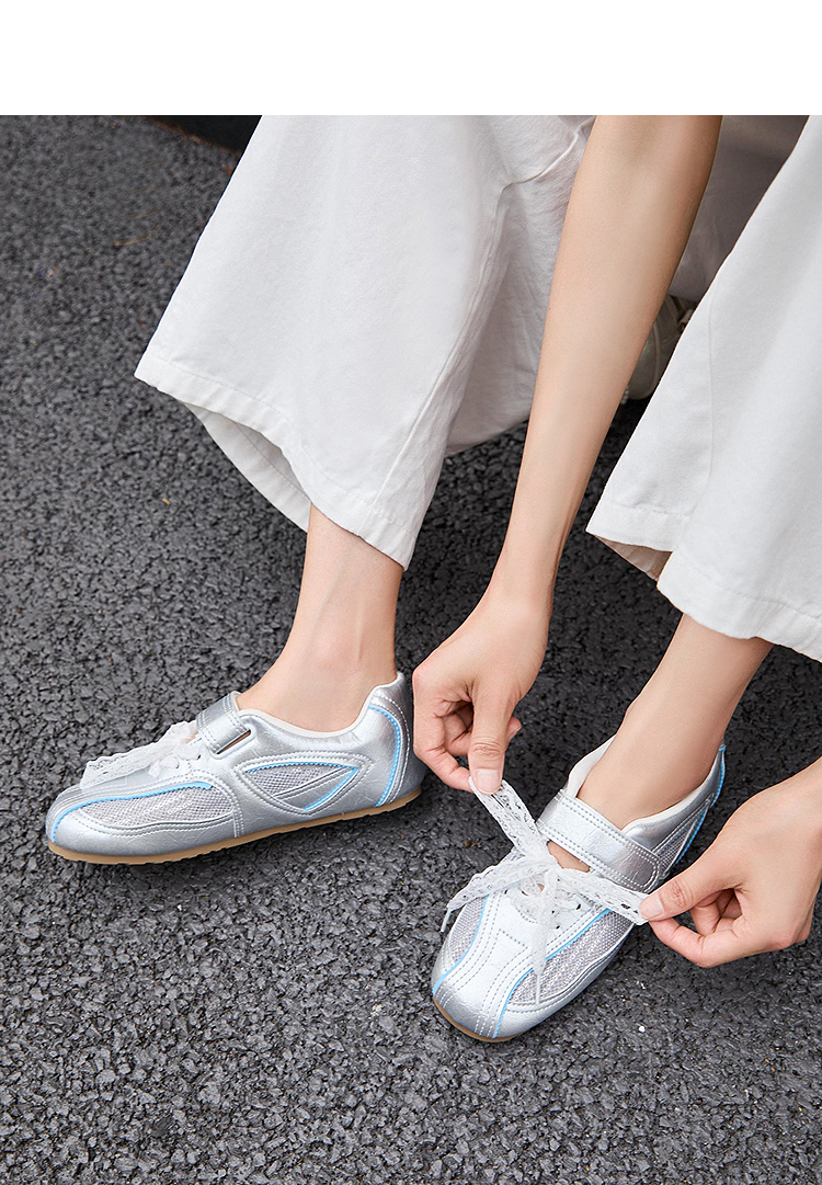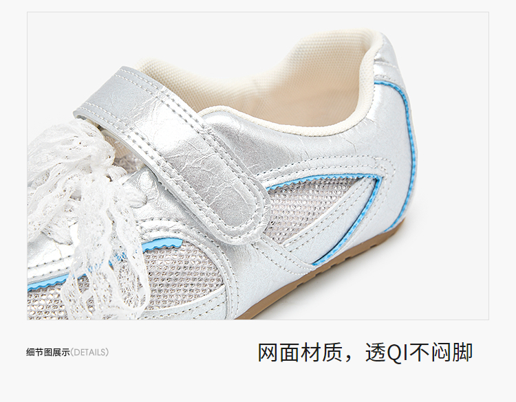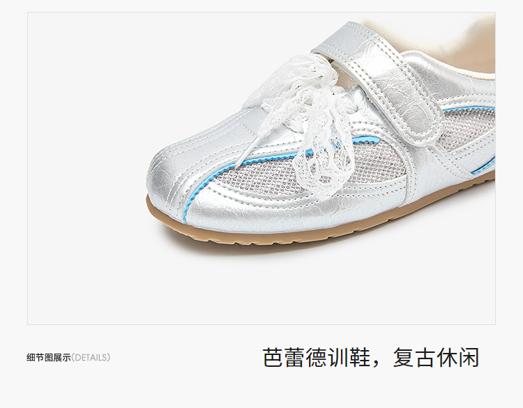 西遇芭蕾德训鞋女款新款夏季复古蕾丝网面透气女鞋银色休闲鞋Y0056735