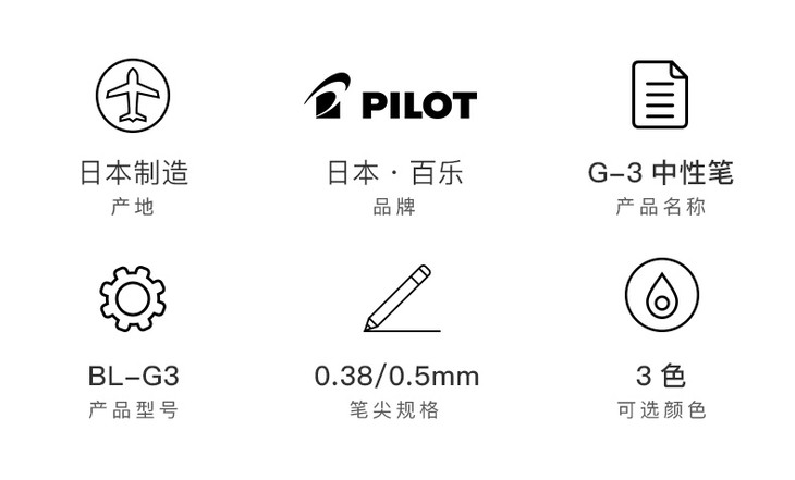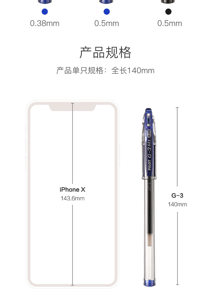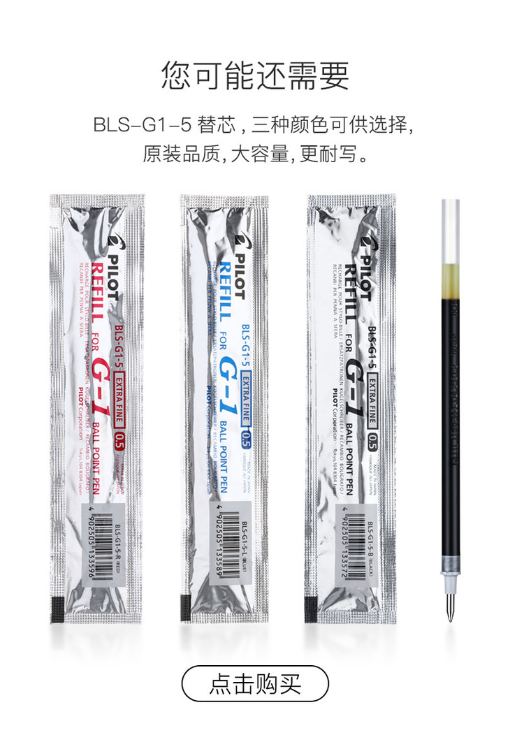 PILOT百乐BL-G3-38中性笔G-3拔帽水性笔大容量