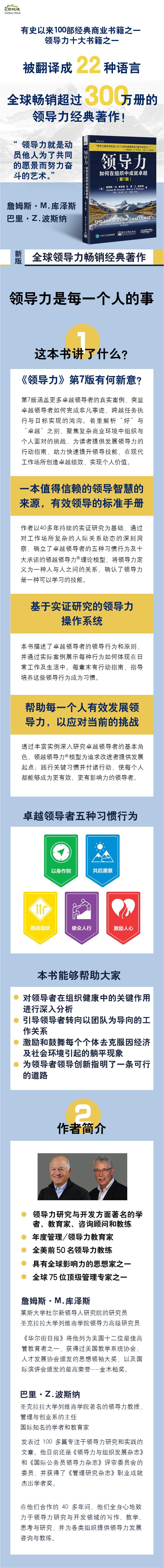 本书是领导力领域全球销量突破数百万册的经典著作。出版30多年来,经历了由畅销书向长销书的转变,已被翻译成22种语言。